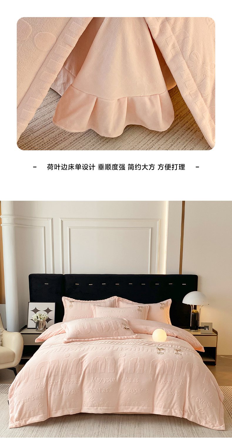 当前位置: 91家纺网 > 商品网购 > 床品套件 > 四件套 > 牛奶绒四件套 > (总)居易简 2025新款法式轻奢全消光牛奶绒雕花打裥刺绣贴布绣MIU四件套-缪斯(带包装)