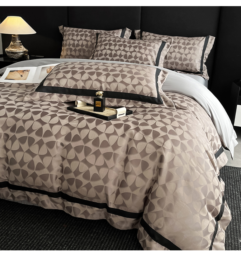 (总)博纳家纺 2025新款双色宽边高级简奢款四件套-维多利亚,高级灰,咖色,香槟,象牙白