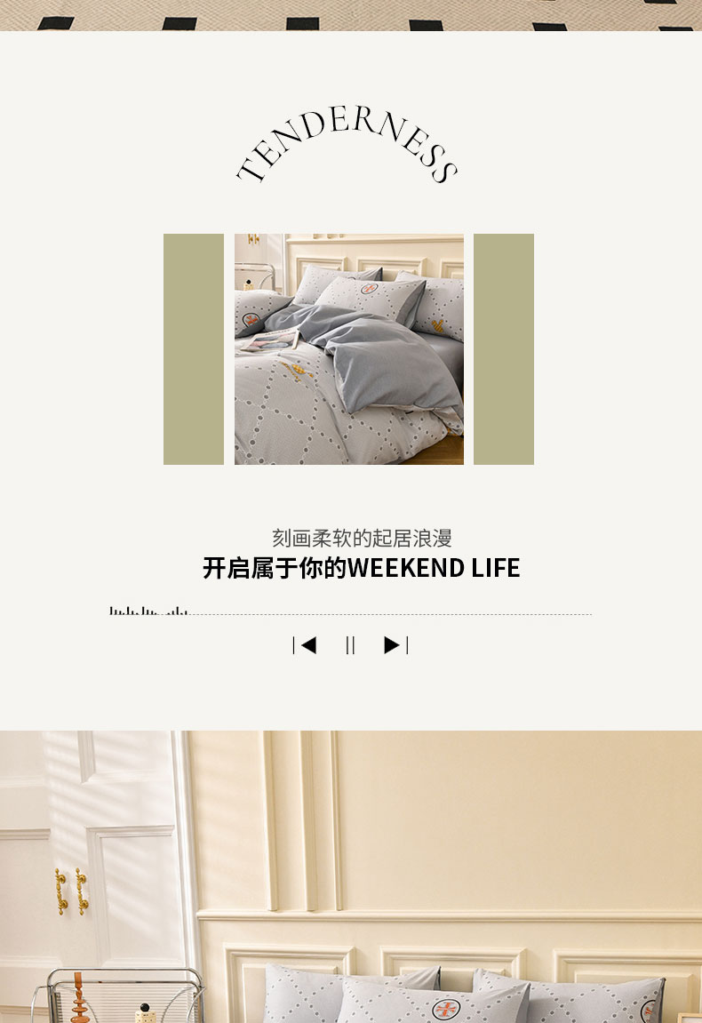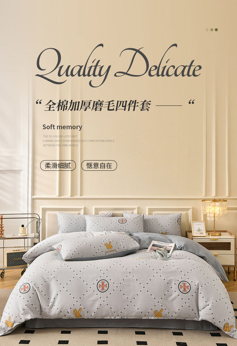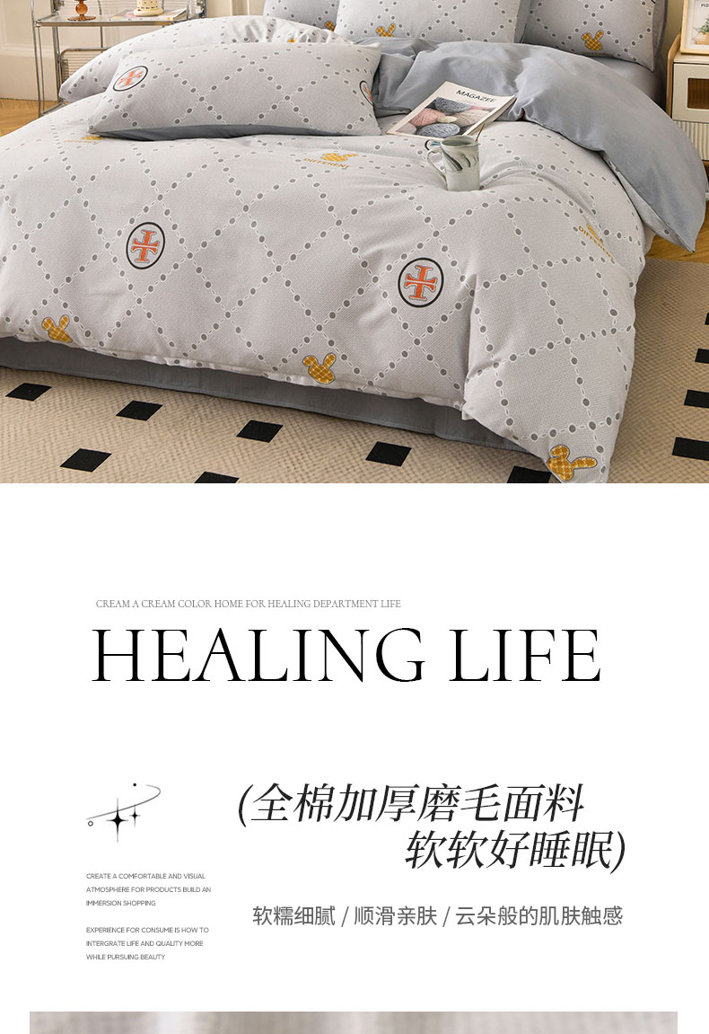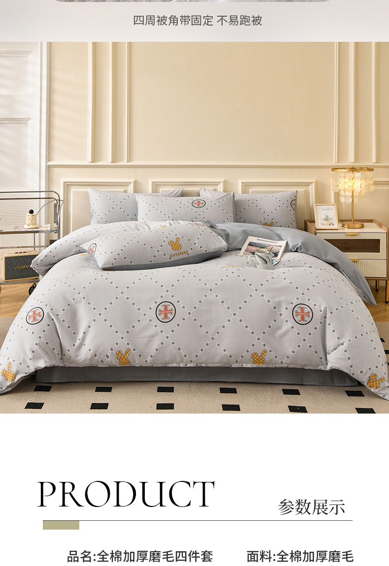 商品名称:宇彬家纺 2025直播热新款秋冬全棉精梳生态原棉印花加厚磨毛轻奢铂金单被套 维尼(灰)