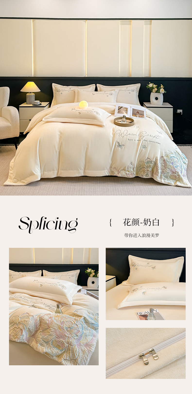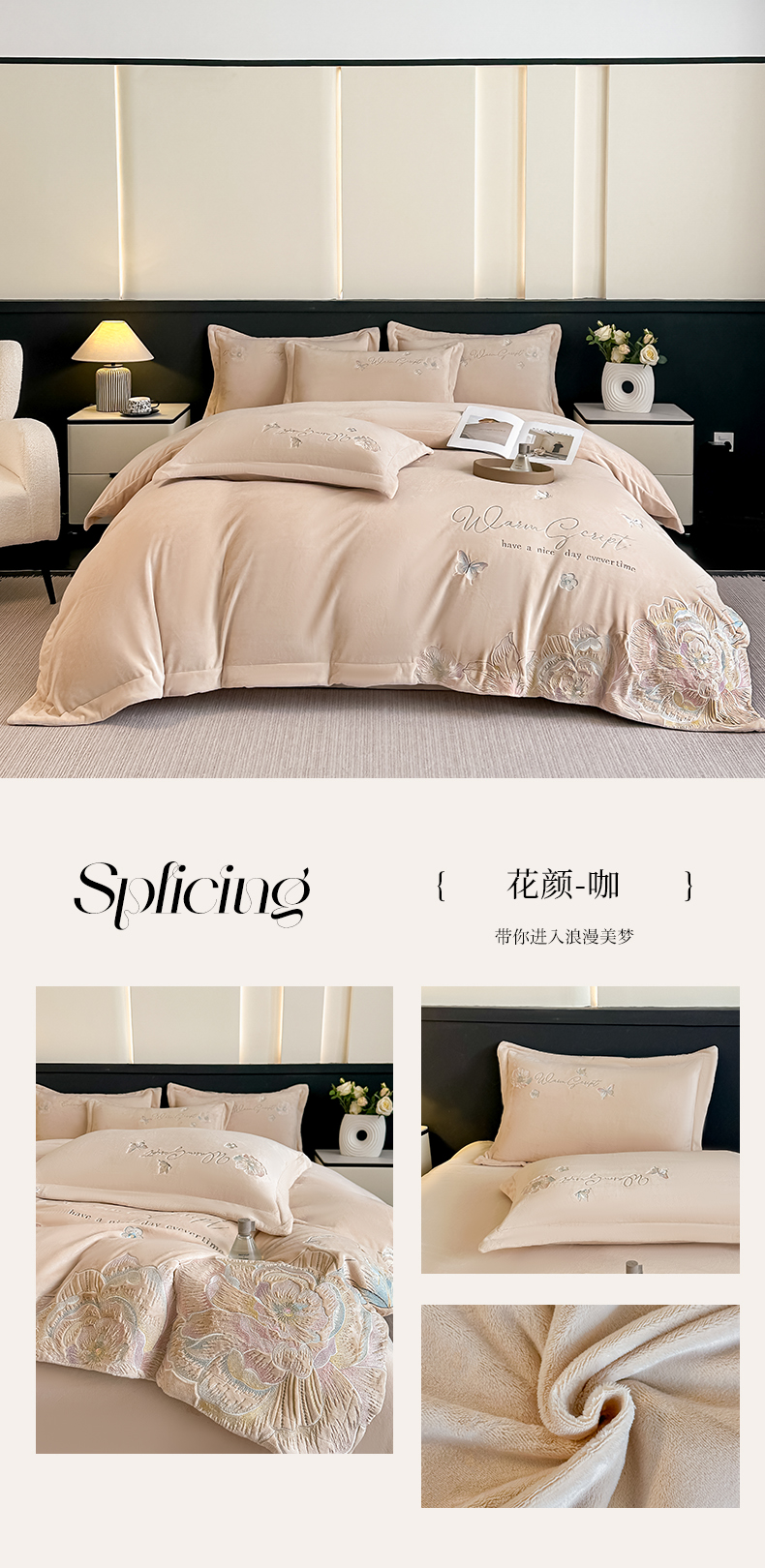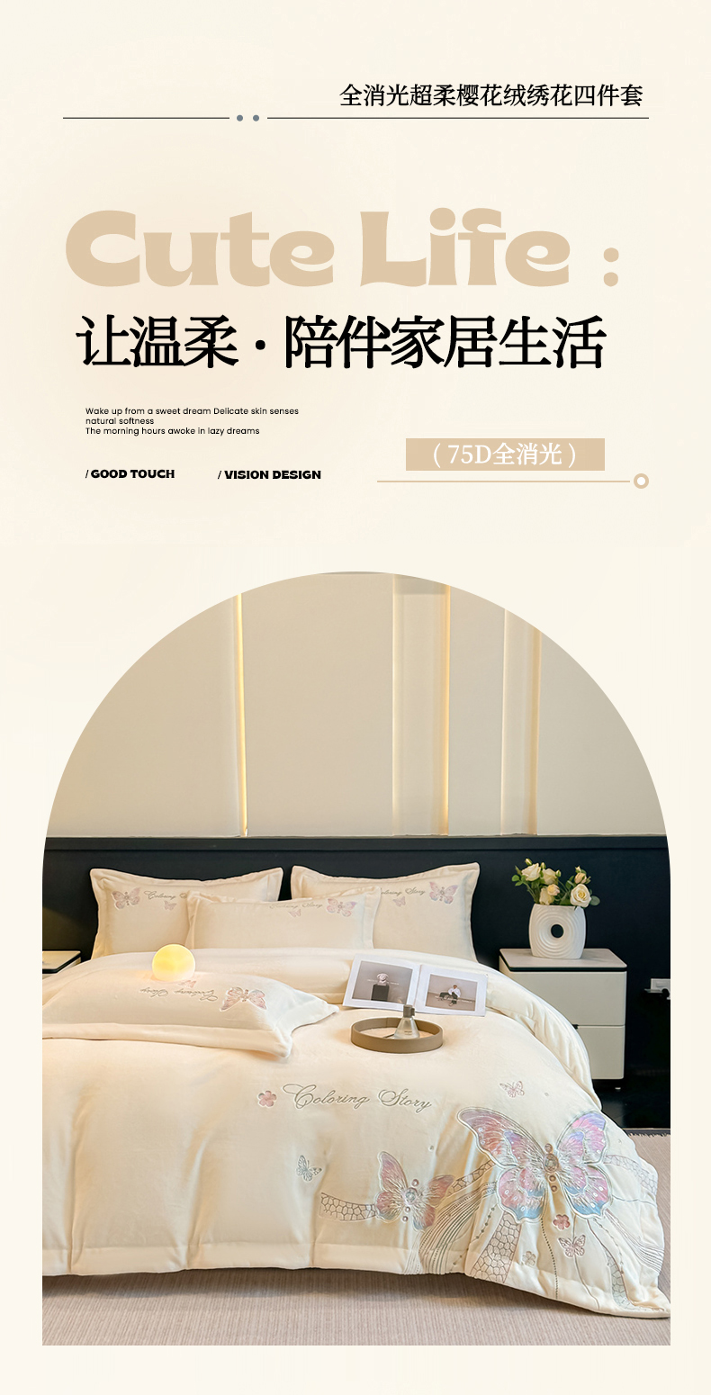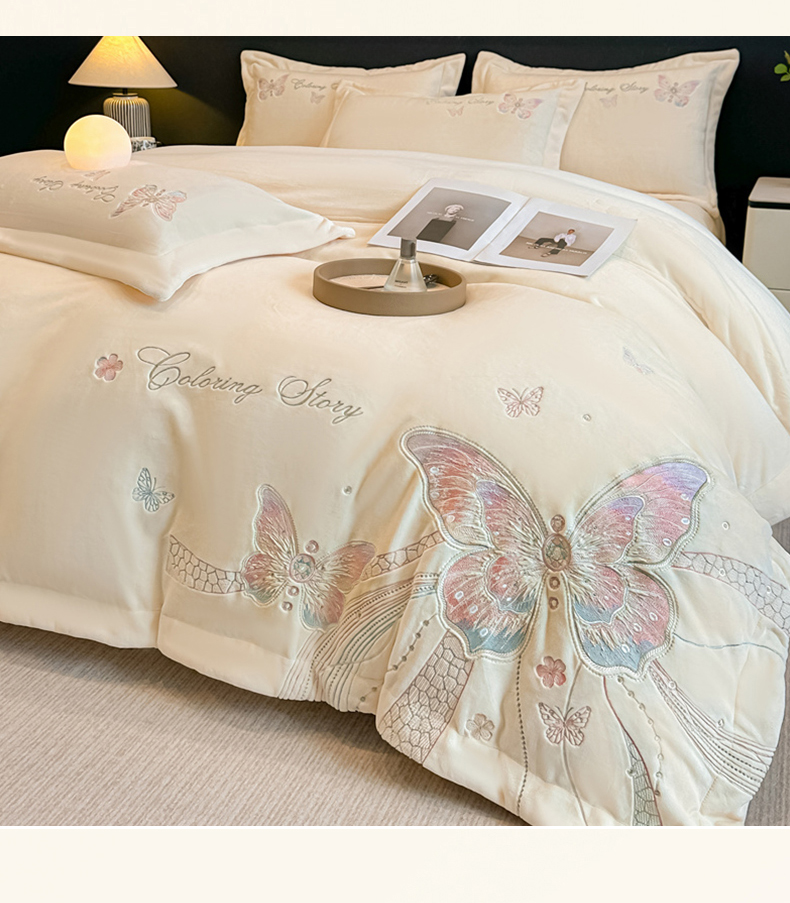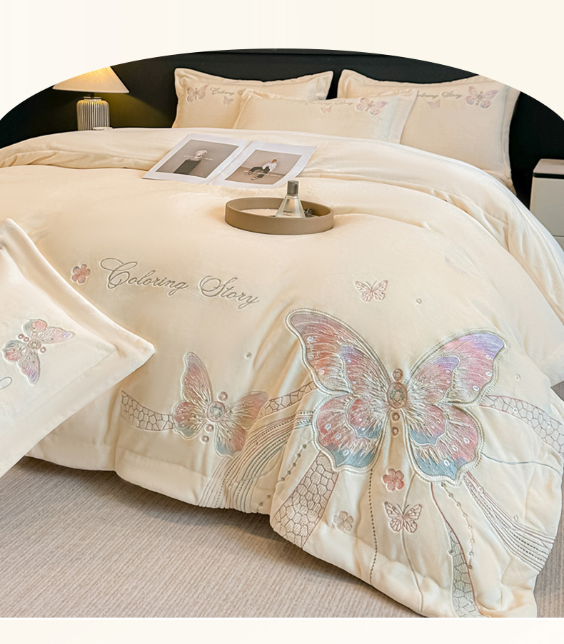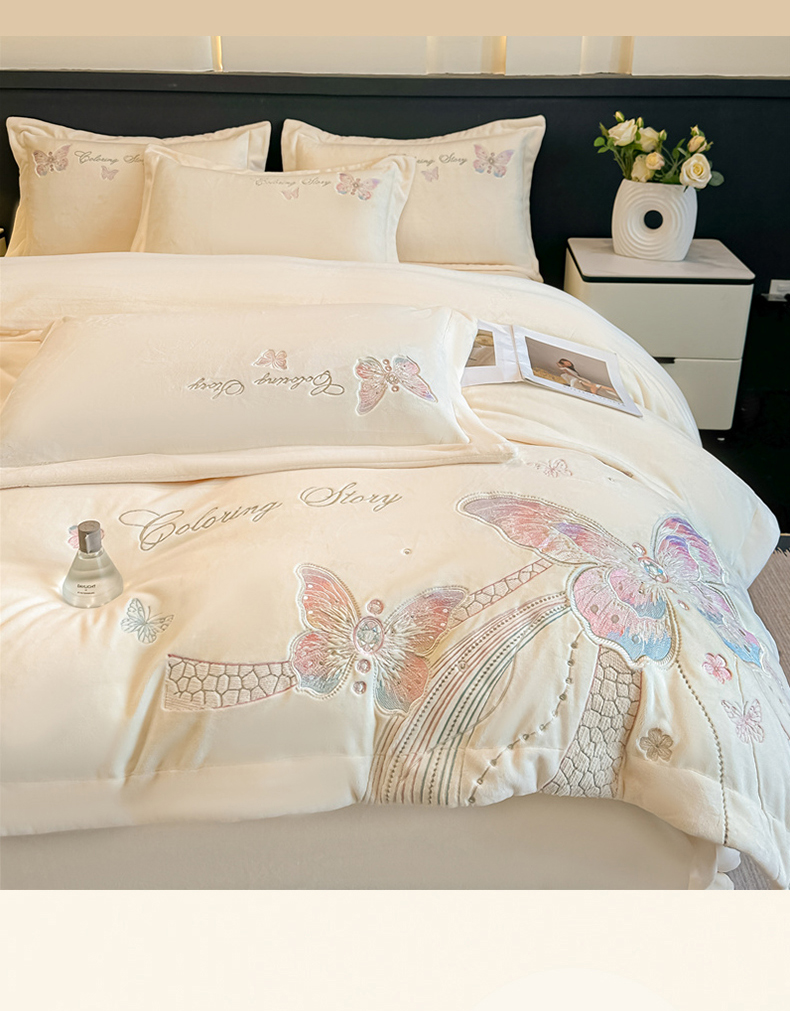 商品名称:(总)锦铭源家纺 2025新款75D全消光超柔樱花绒绣花四件套牛奶绒四件套【有买家秀】