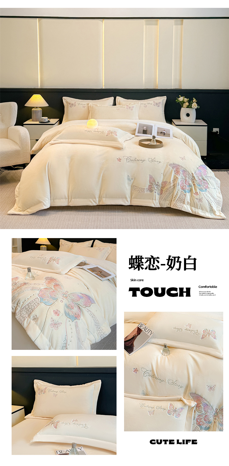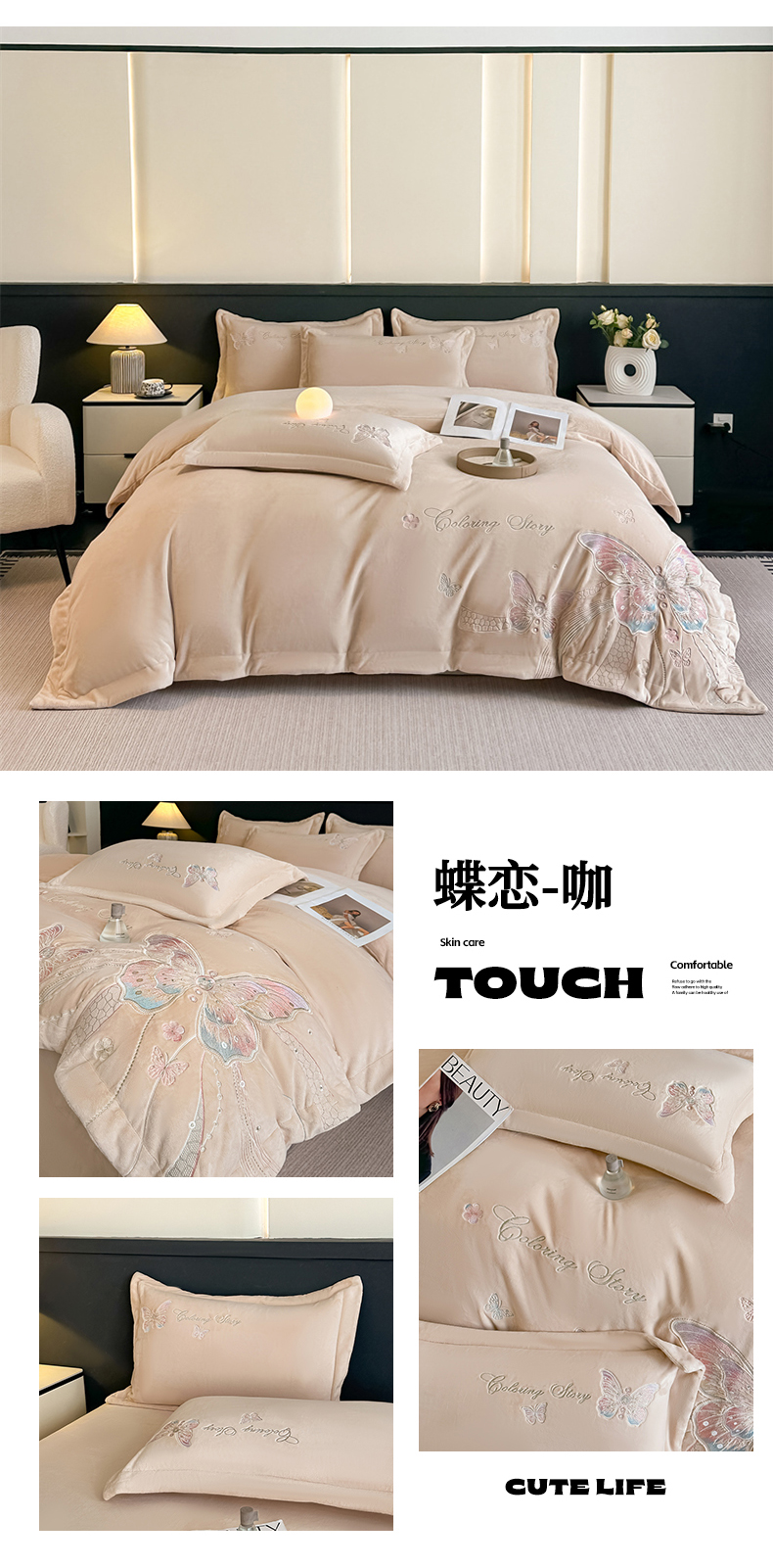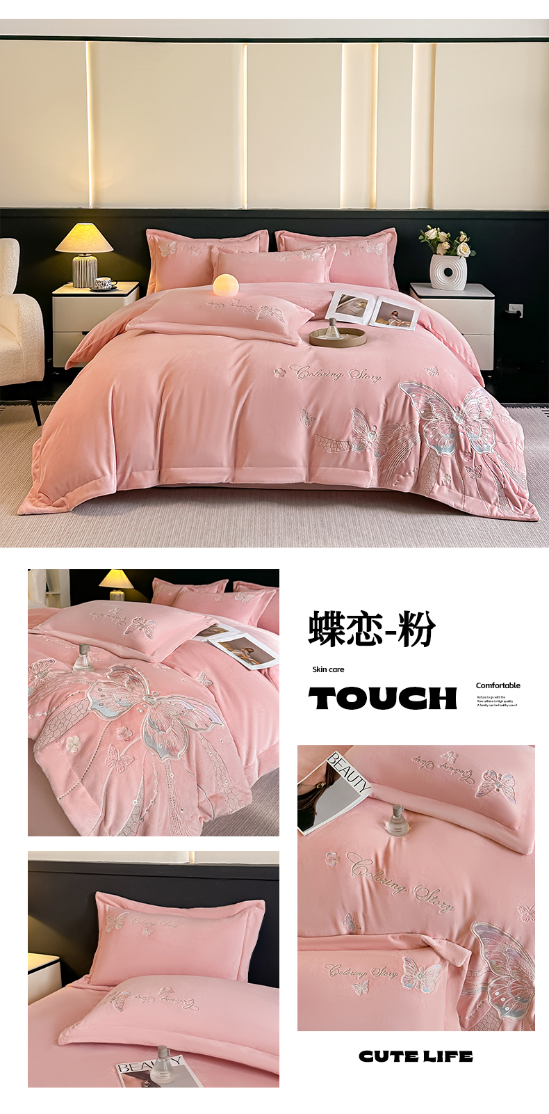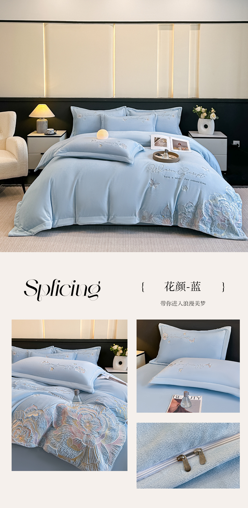 商品名称:(总)锦铭源家纺 2025新款75D全消光超柔樱花绒绣花四件套牛奶绒四件套【有买家秀】