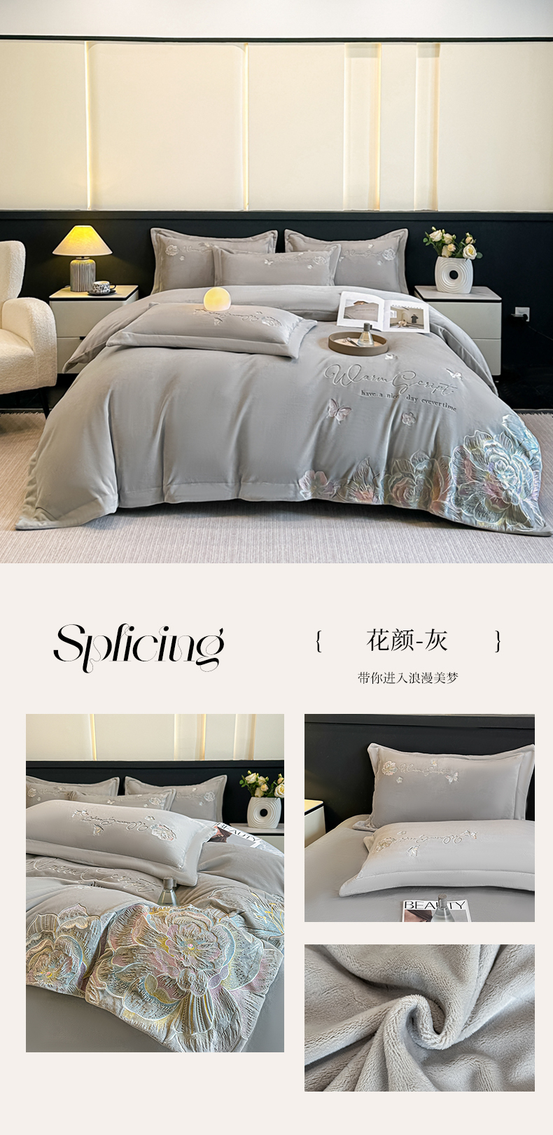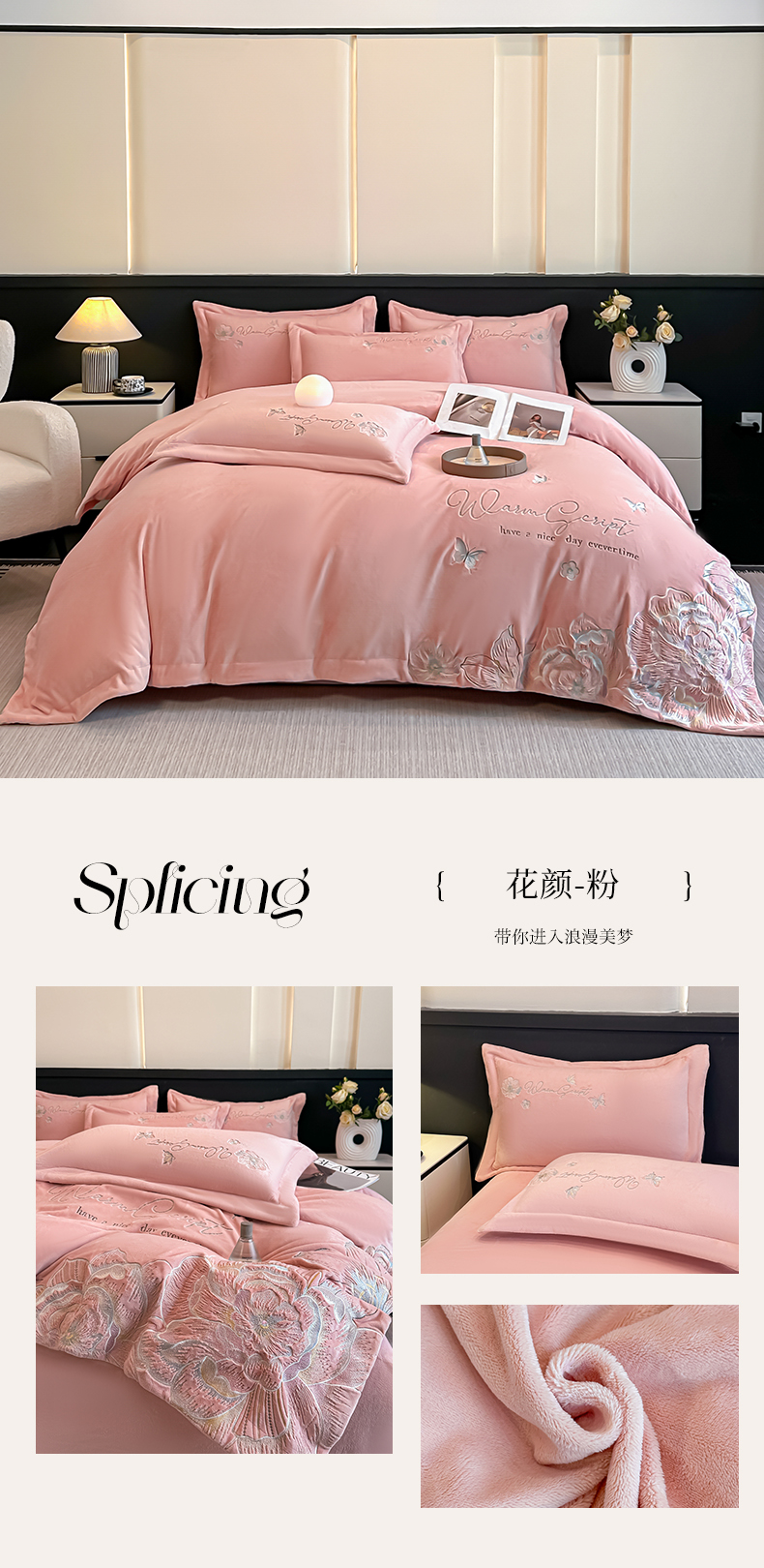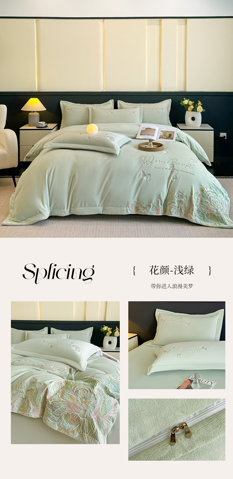(总)锦铭源家纺 2025新款雪貂绒烂花75D全消光超柔樱花绒双拼角四件套牛奶绒四件套【有买家秀】,轻奢-粉,轻奢-奶白,轻奢-浅绿,轻奢-雅灰
