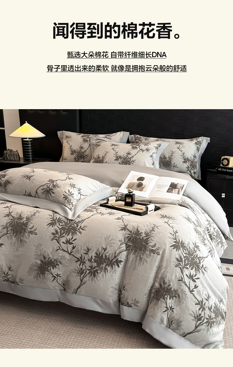(总)博纳家纺 2026新款正宗60支纯棉 活性数码印花 宽边高级简奢 撞色拼角 纯棉四件套,查尔斯,清沙月贝,睡美人,玉树临风