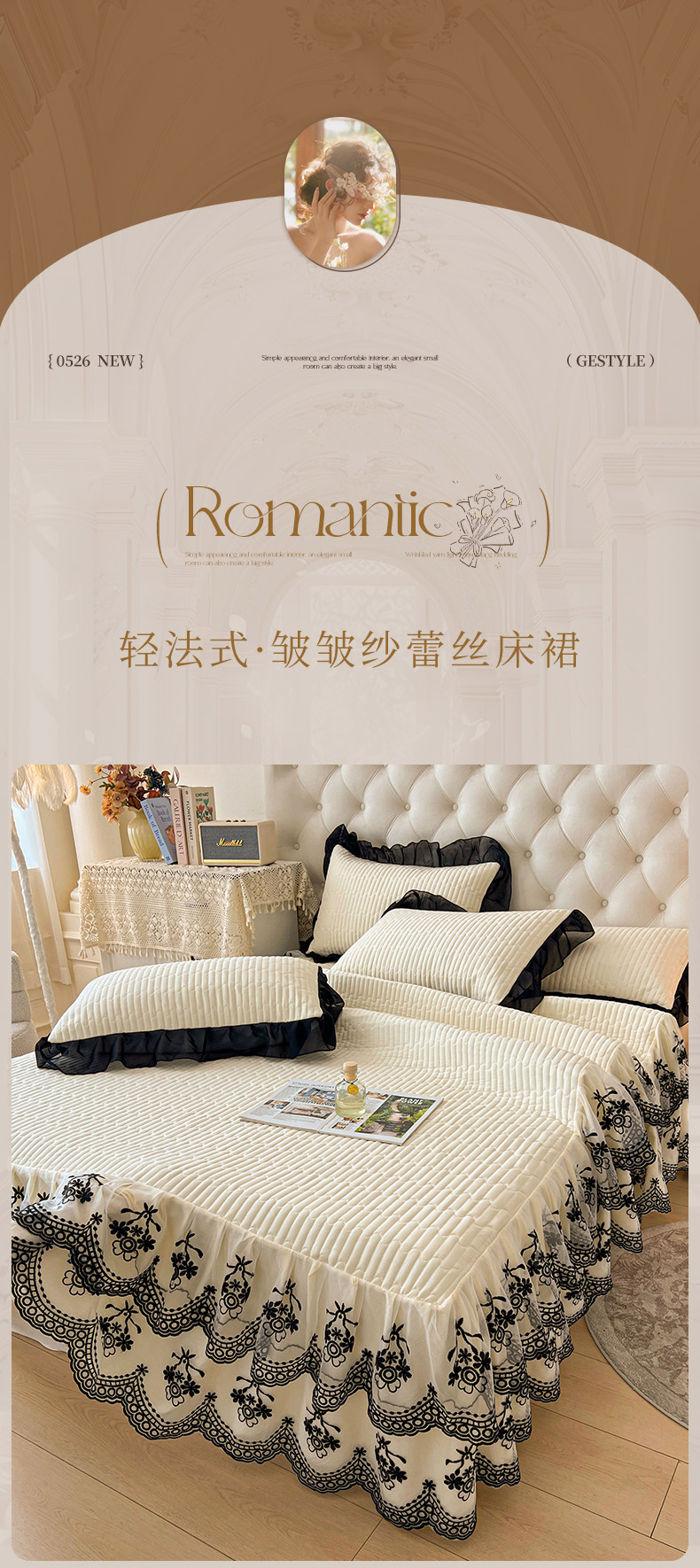 (总) 鼎丰家纺 2025新款法式浪漫花边皱皱纱床盖四件套,蔷薇-摩卡棕,蔷薇-桃花粉,蔷薇-牛奶白,蔷薇-云雾灰,蔷薇-清洗绿