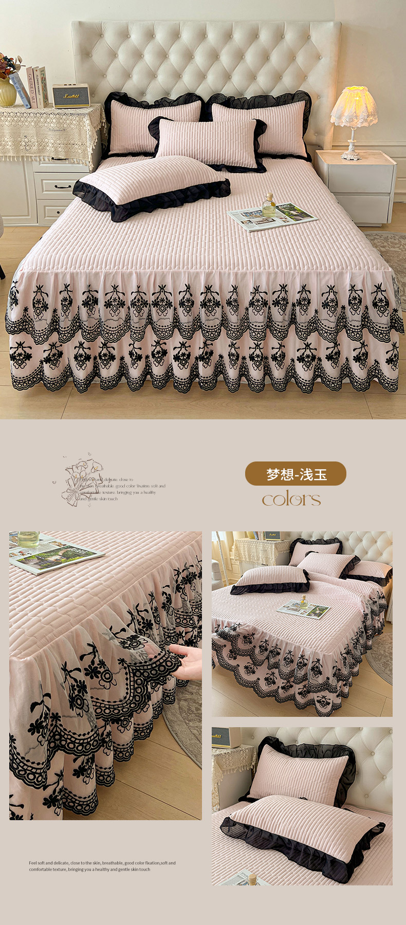 (总)鼎丰家纺 2025新款皱皱纱夹棉床裙三件套-花影系列,花影-豆沙,花影-浅蓝,花影-浅米,花影-浅玉,花影-清新绿,花影-樱花粉