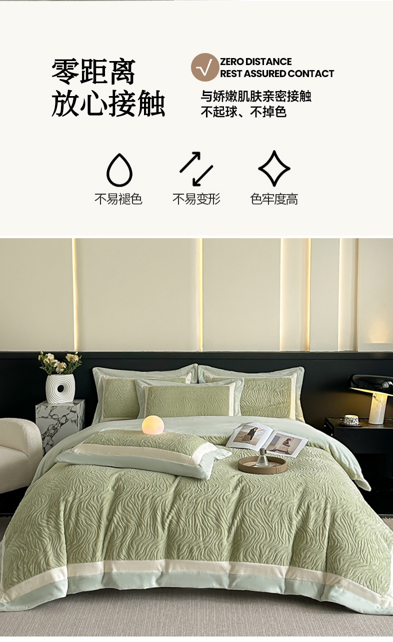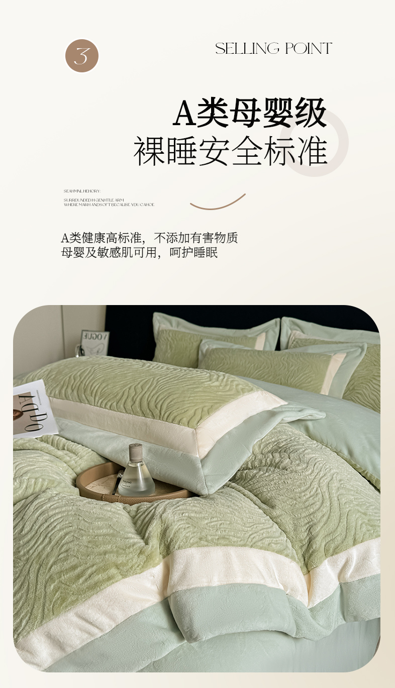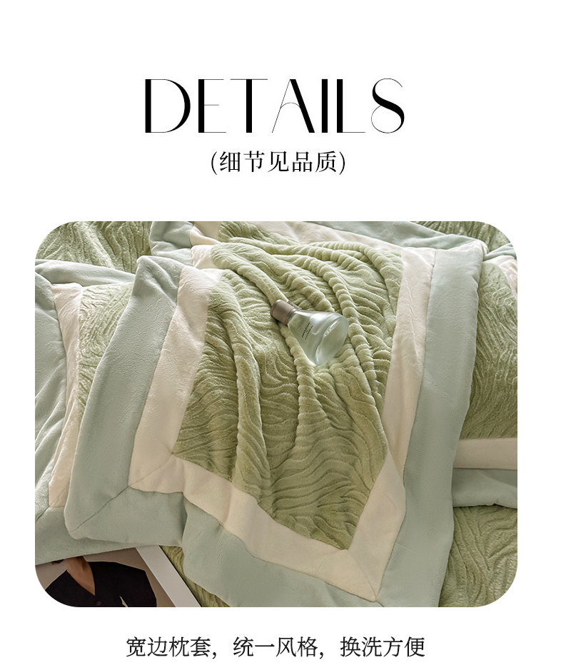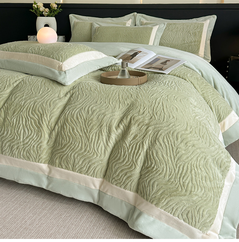商品名称:锦铭源家纺 2025新款雪貂绒烂花75D全消光超柔樱花绒双拼角四件套牛奶绒四件套【有买家秀】 轻奢-浅绿