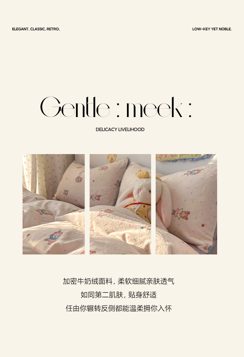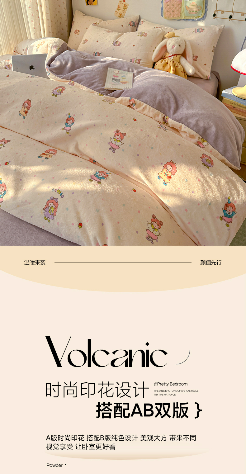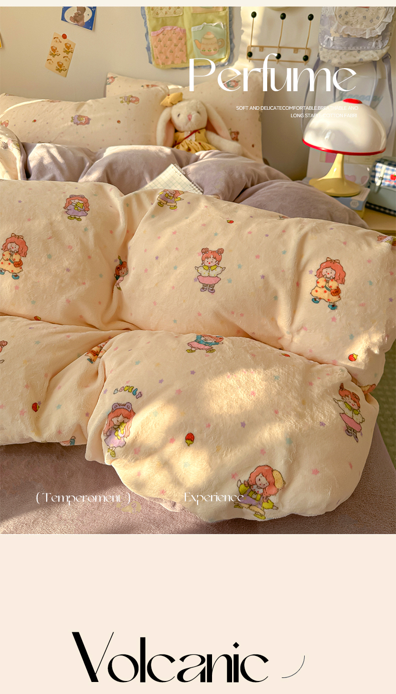 当前位置: 91家纺网 > 商品网购 > 床品套件 > 四件套 > 牛奶绒四件套 > 韩巢家纺 2025新款高克重牛奶绒四件套冬季绒床品被套床单三件套 奶糖少女