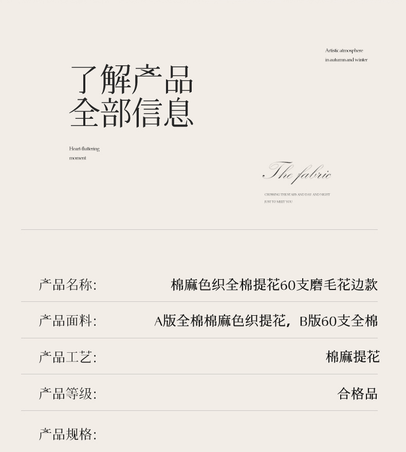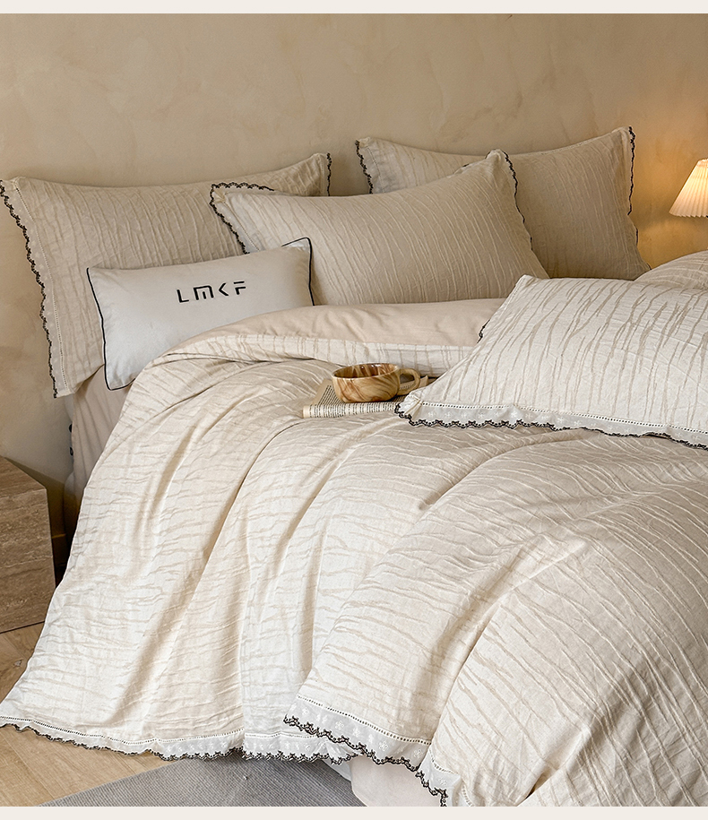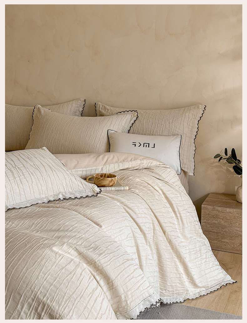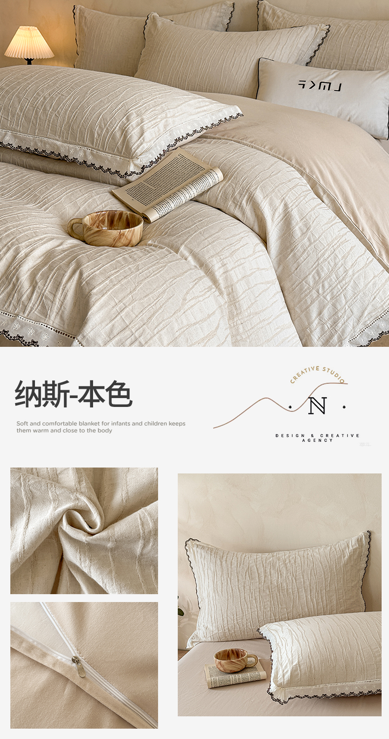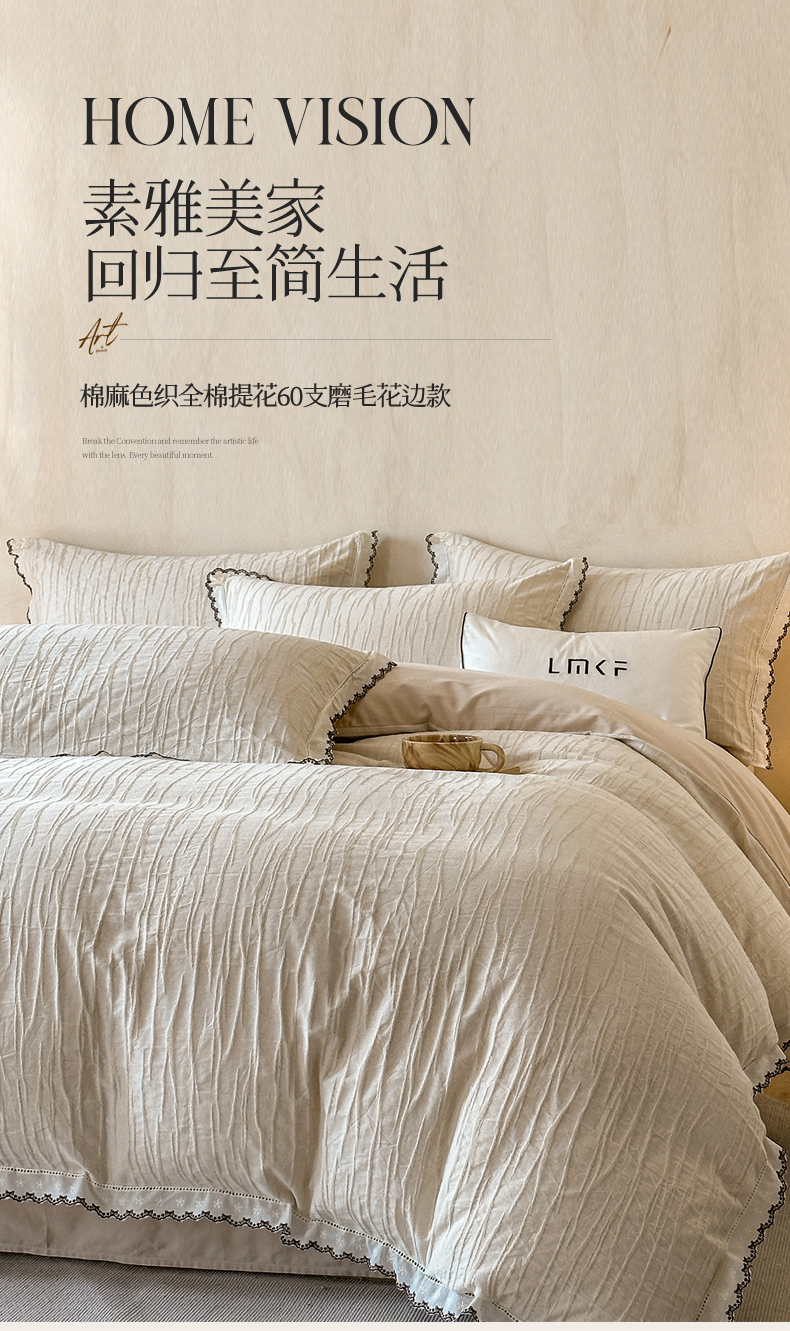 商品名称:蓝米卡夫 2025秋冬-棉麻色织全棉提花60支磨毛花边款(礼盒包装)提供买家秀 纳斯-本色