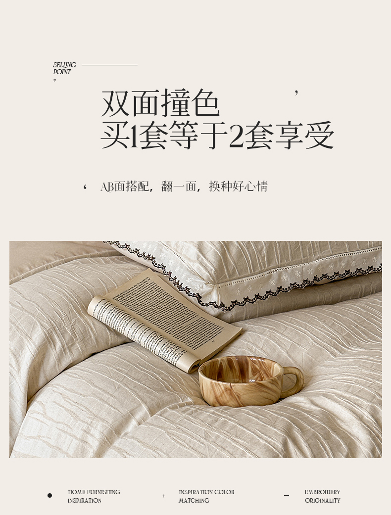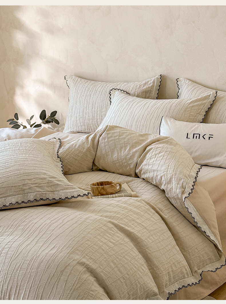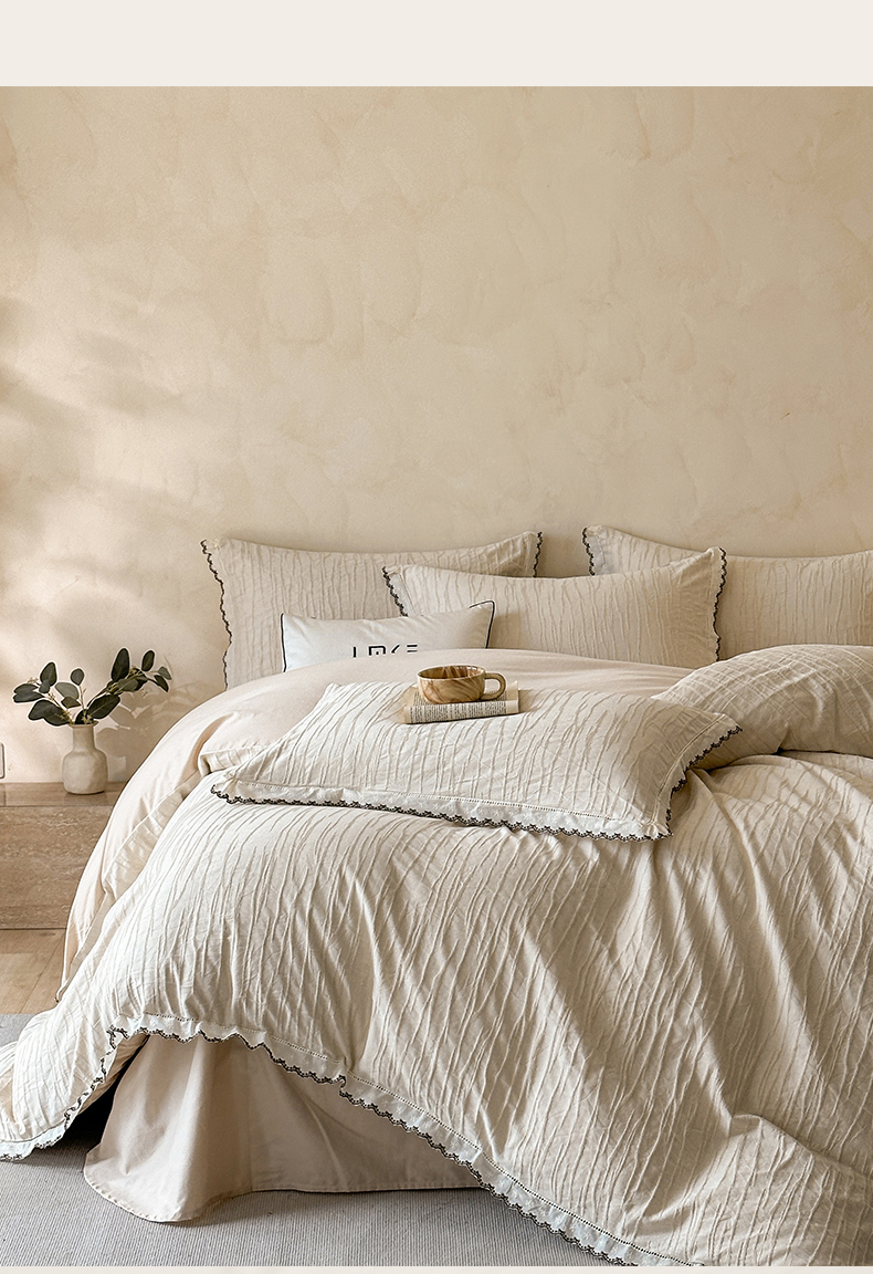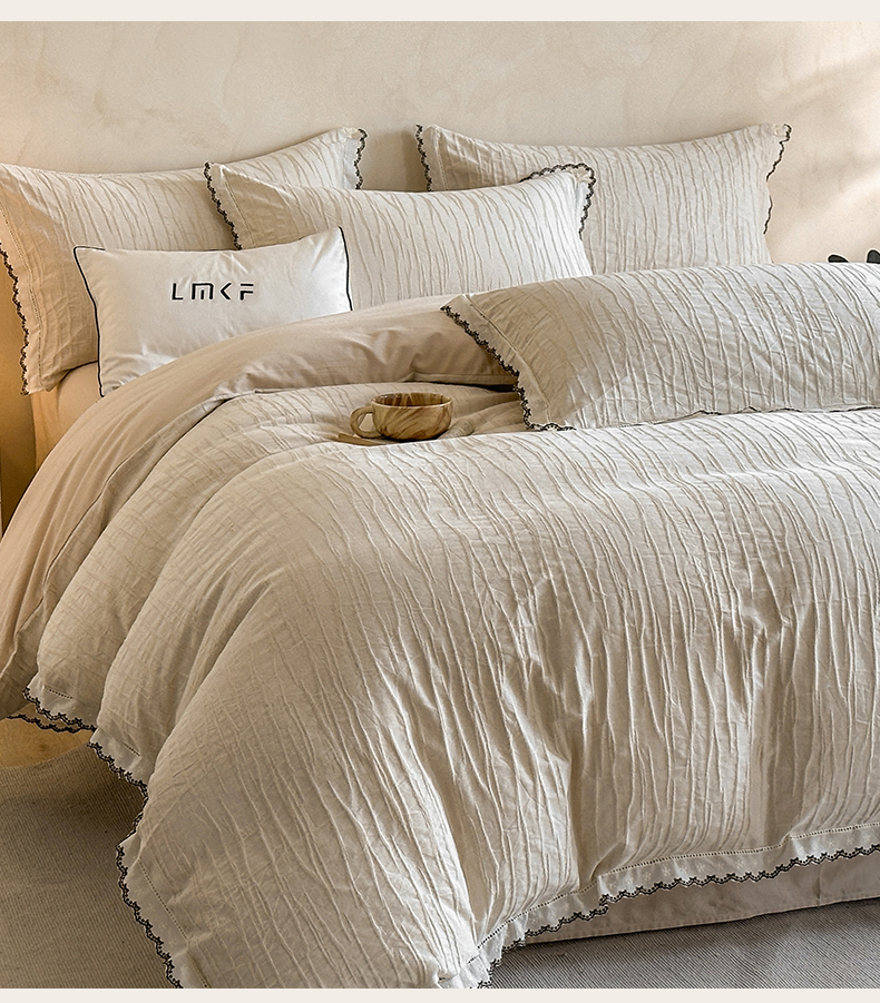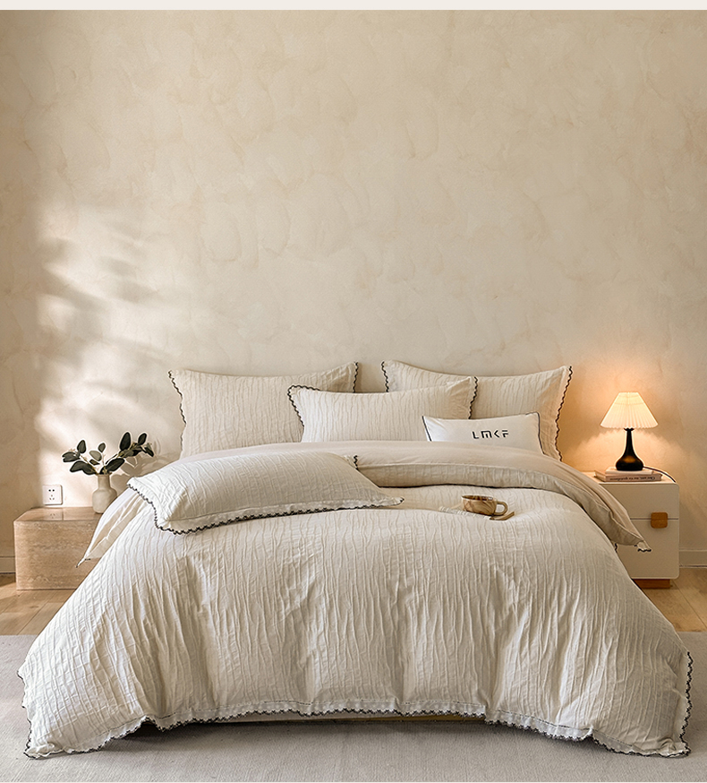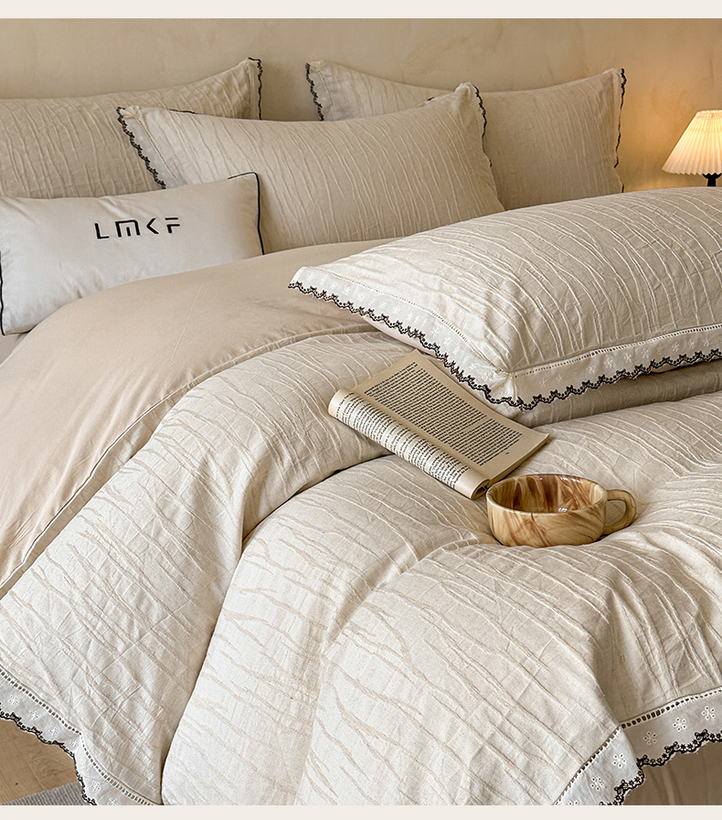 商品名称:蓝米卡夫 2025秋冬-棉麻色织全棉提花60支磨毛花边款(礼盒包装)提供买家秀 纳斯-本色