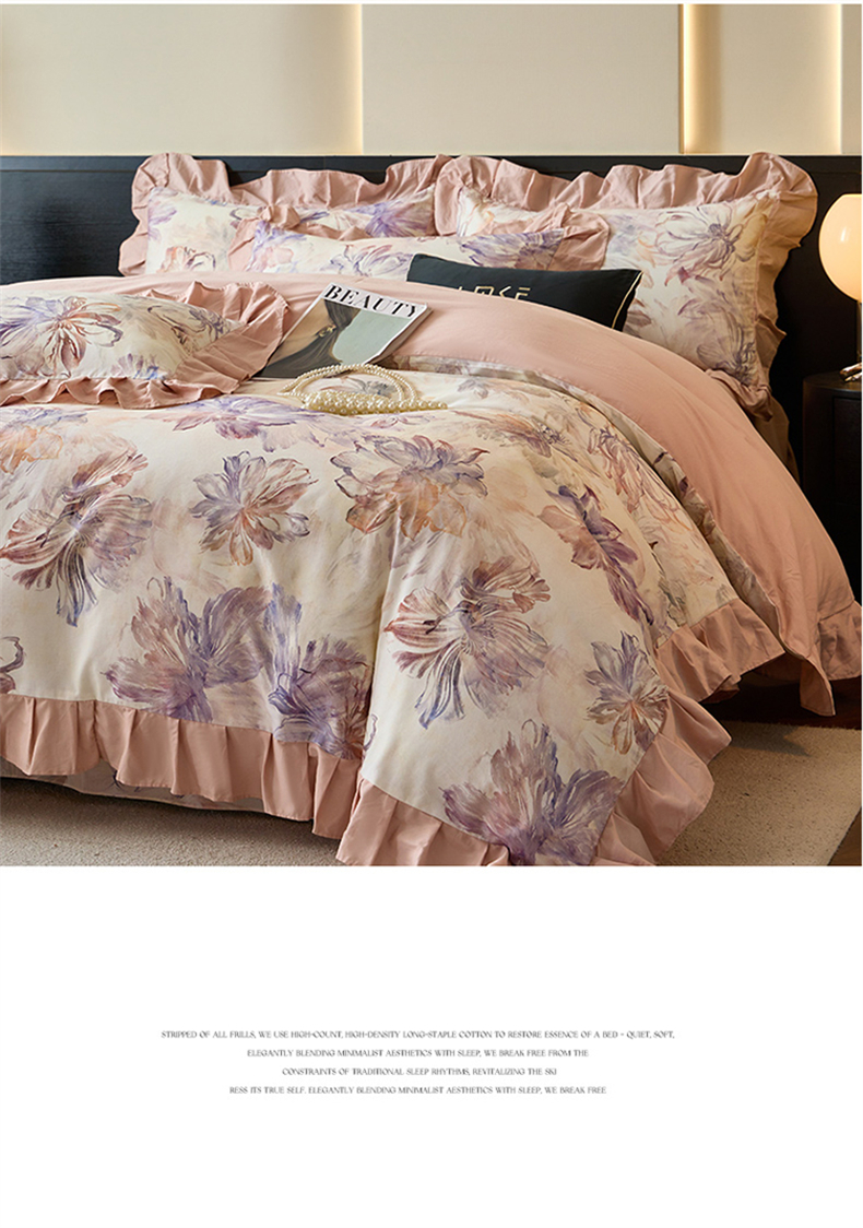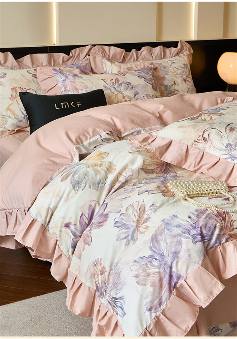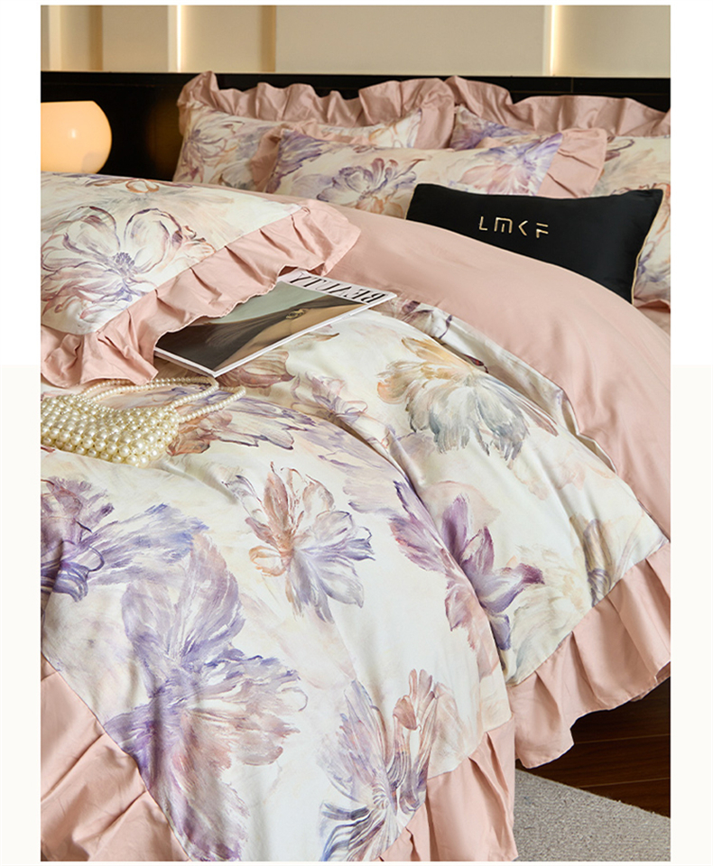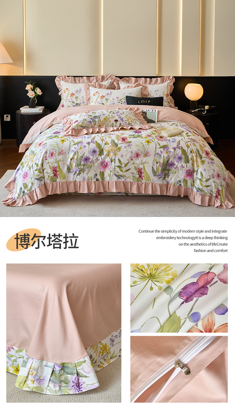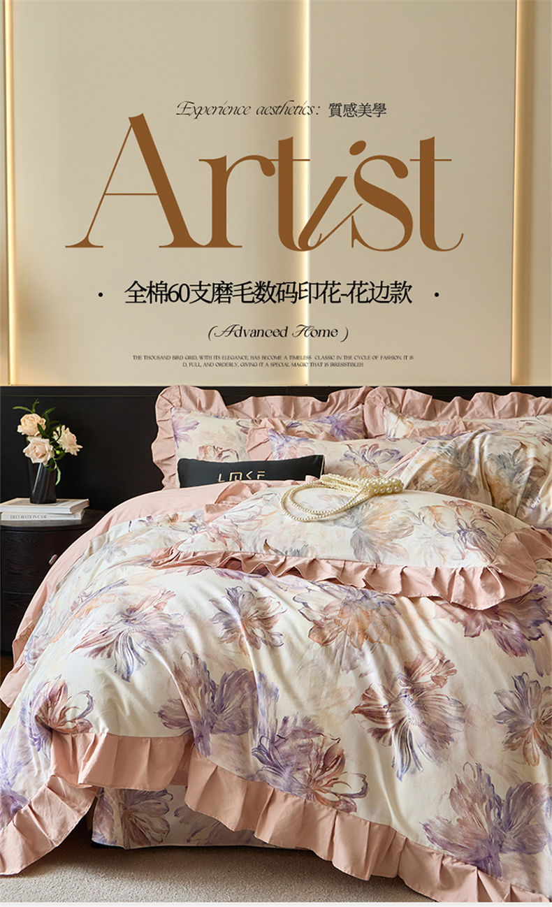 商品名称:蓝米卡夫 2025秋冬-全棉60支磨毛数码印花-花边款(礼盒包装)提供买家秀 禾木
