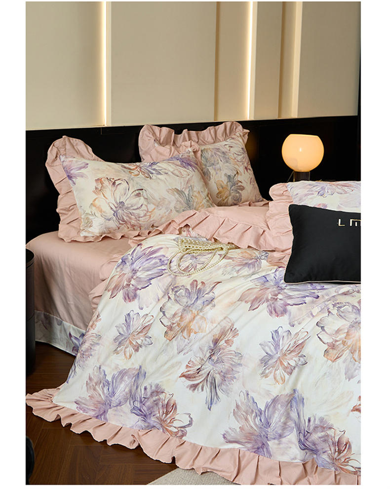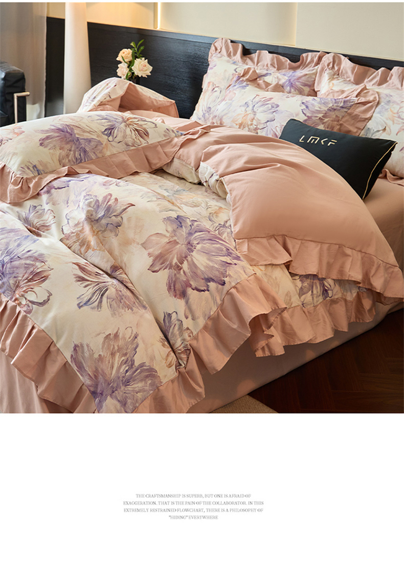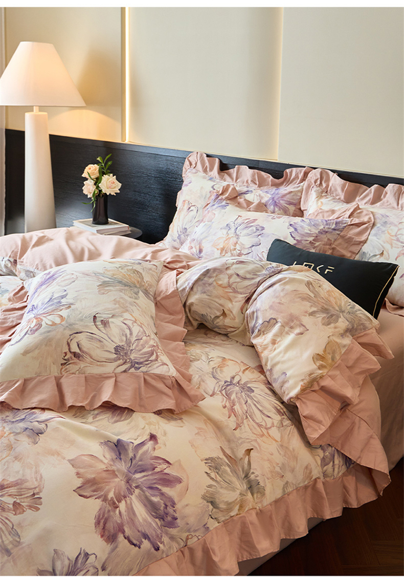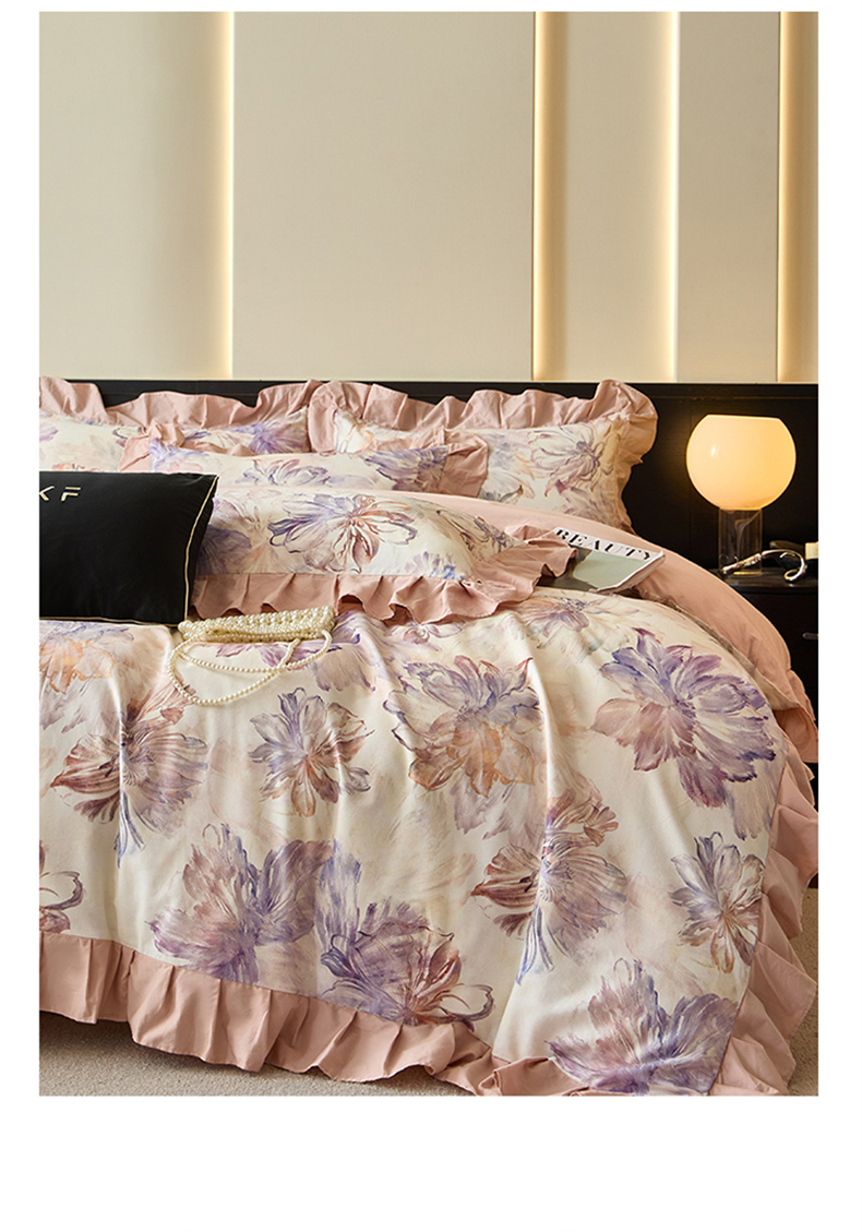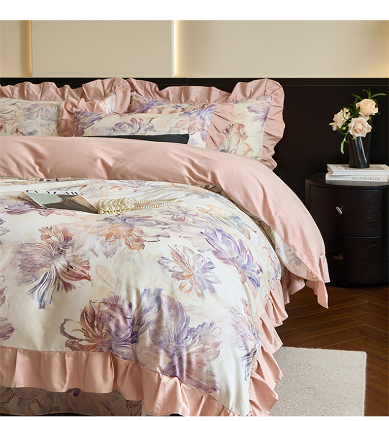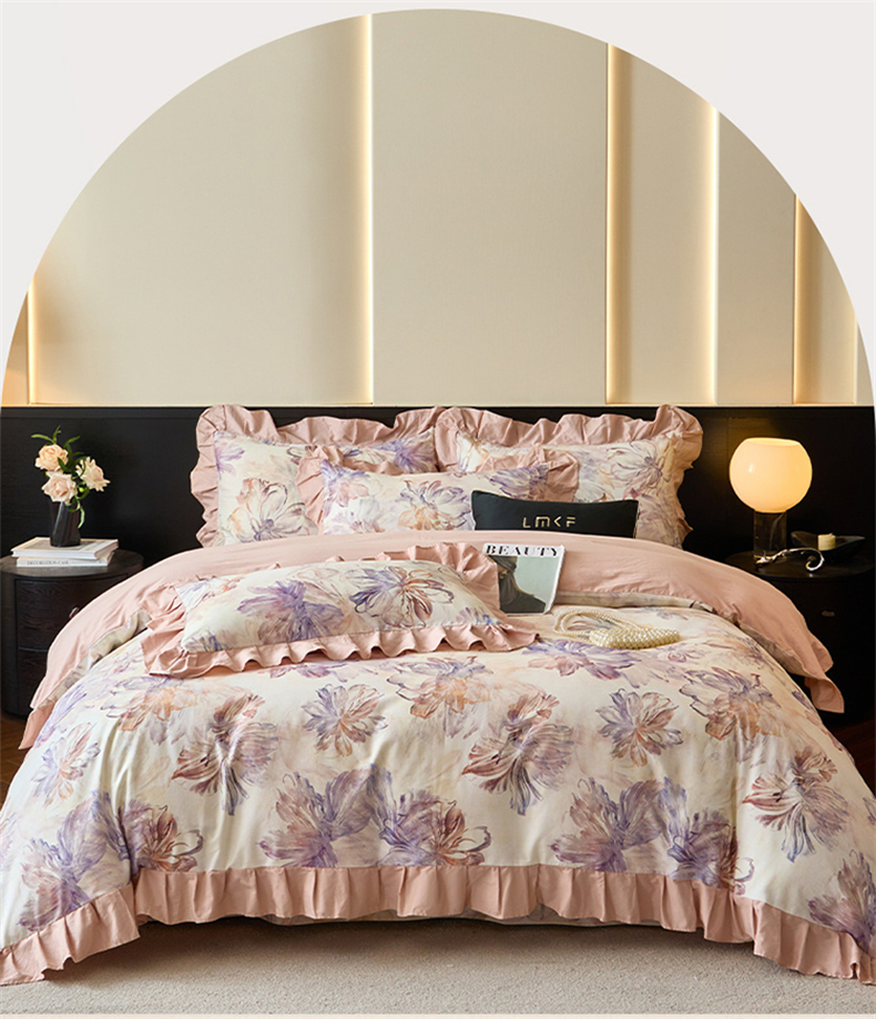 商品名称:蓝米卡夫 2025秋冬-全棉60支磨毛数码印花-花边款(礼盒包装)提供买家秀 禾木