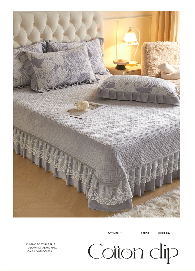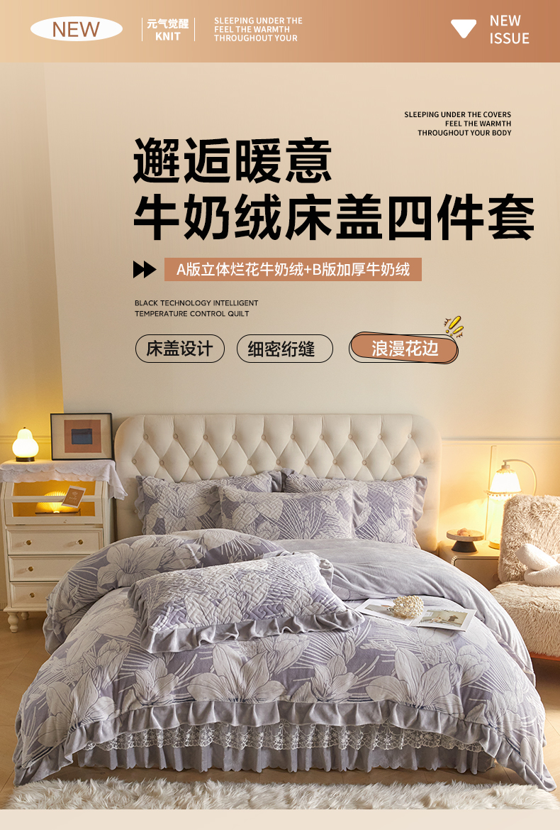 商品名称:畅畅家纺 2025新款11斤高克重新款韩版烂花牛奶绒冬季加厚床盖四件套系列 幽兰-灰紫