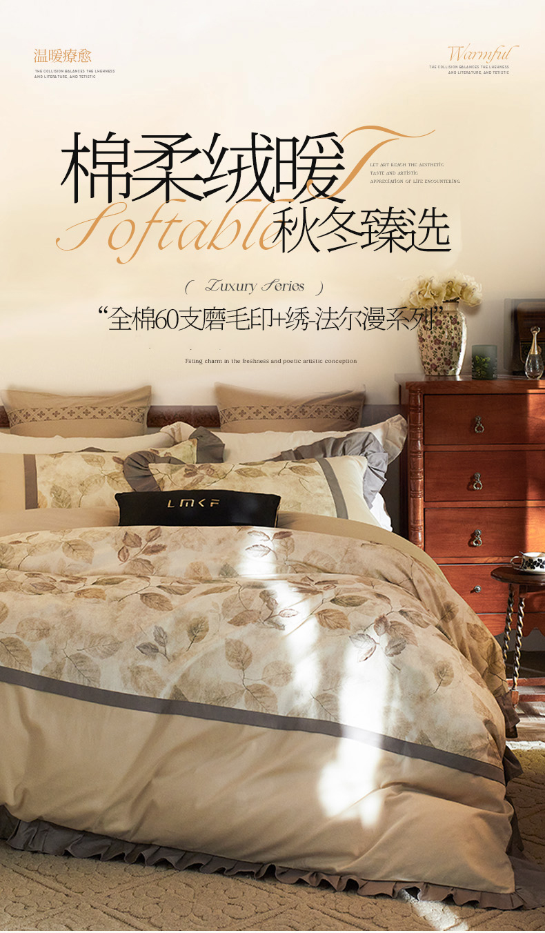 蓝米卡夫 2025秋冬-全棉60支磨毛印+绣-法尔漫系列(礼盒包装)-拍摄风格1 提供买家秀 法尔漫-灰
