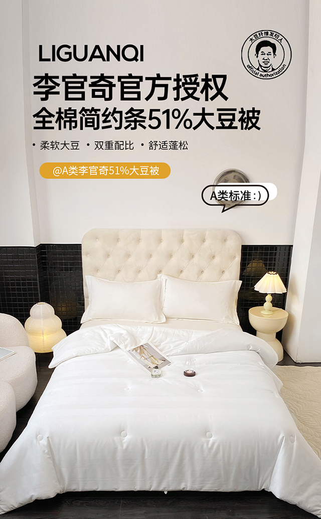 被子 > 冬被 > (总)未来家居 2025新款SPD001简约大豆被全棉小提花简约条李官奇51%大豆夏被春秋被冬被被子被芯