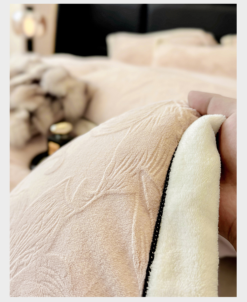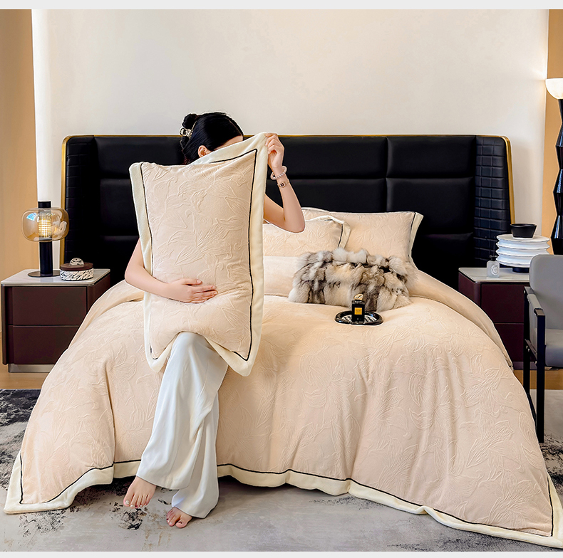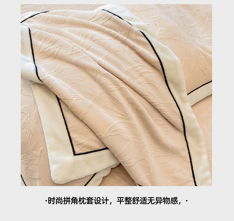 金喜 2025秋冬新款230克高克重牛奶绒四件套雕花绒拼角宽边嵌绳系列四件套 百合-奶咖
