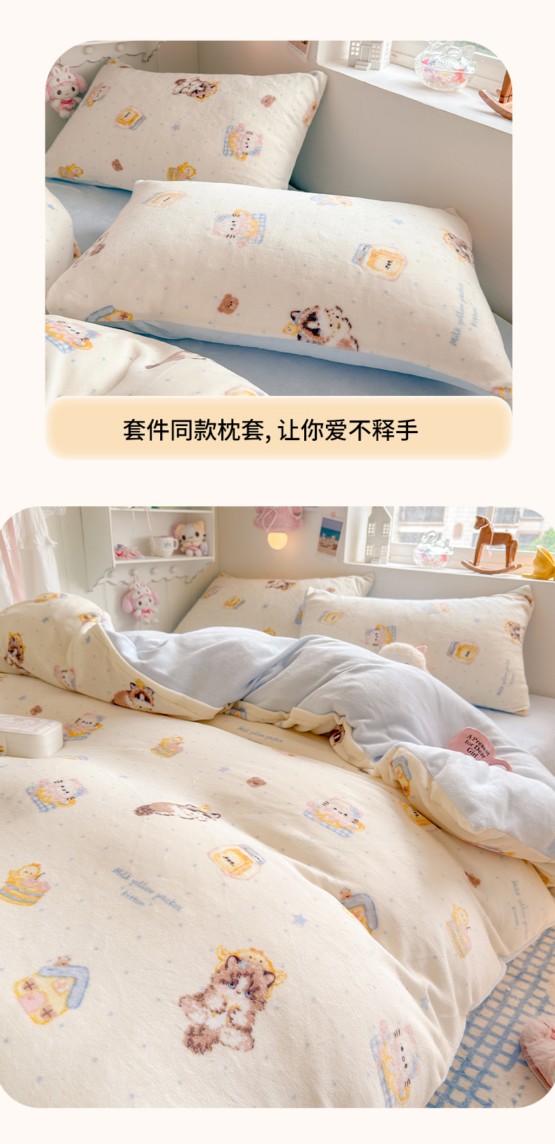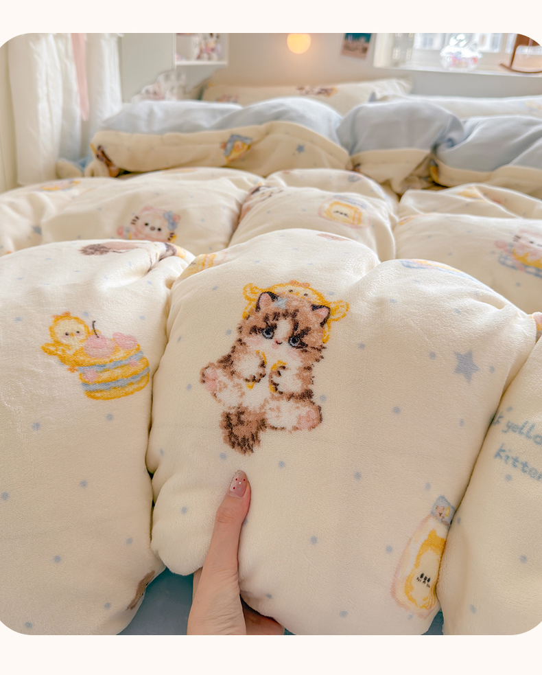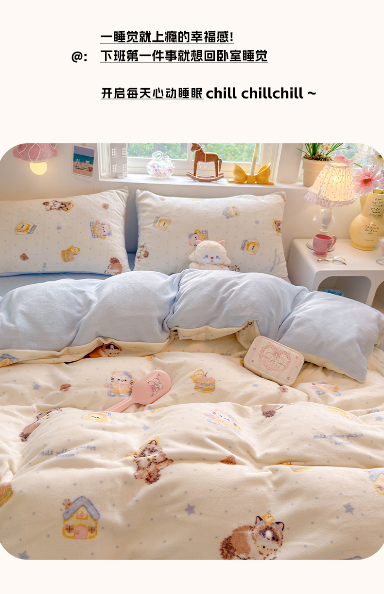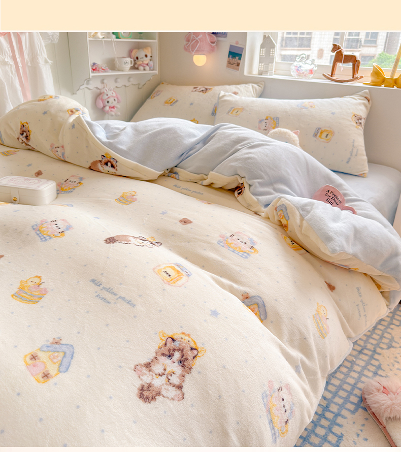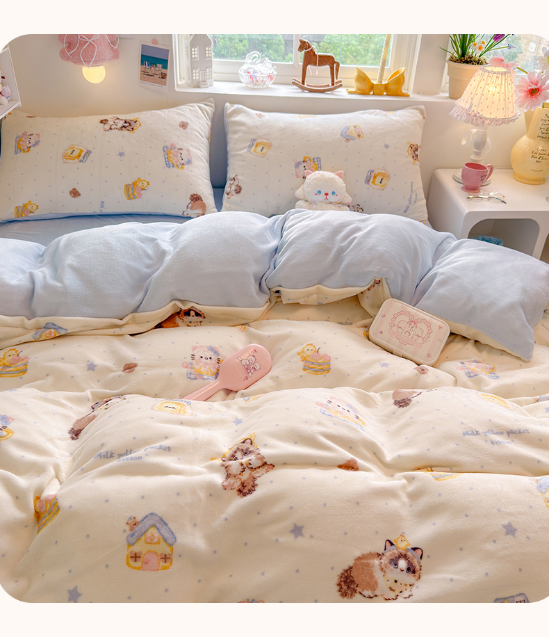 当前位置: 91家纺网 > 商品网购 > 床品套件 > 四件套 > 牛奶绒四件套 > 罗亿家纺 2025新款ins小清新少女奶油卡通可爱加厚200克牛奶绒四件套【3.6公斤】(小红书推荐) 奶油猫咪