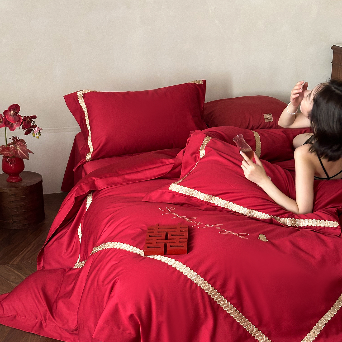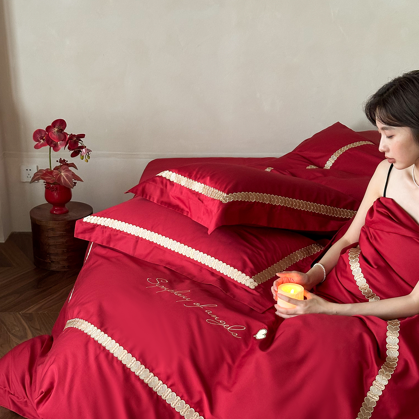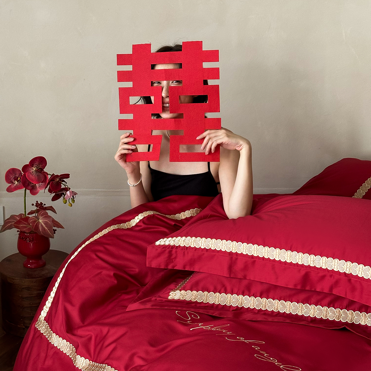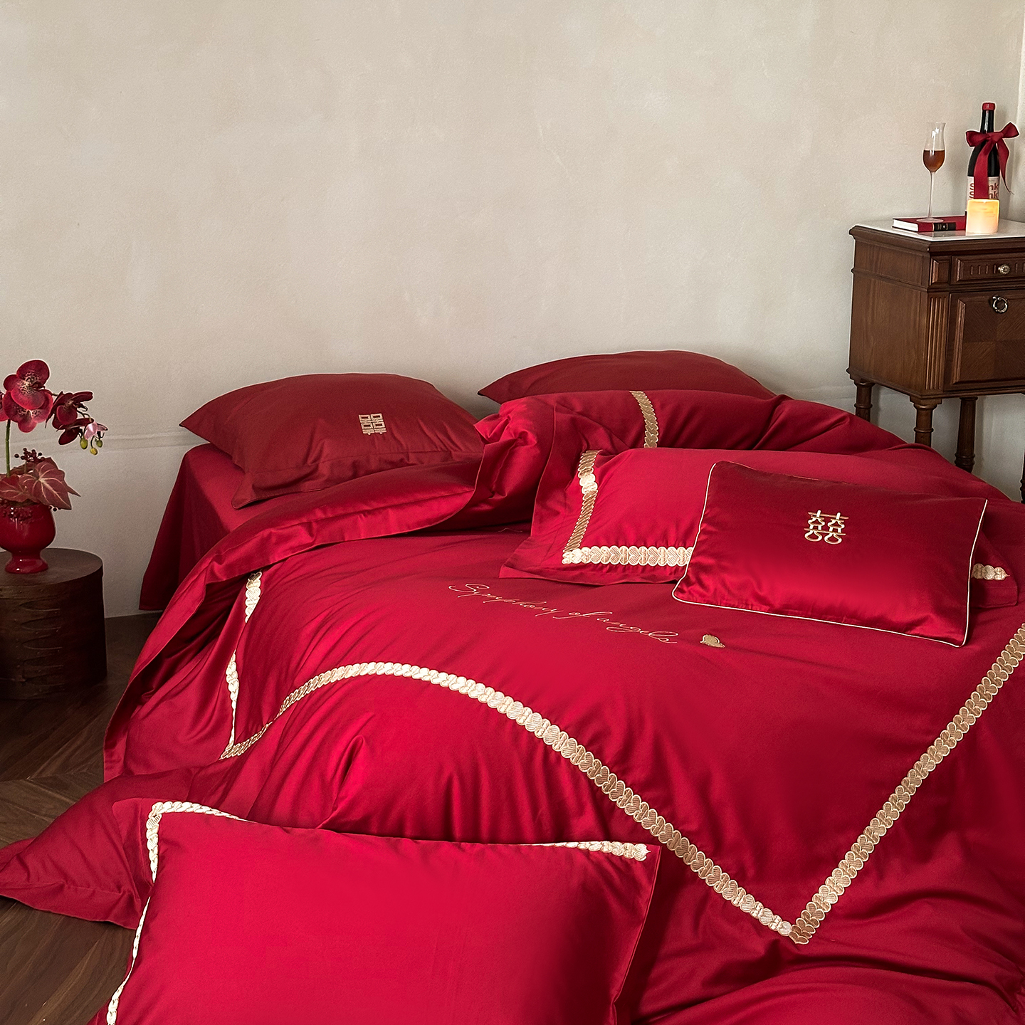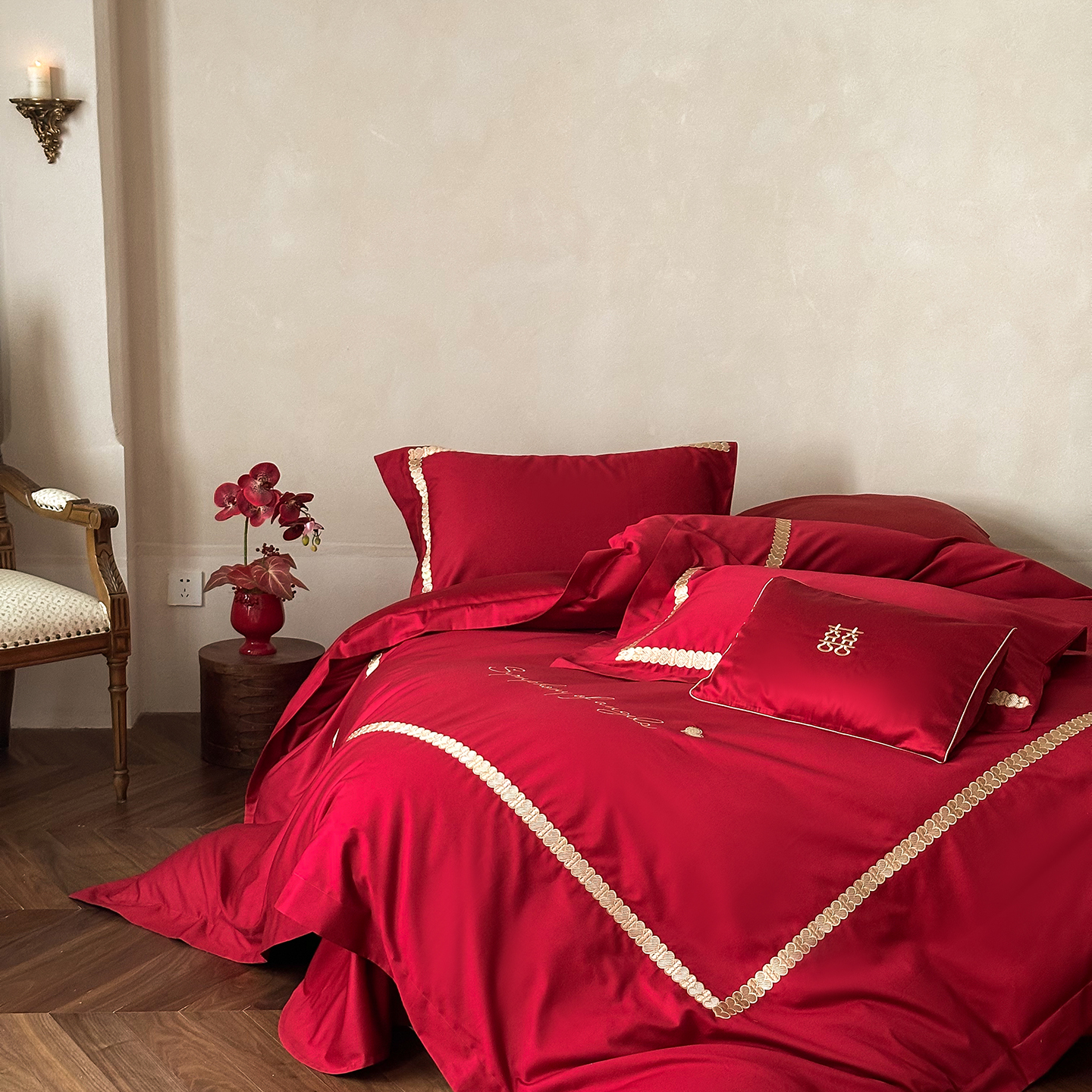 (总)西西家居 2025新款100支长绒棉大红婚庆四件套-一见钟情