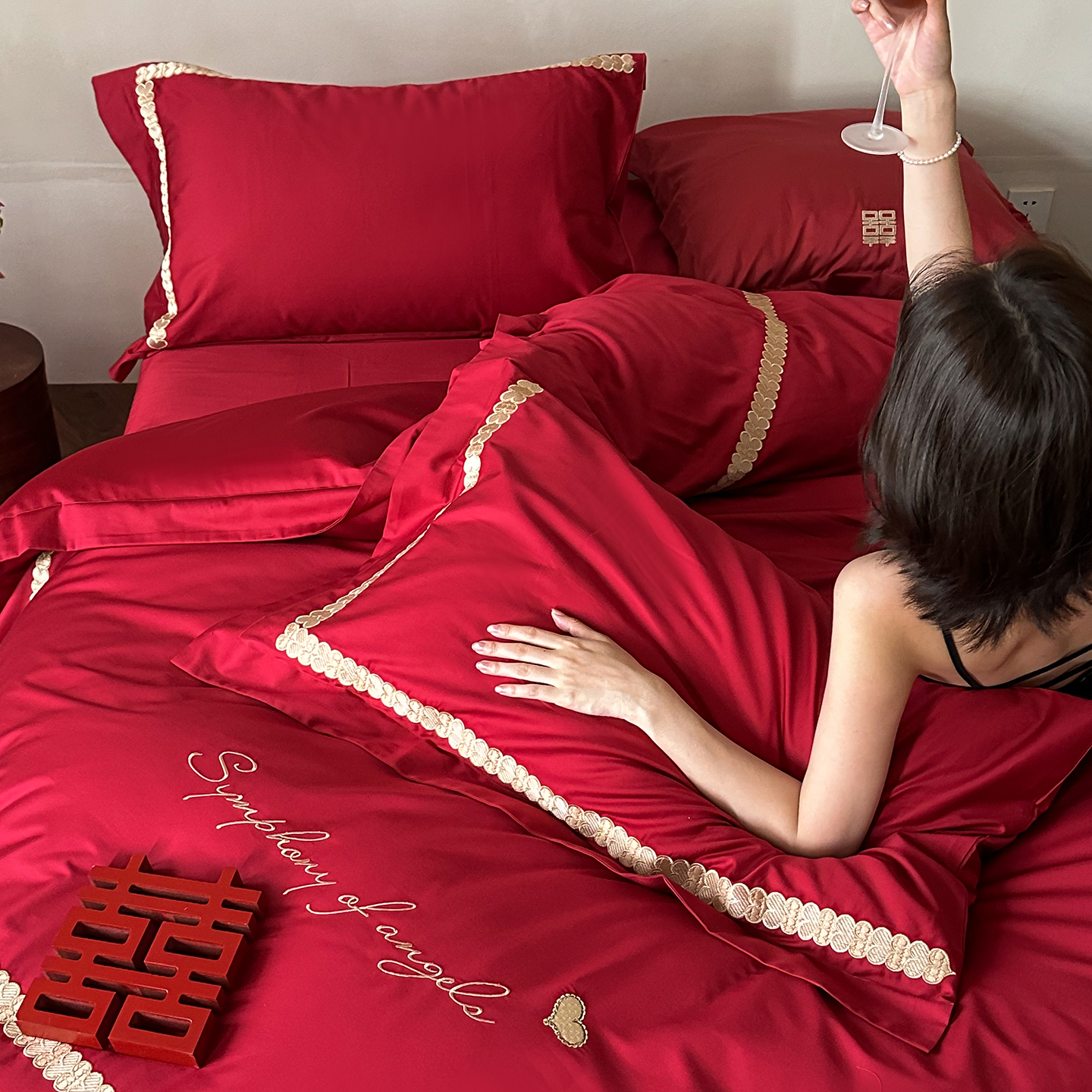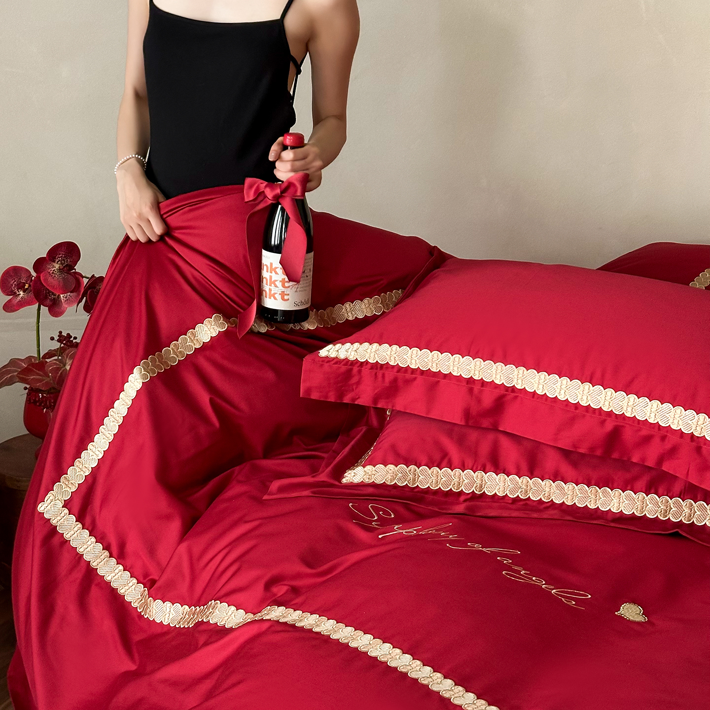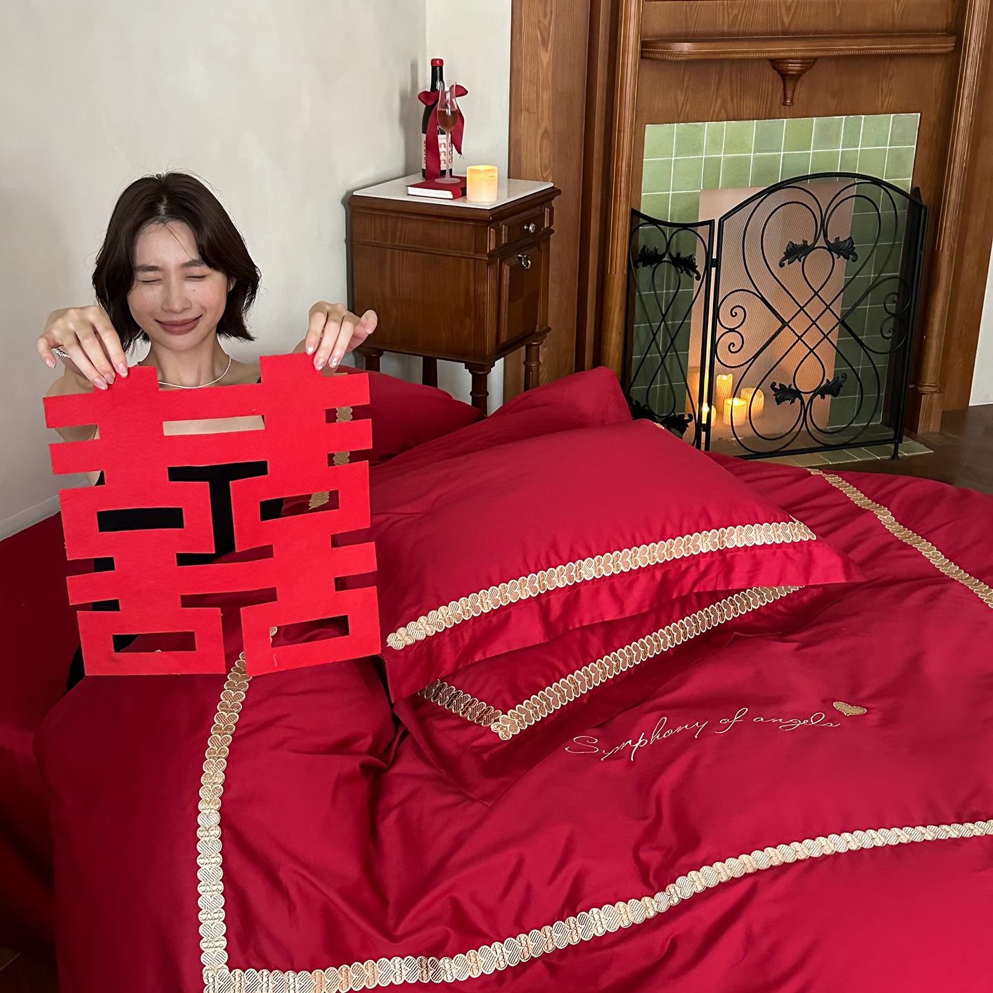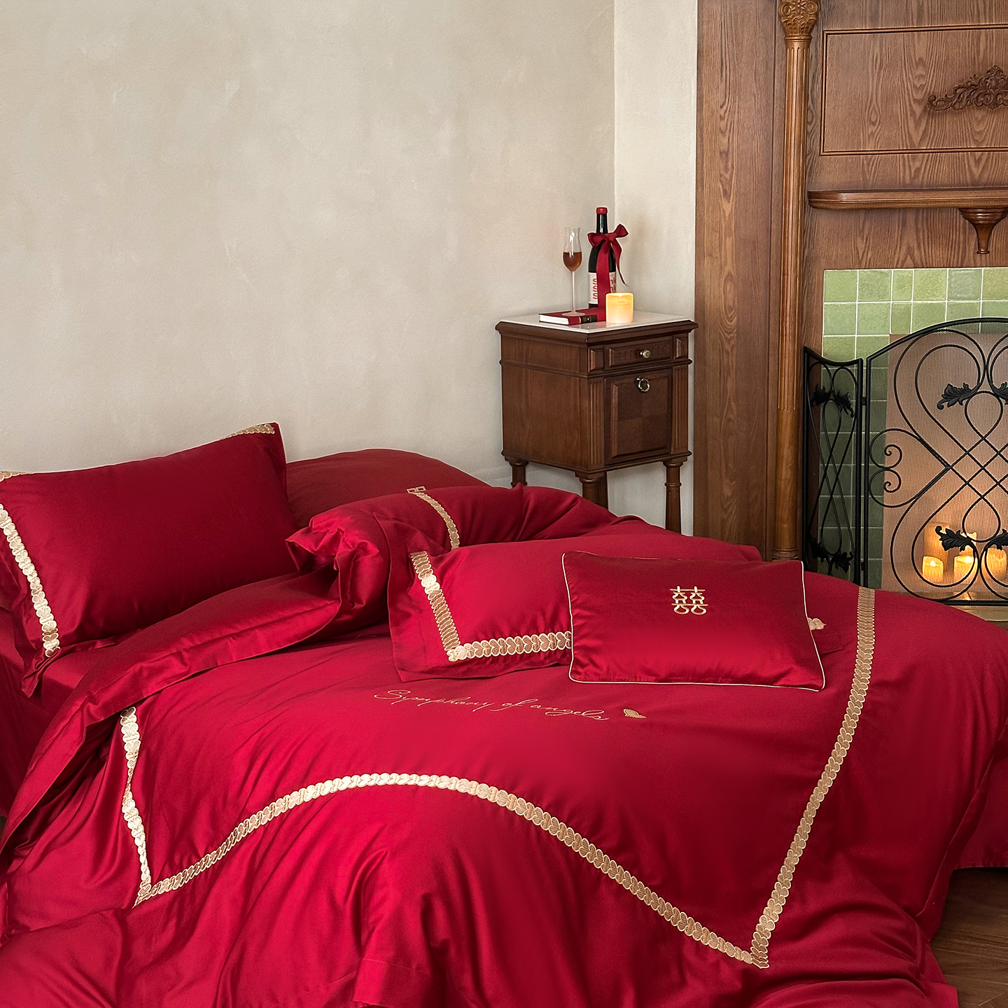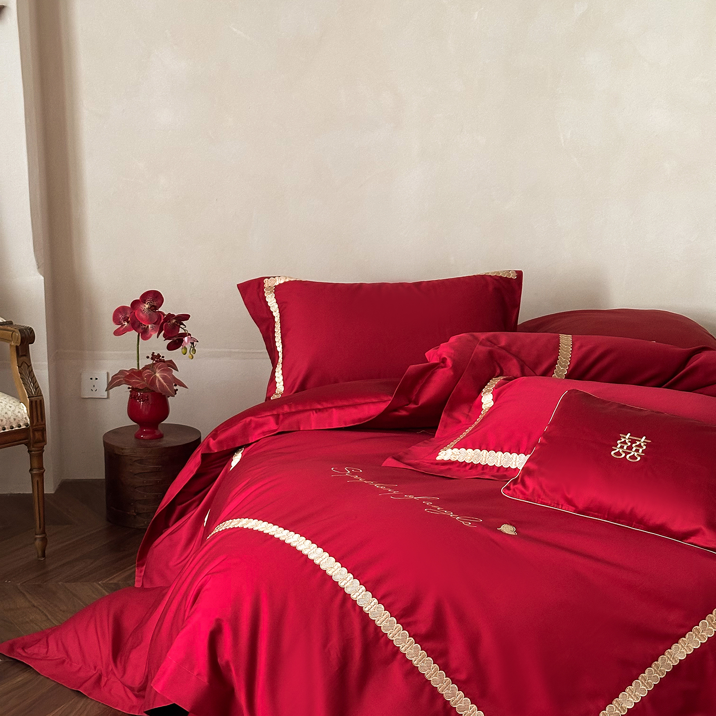 (总)西西家居 2025新款100支长绒棉大红婚庆四件套-一见钟情