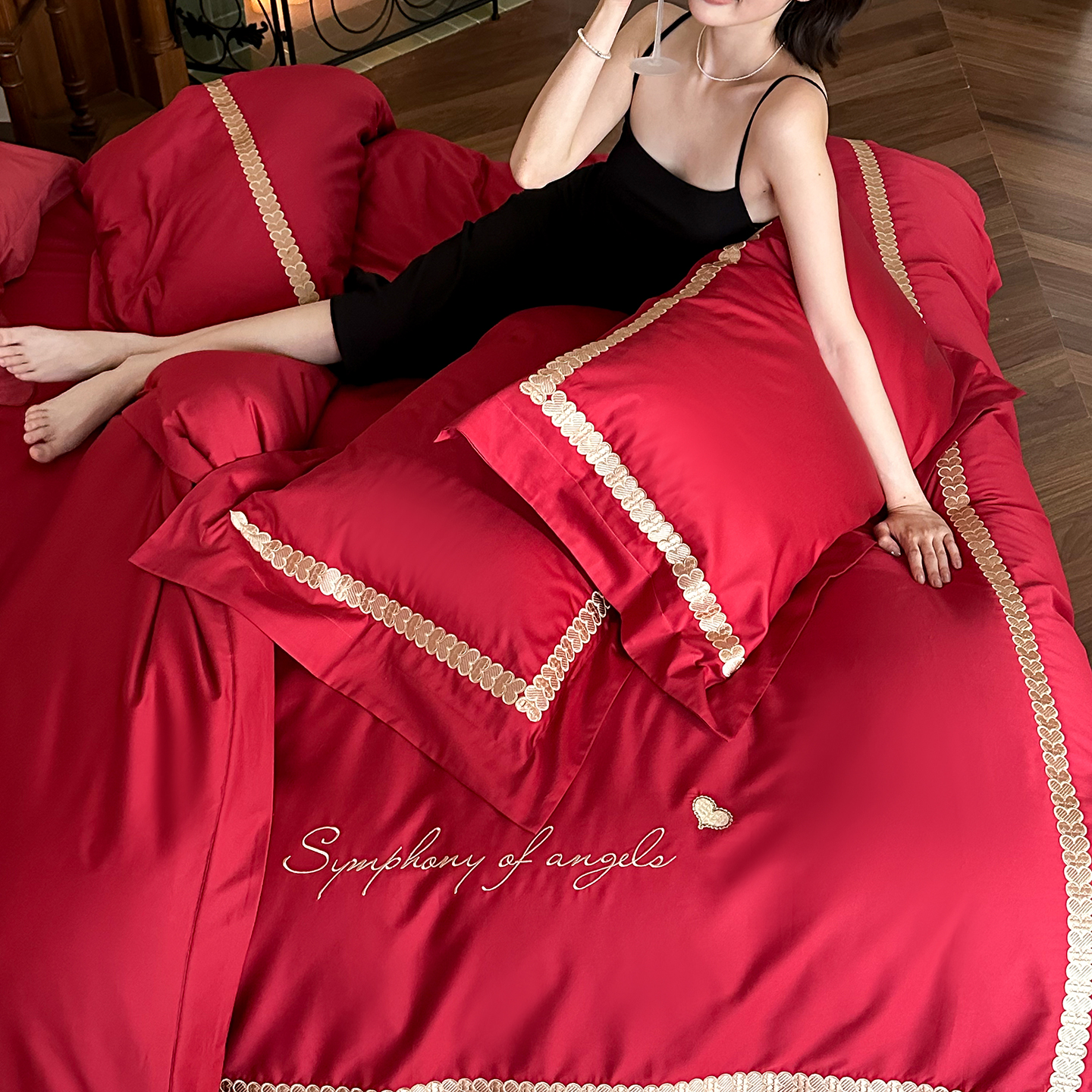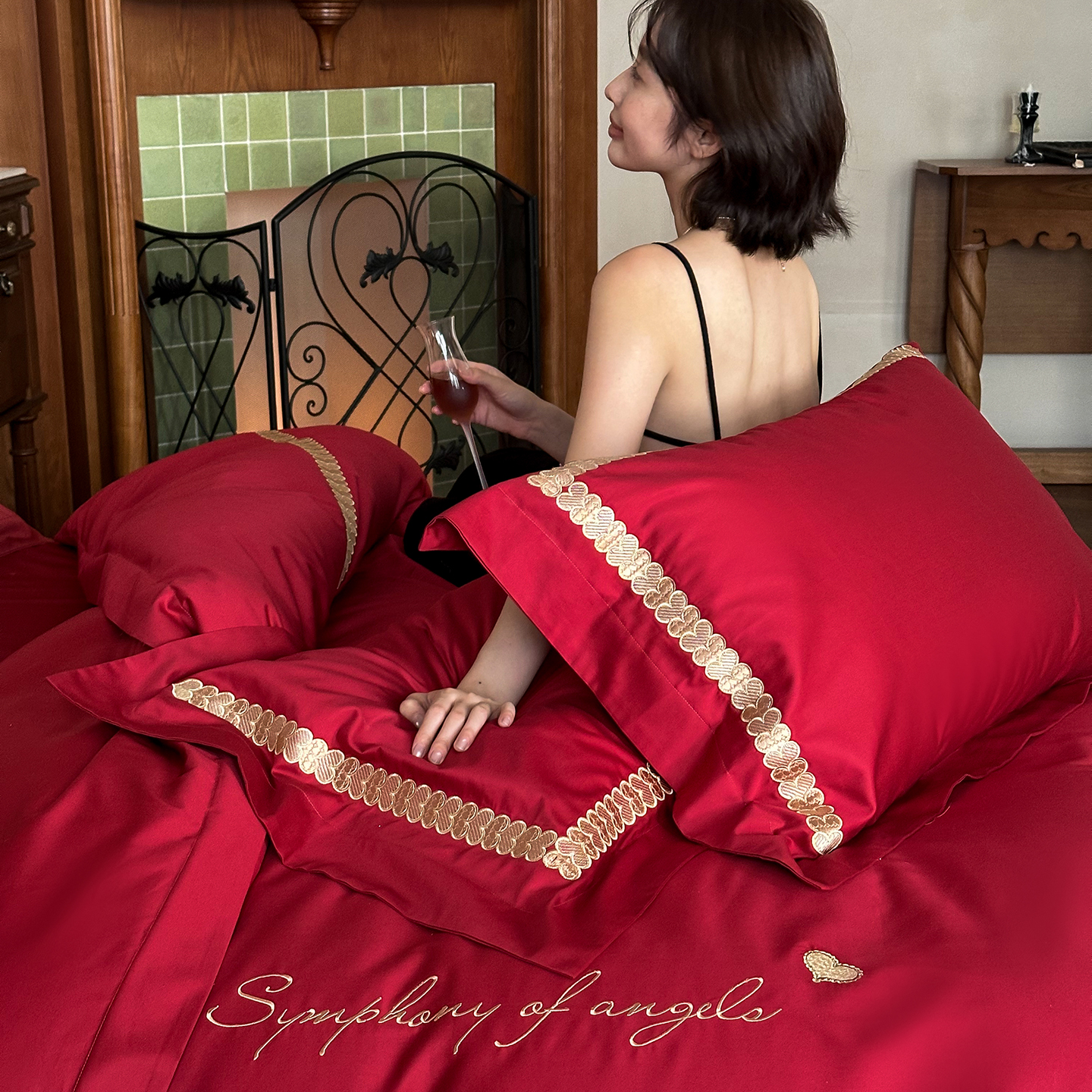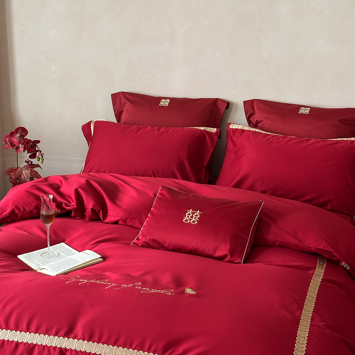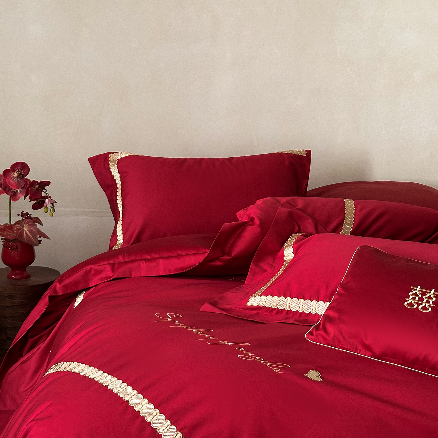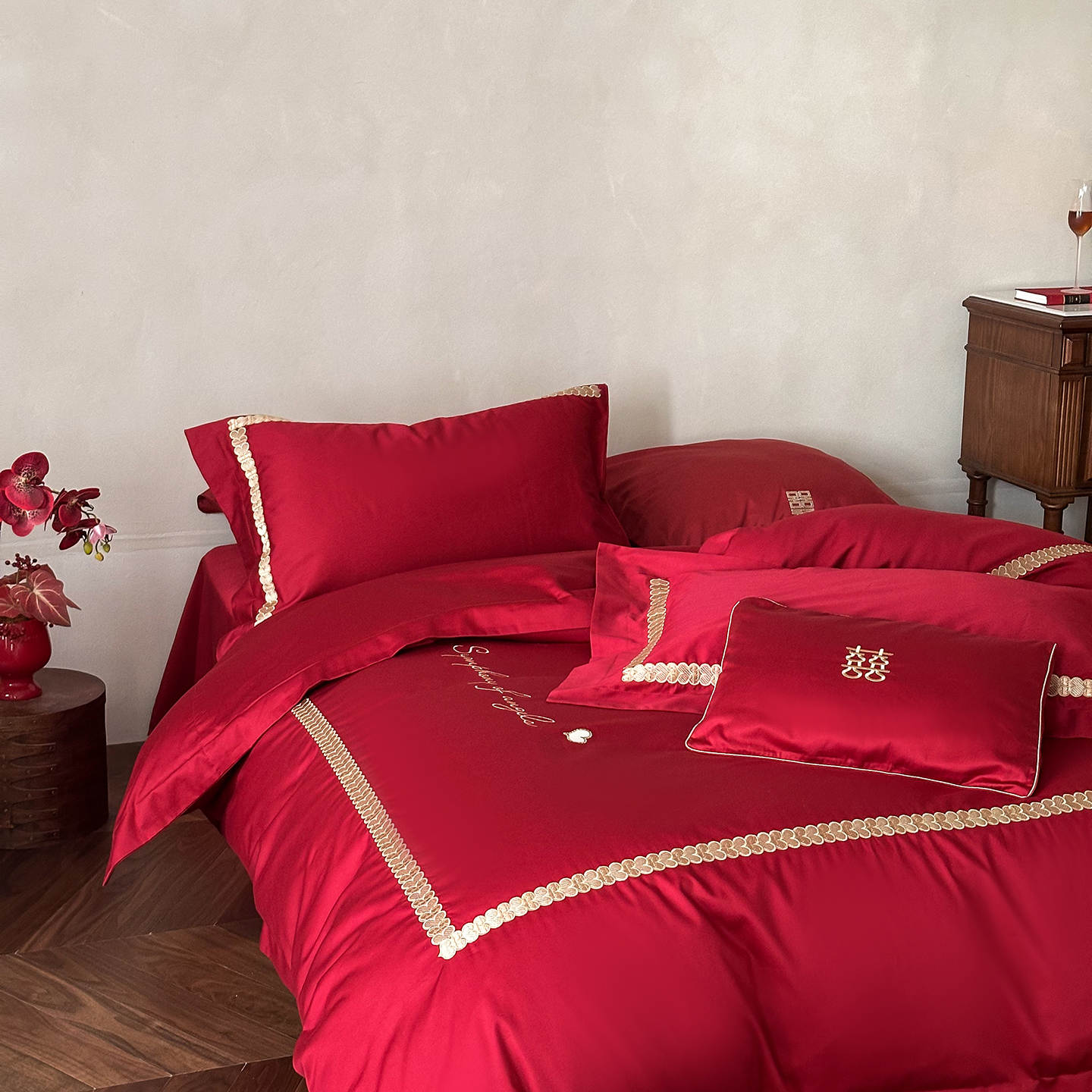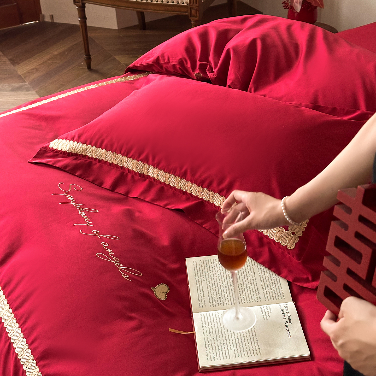 (总)西西家居 2025新款100支长绒棉大红婚庆四件套-一见钟情