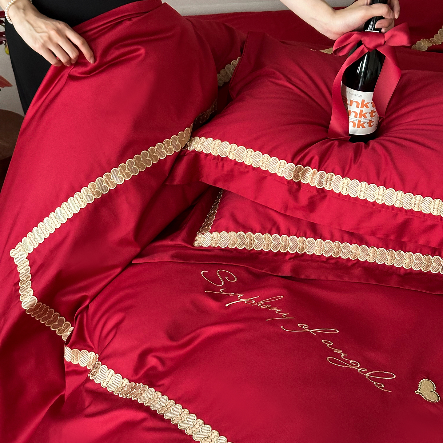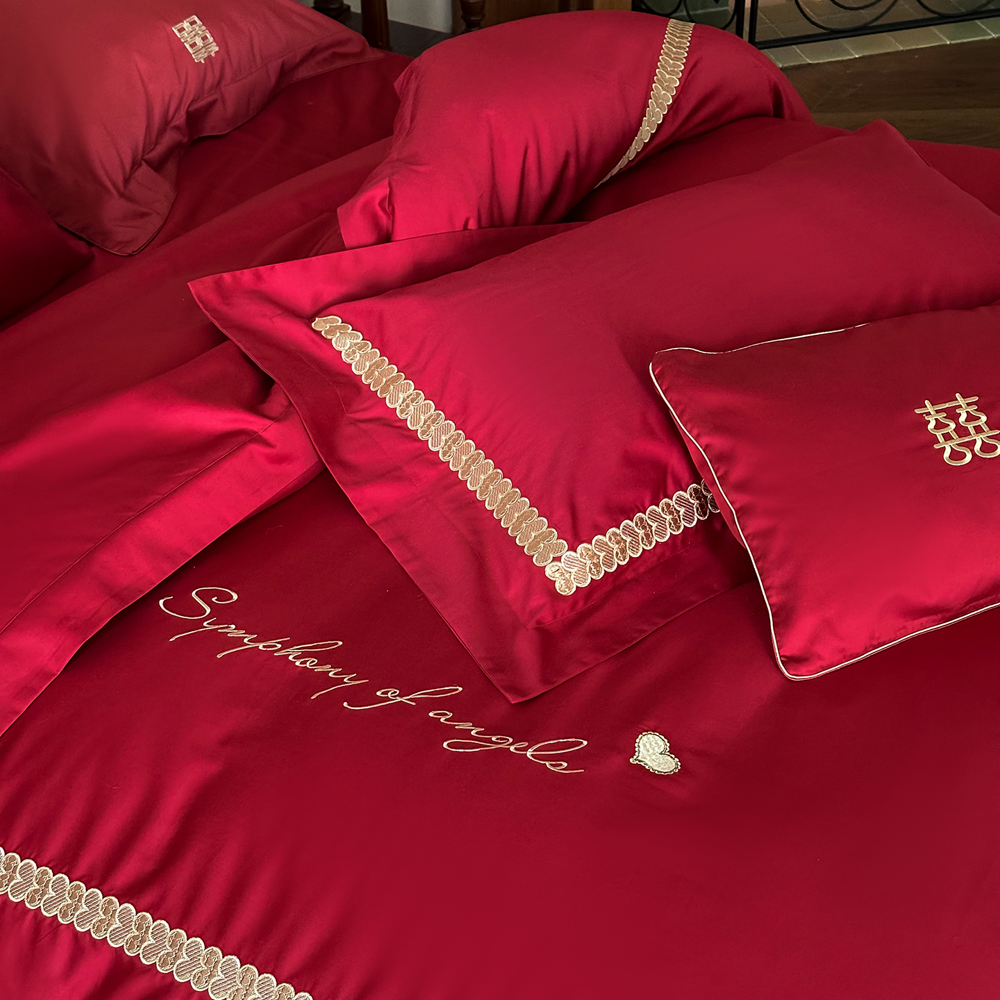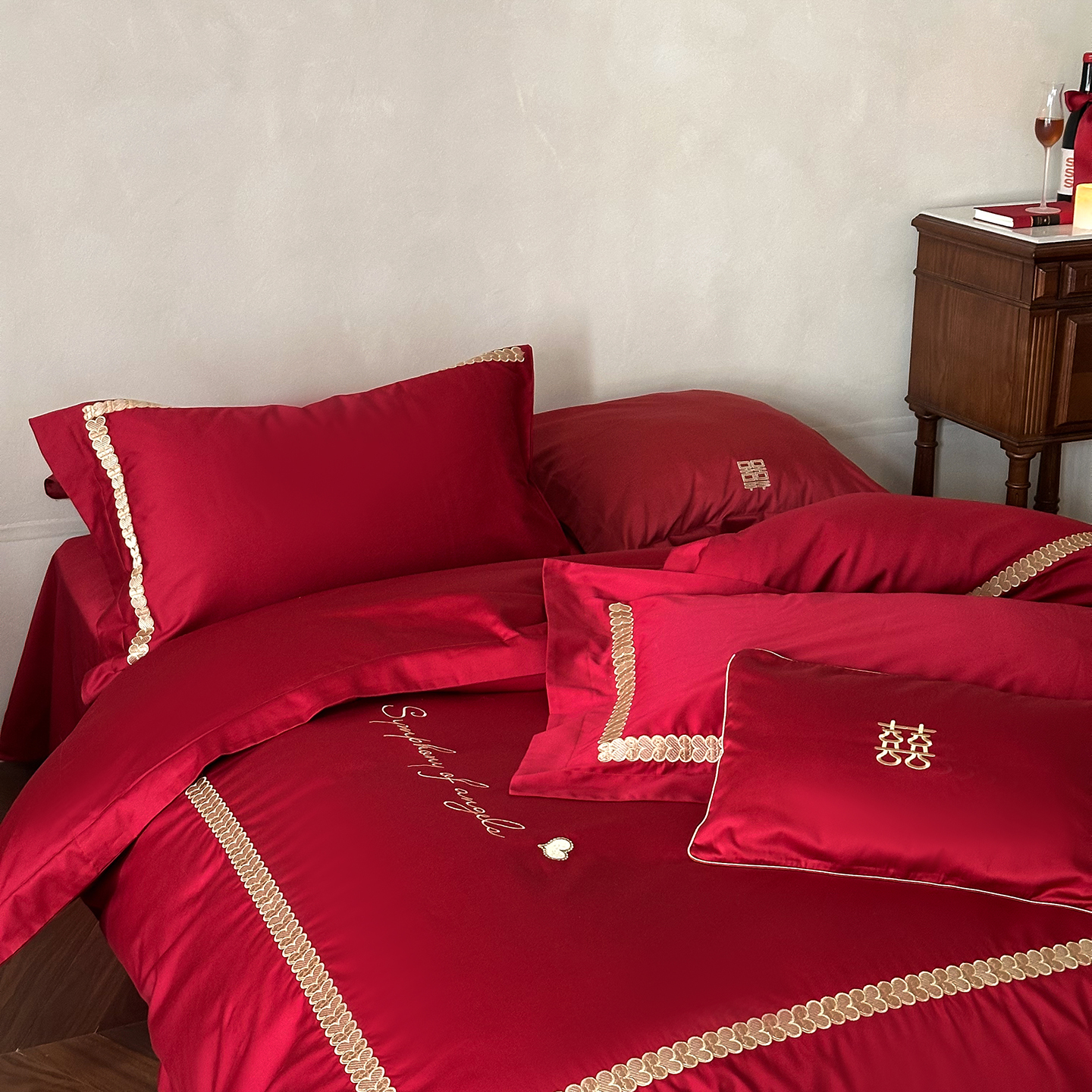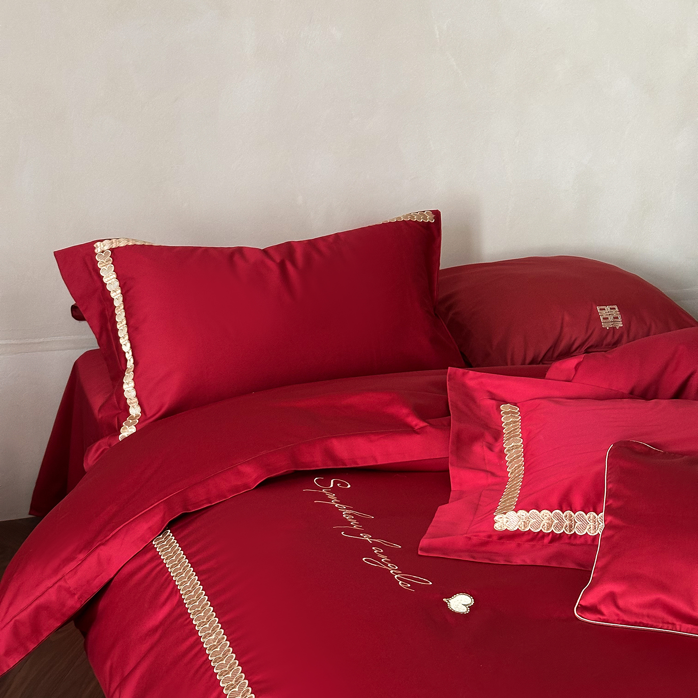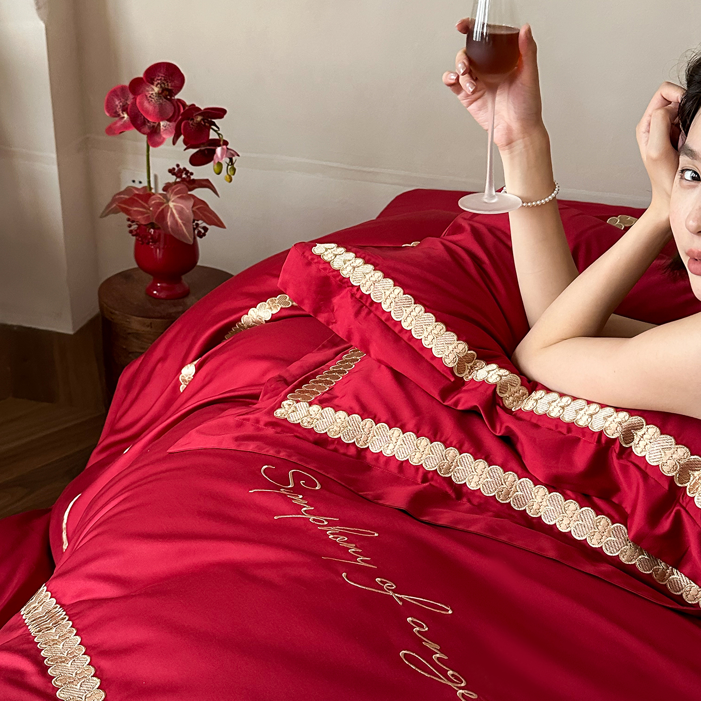 (总)西西家居 2025新款100支长绒棉大红婚庆四件套-一见钟情