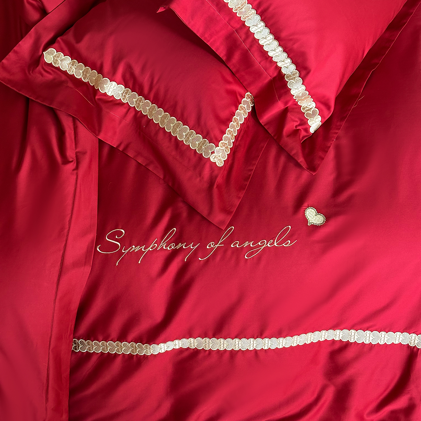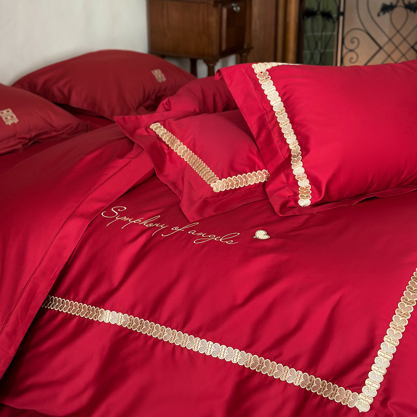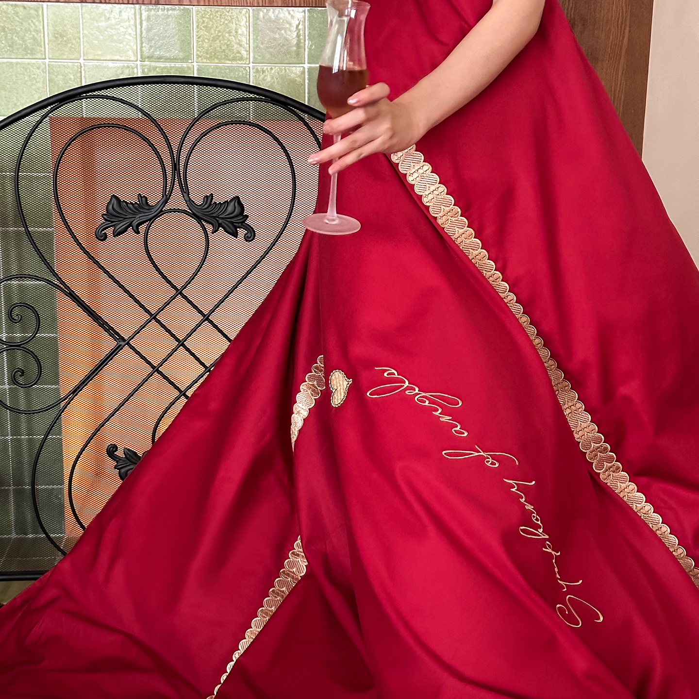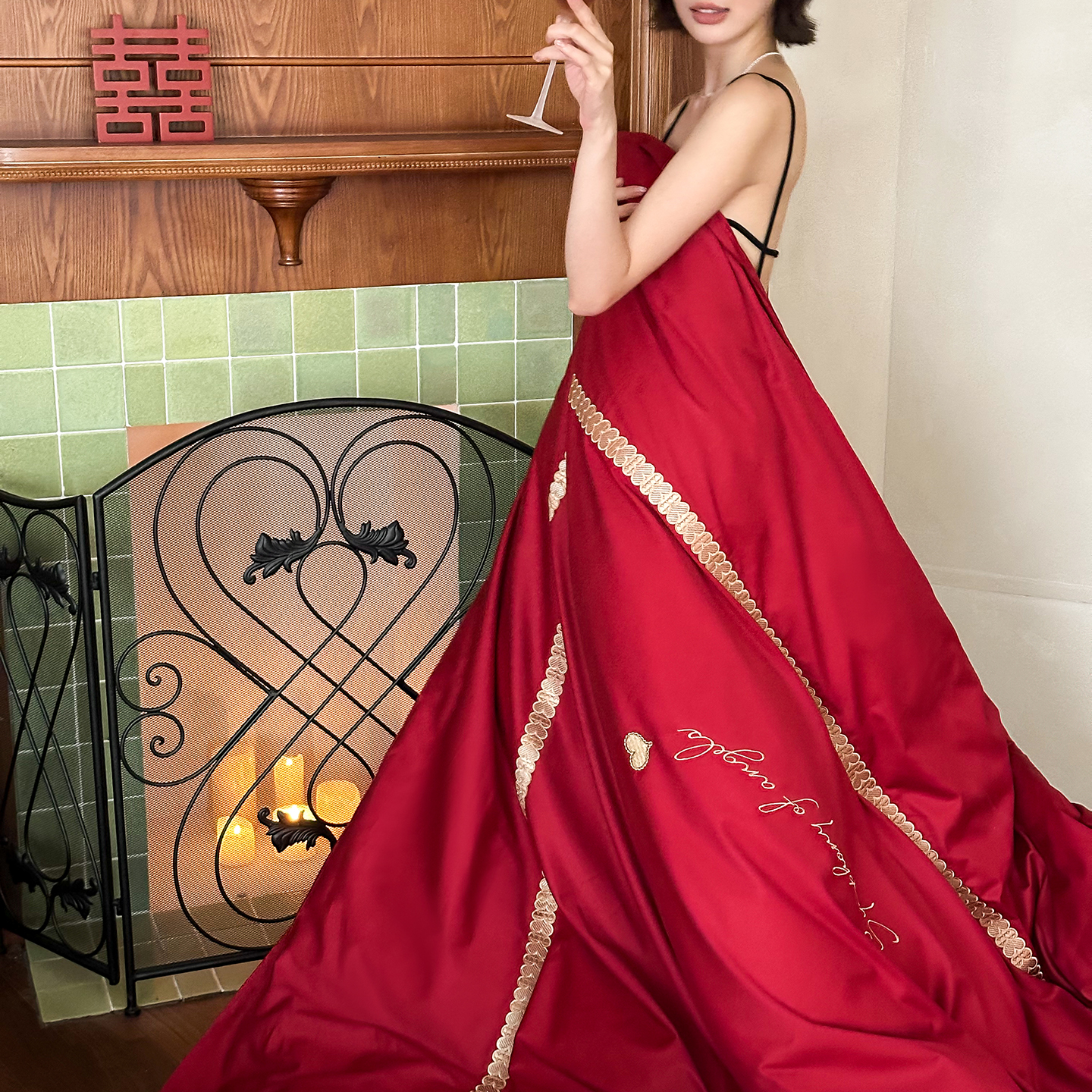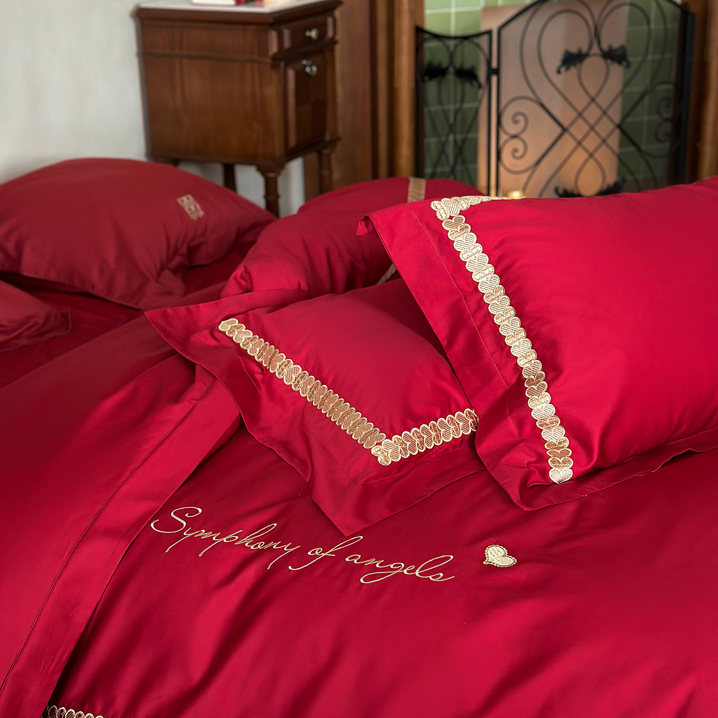 (总)西西家居 2025新款100支长绒棉大红婚庆四件套-一见钟情