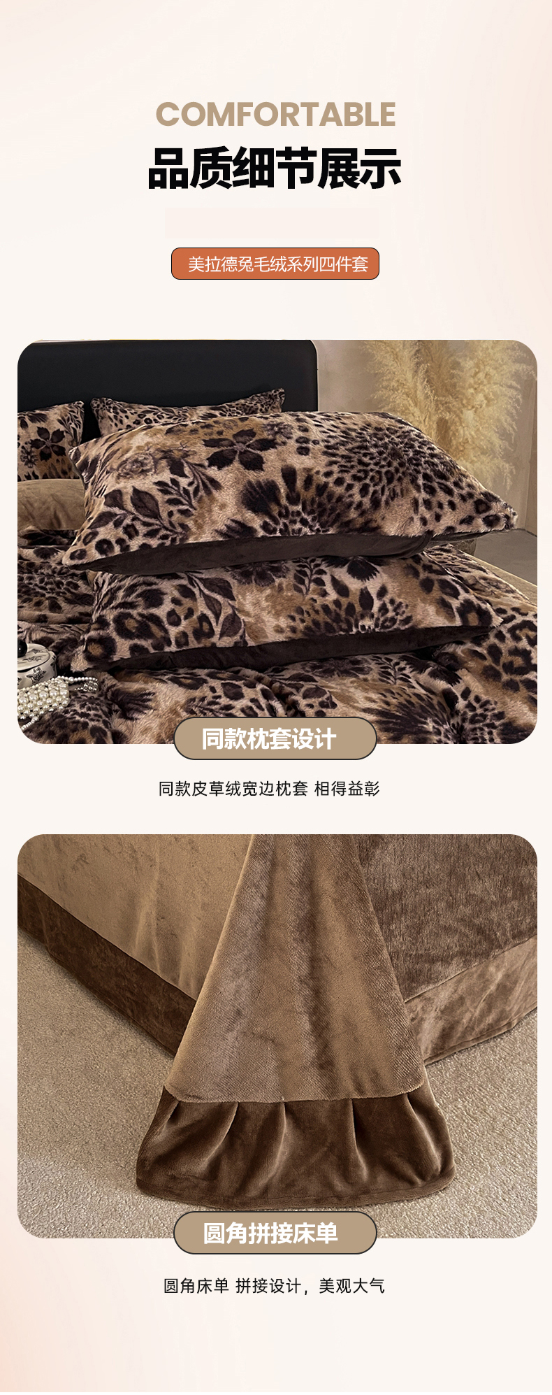 商品名称:铠畅家纺 2025新款美拉德风格兔毛绒床单四件套 美拉德-奢靡咖