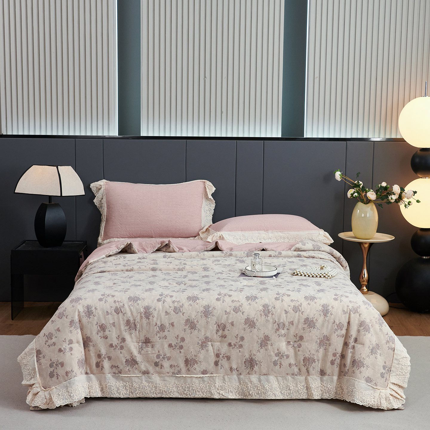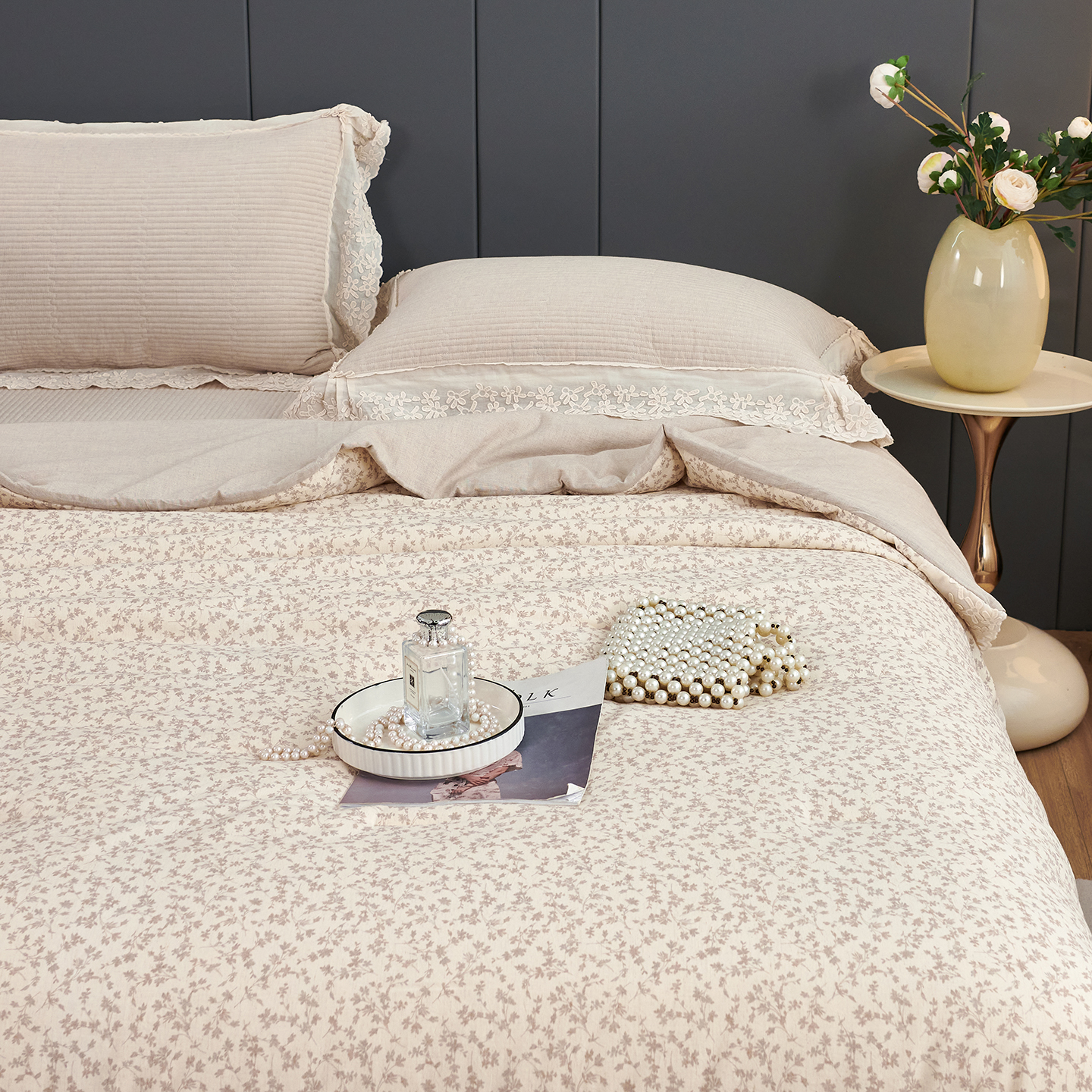 (总)优希家纺 2025新款安雅夏被床盖四件套,粉色,黄色,灰色,卡其