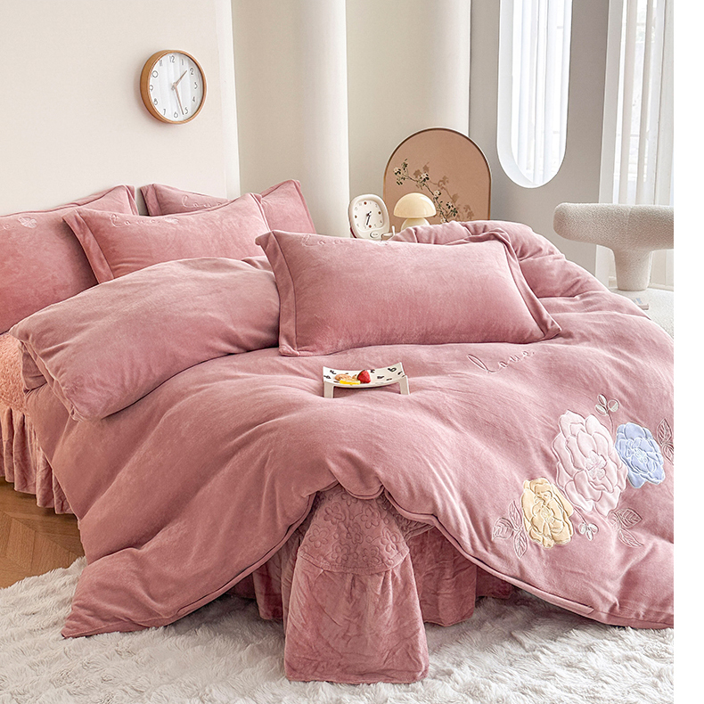 (总)美伦美焕 2025新款獭獭绒贴布绣床盖款四件套,薄荷绿,豆沙,高级灰,雾霾蓝,香芋紫