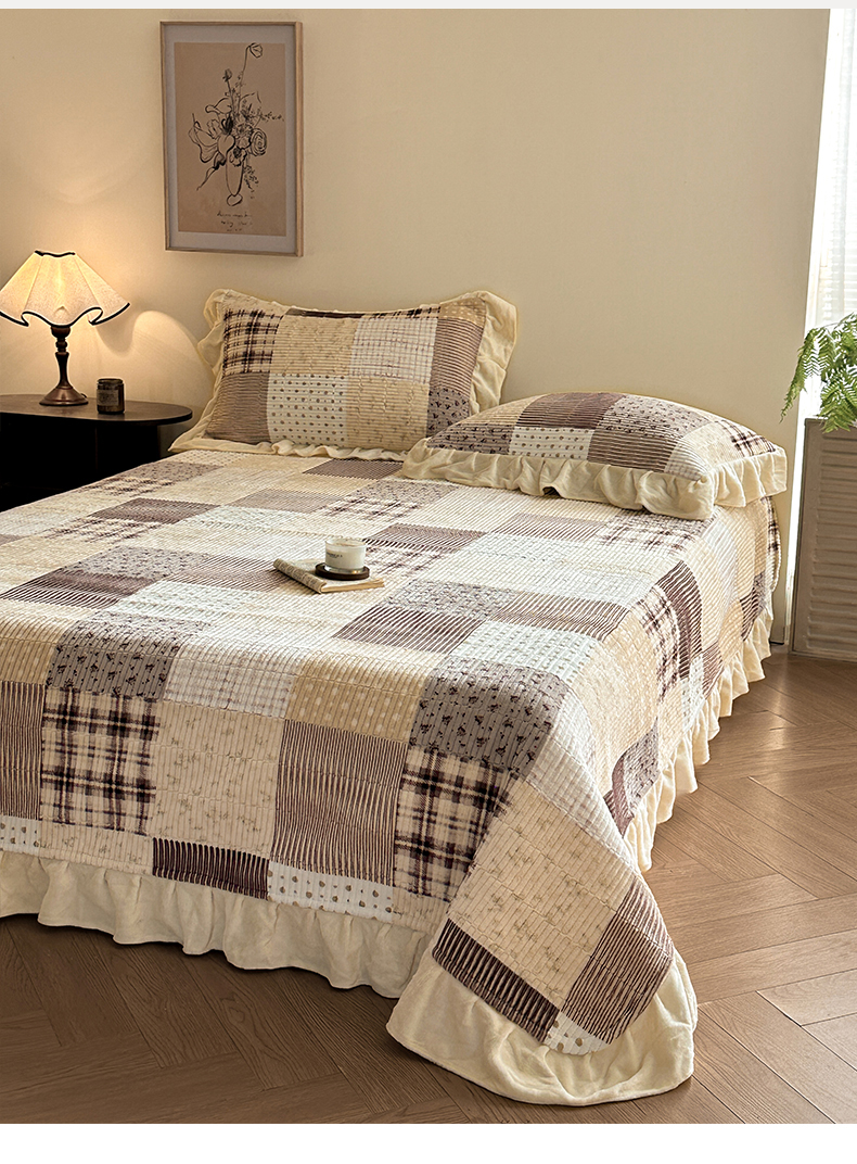 桃心家居 2025新款韩版花边法式花卉碎花加厚牛奶绒多功能床盖单件单床盖床盖三件套单品 绒床盖-花边松石紫