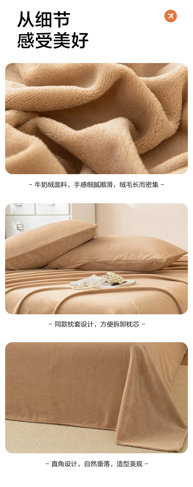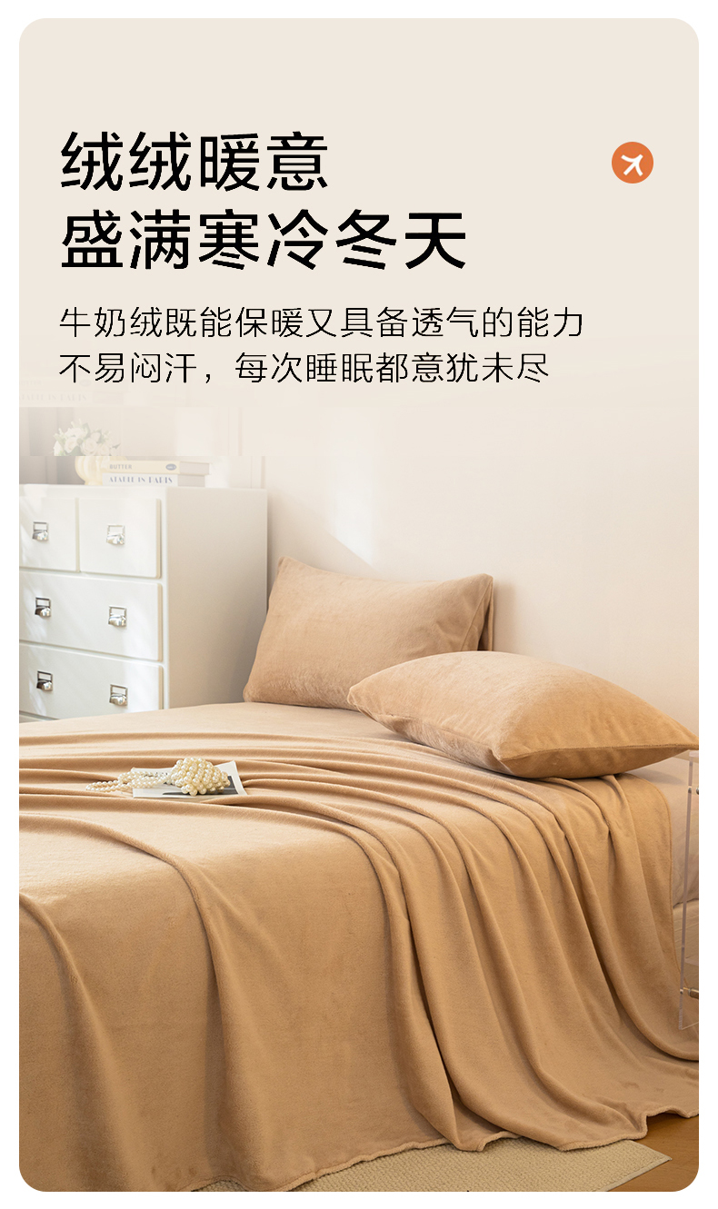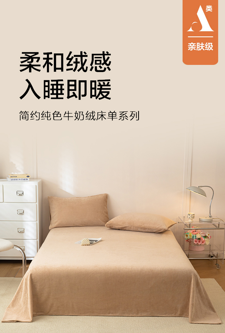 • 91家纺网 家纺一手货源 找家纺 眠博士 2025新款简约牛奶绒纯色单床单-场景二 牛奶绒纯色床单-暖咖