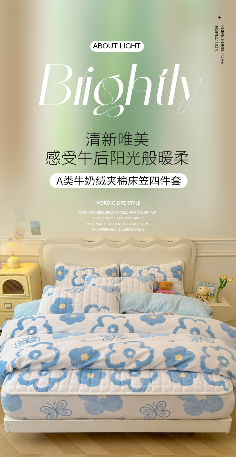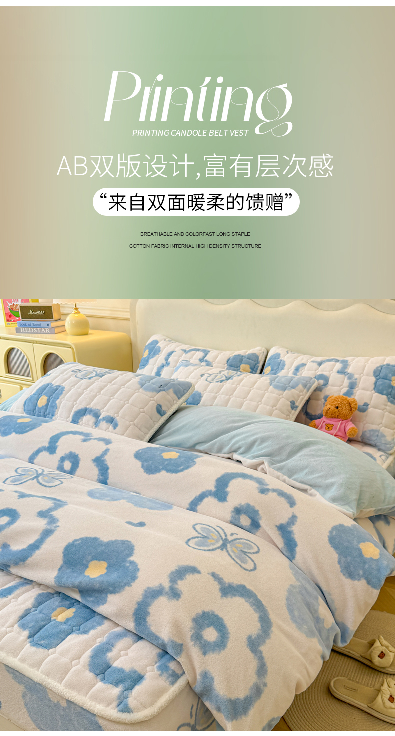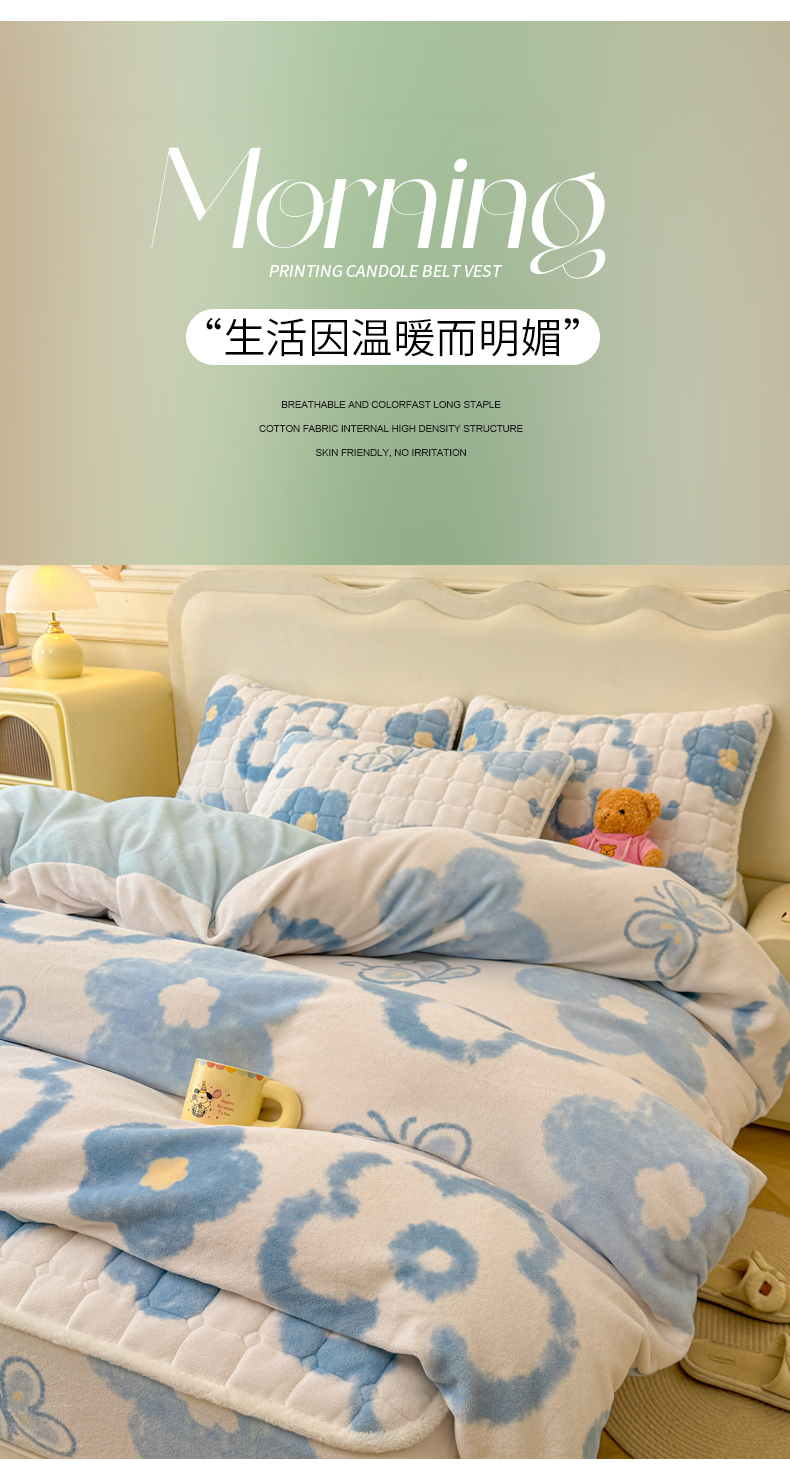 商品名称:LIFE.丽芙 2025秋冬新款A类牛奶绒加厚夹棉床笠+被套组合四件套 花恋