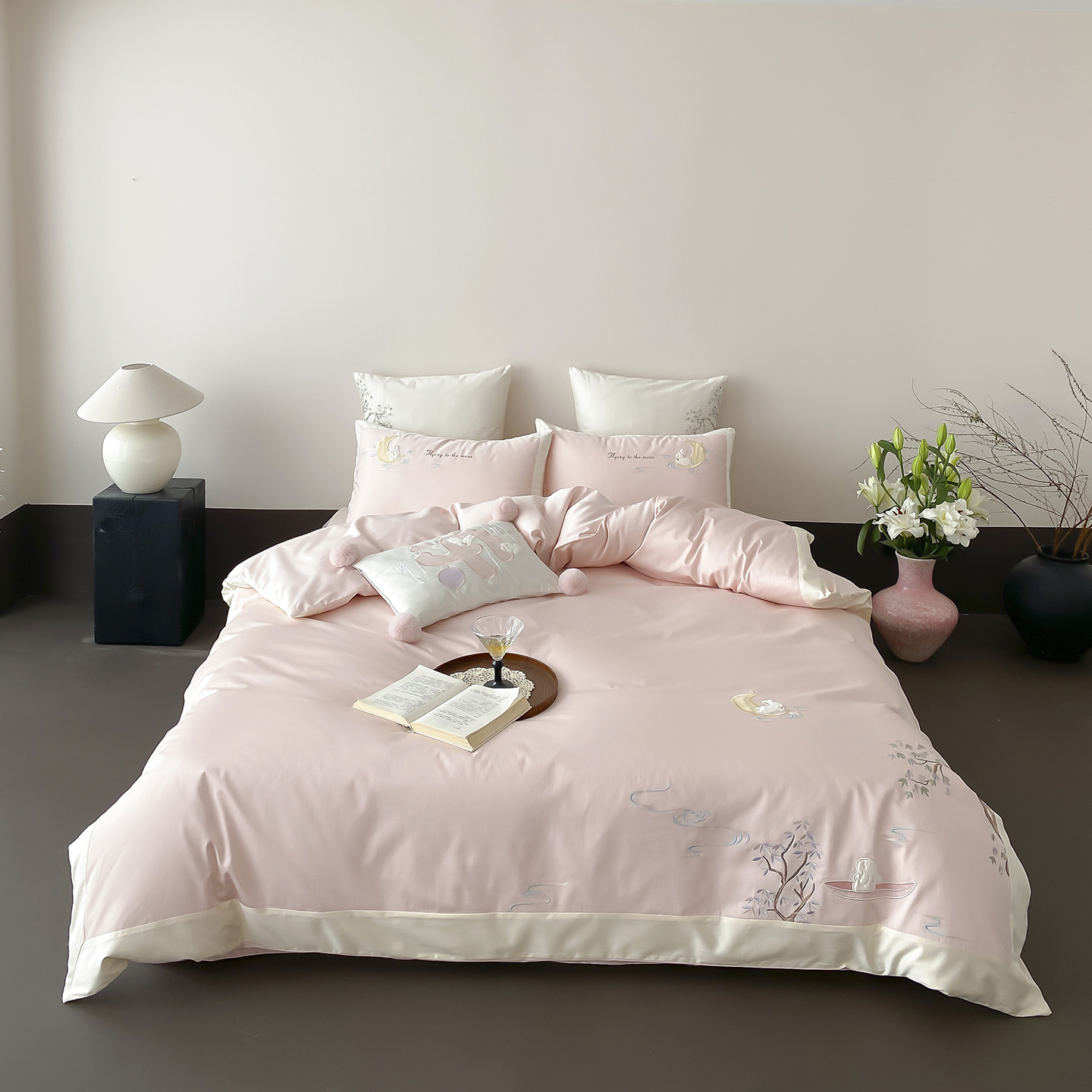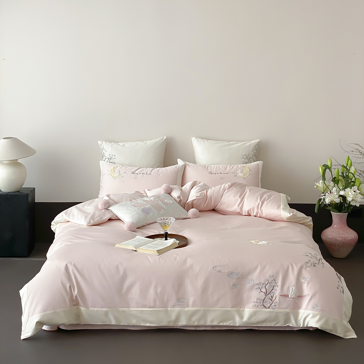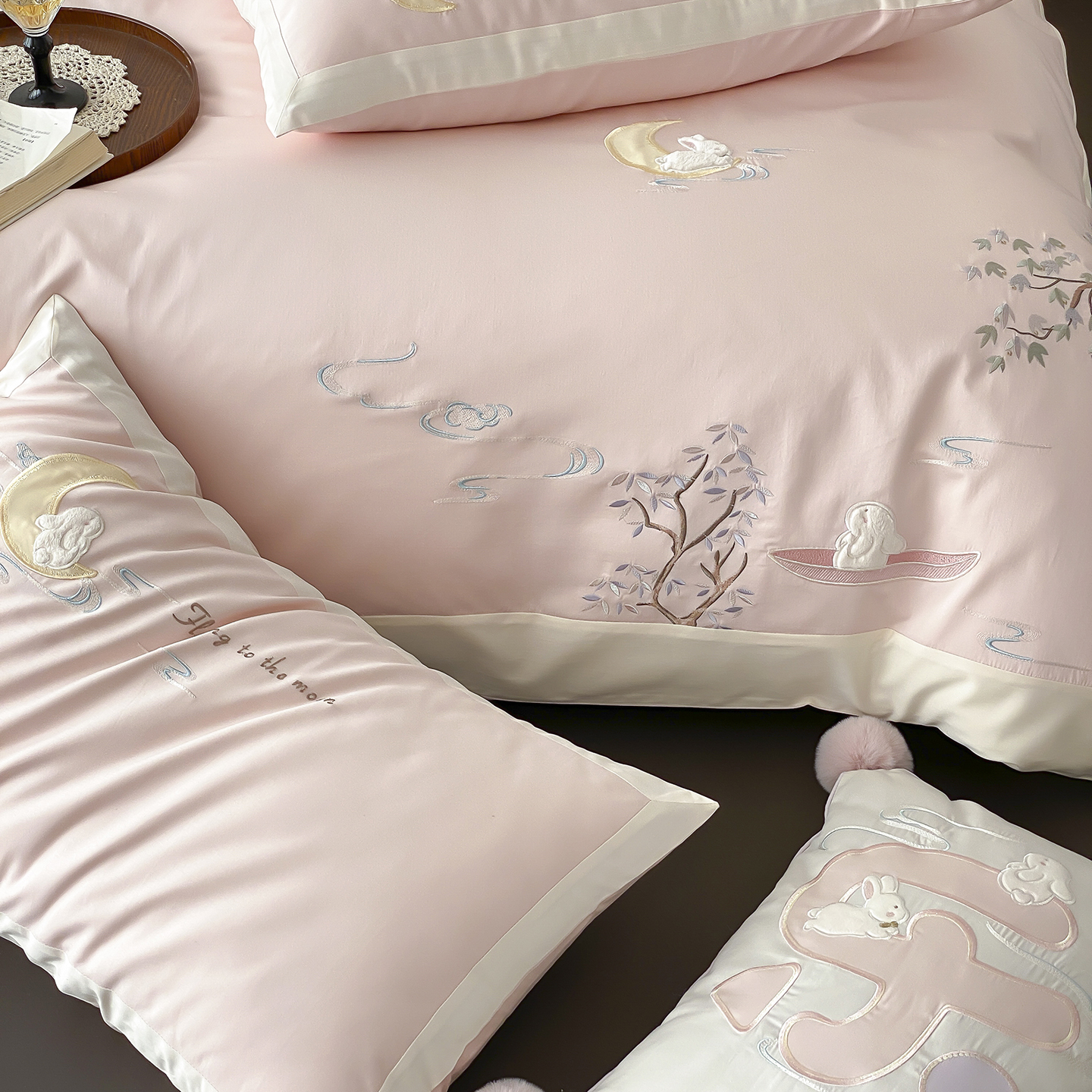 商品名称:MIU缪家居 2025新款100支全棉亲肤四件套-喜乐兔 喜乐兔-粉