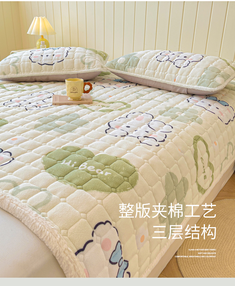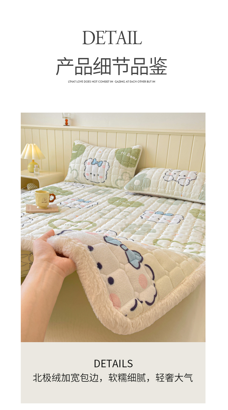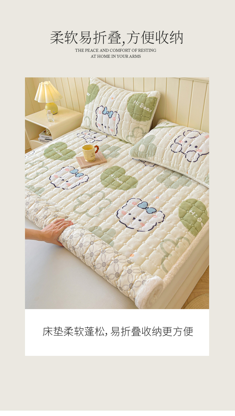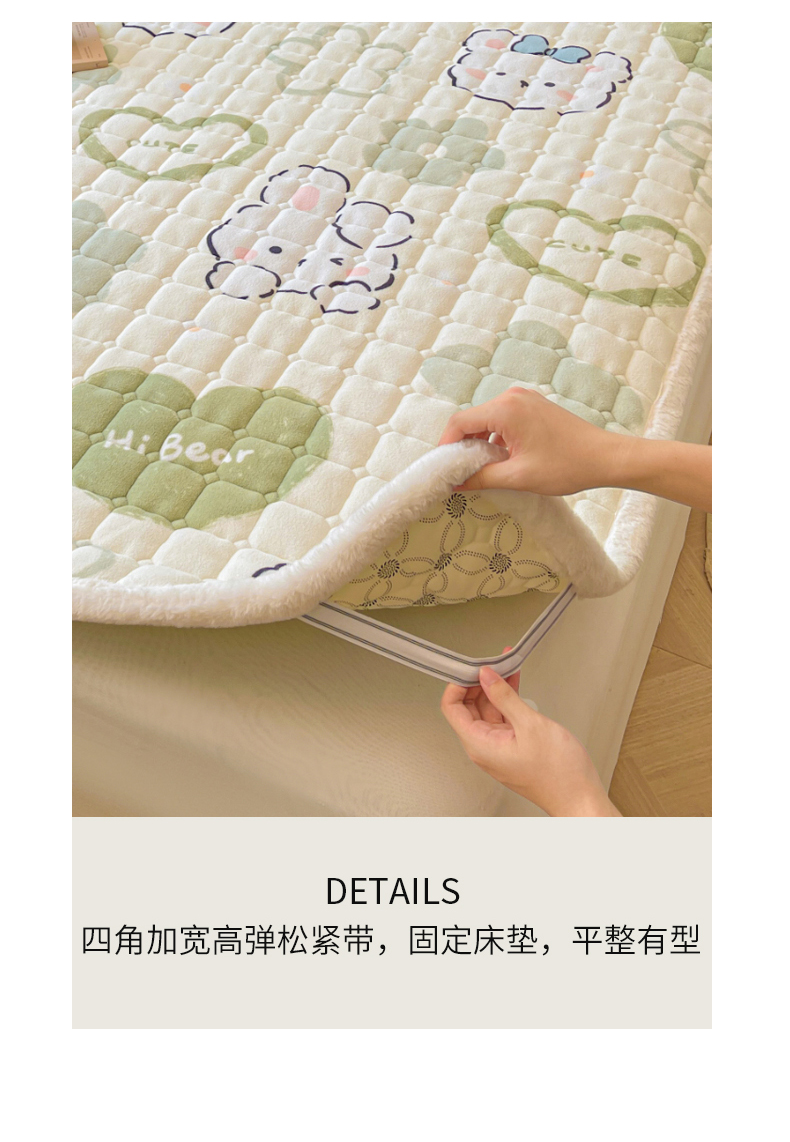 • 91家纺网 家纺一手货源 找家纺 LIFE.丽芙 2025秋冬新款牛奶绒加厚夹棉床垫床护垫单件印花卡通小清新床褥床垫子三件套 爱心小宠-绿