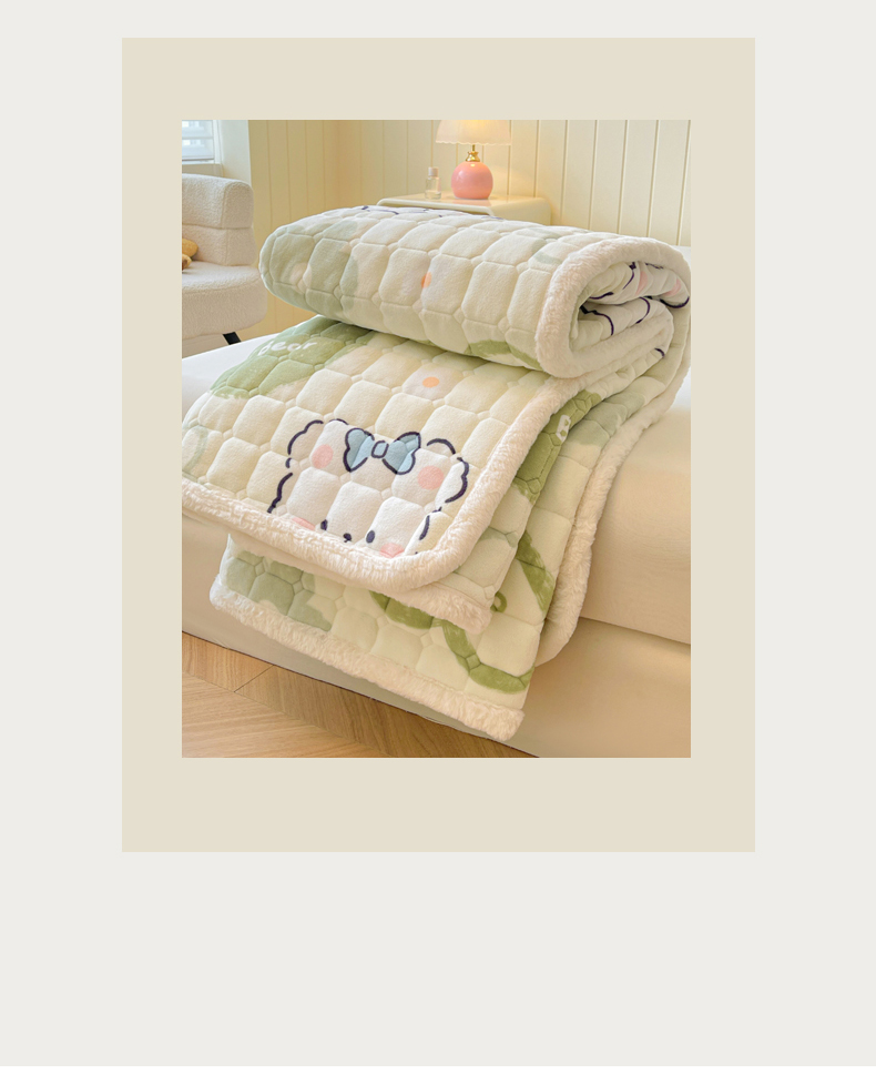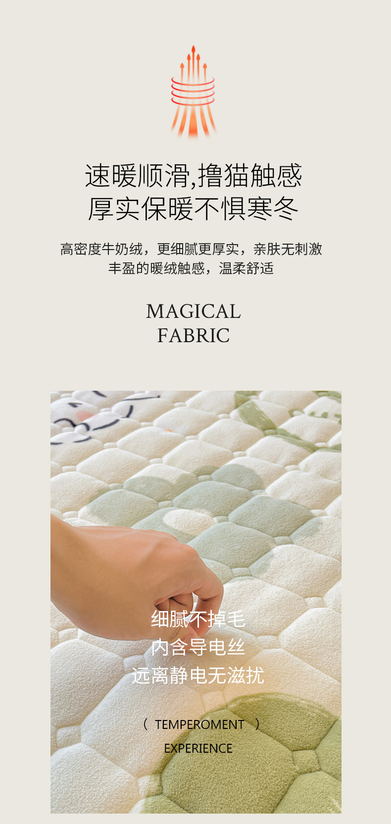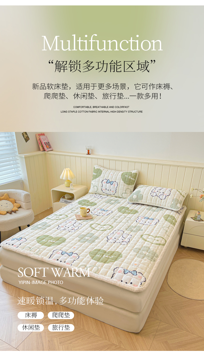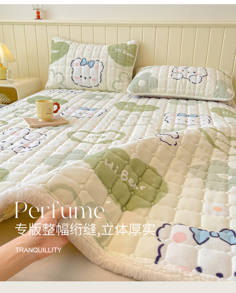 • 91家纺网 家纺一手货源 找家纺 LIFE.丽芙 2025秋冬新款牛奶绒加厚夹棉床垫床护垫单件印花卡通小清新床褥床垫子三件套 爱心小宠-绿