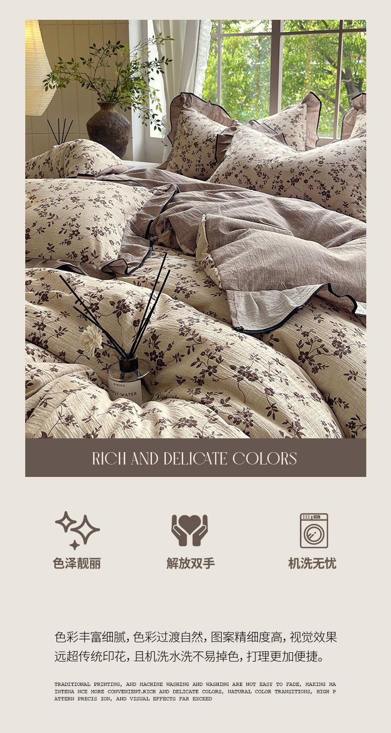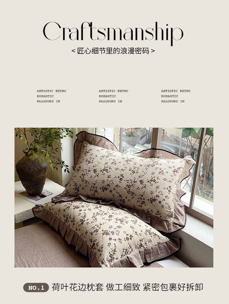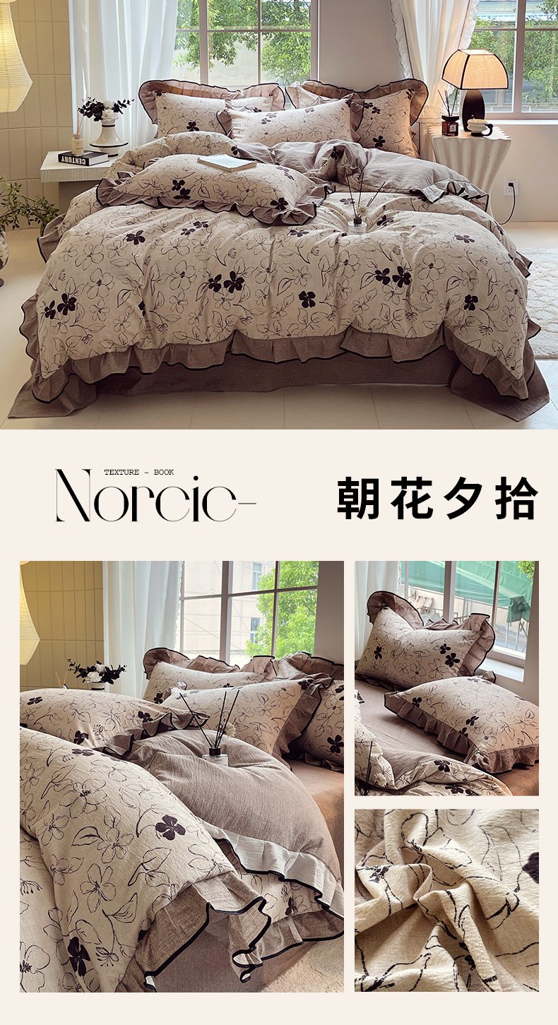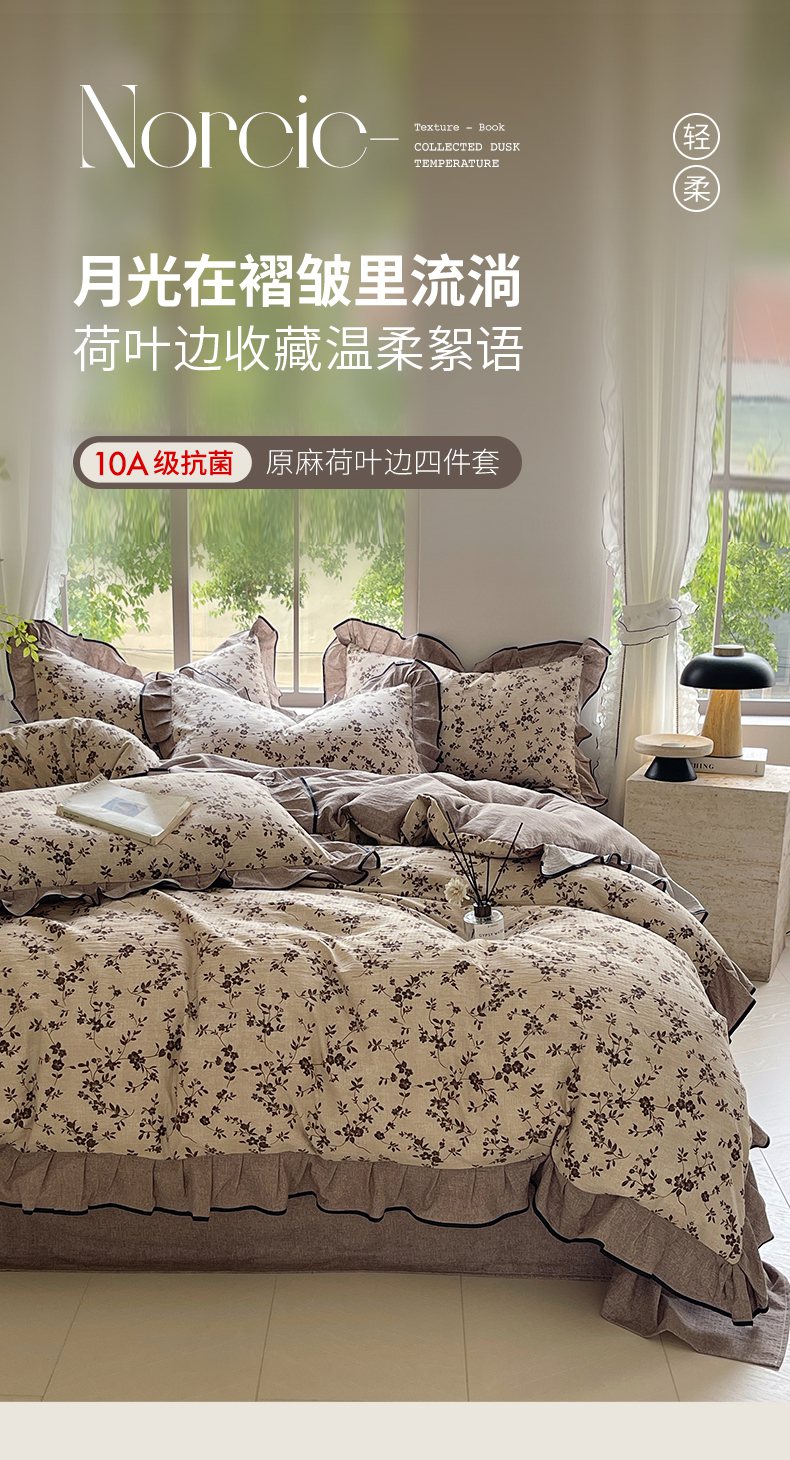 商品名称:梵克保罗 2025秋冬新品10A抗菌原麻荷叶边床单款三件套四件套 花枝漫天