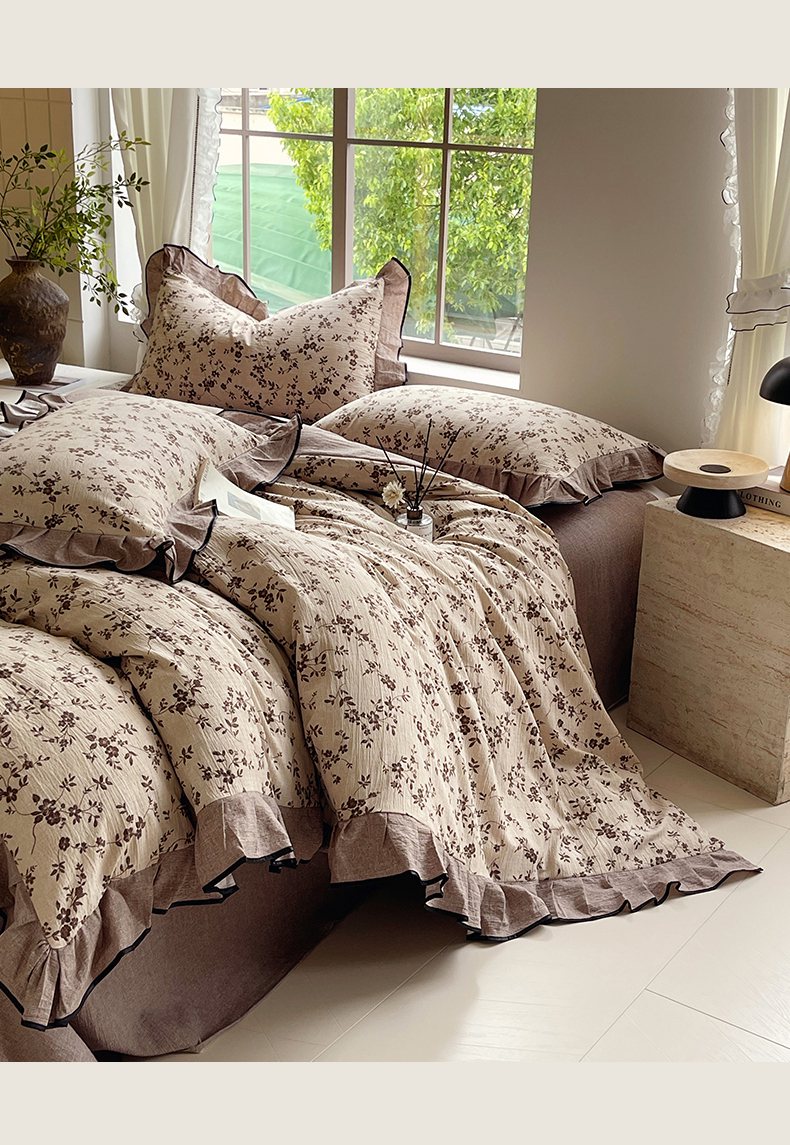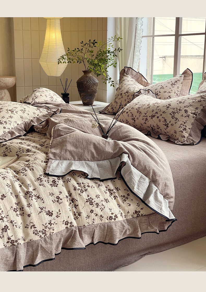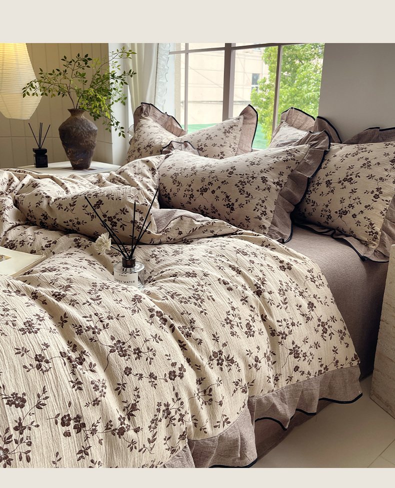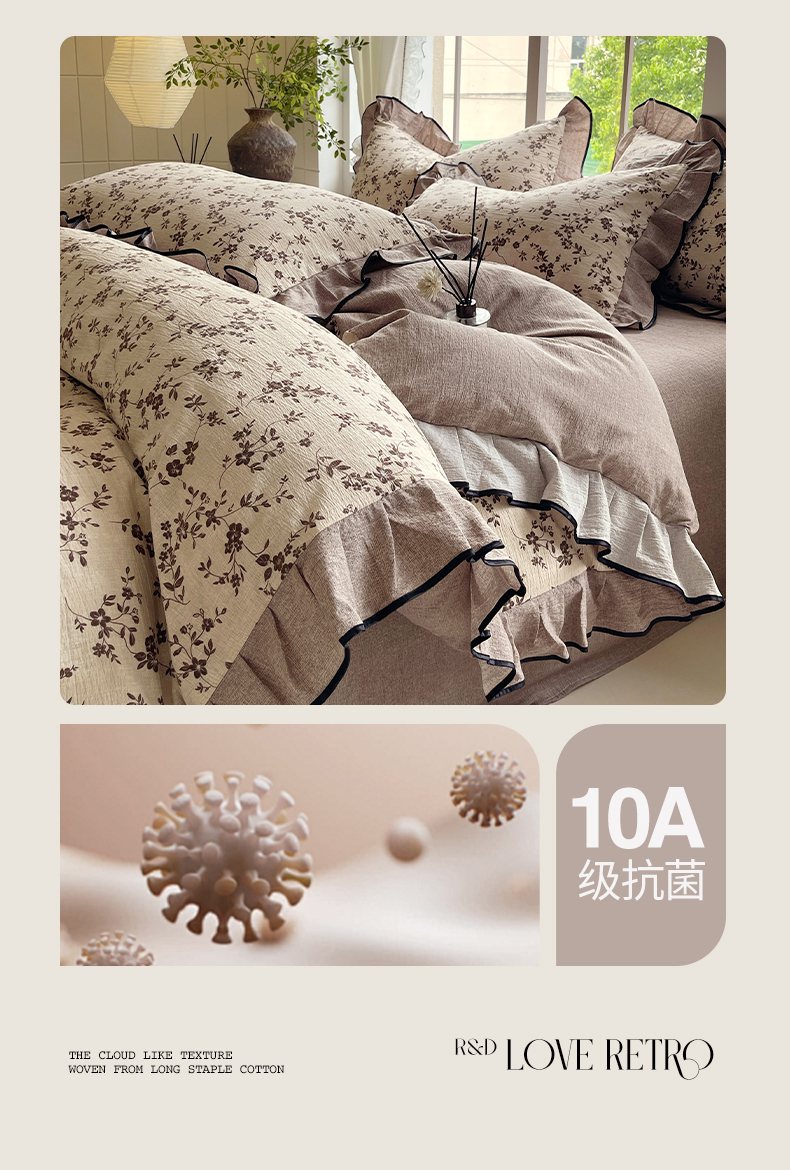 梵克保罗 2025秋冬新品10A抗菌原麻荷叶边床单款三件套四件套 花枝漫天
