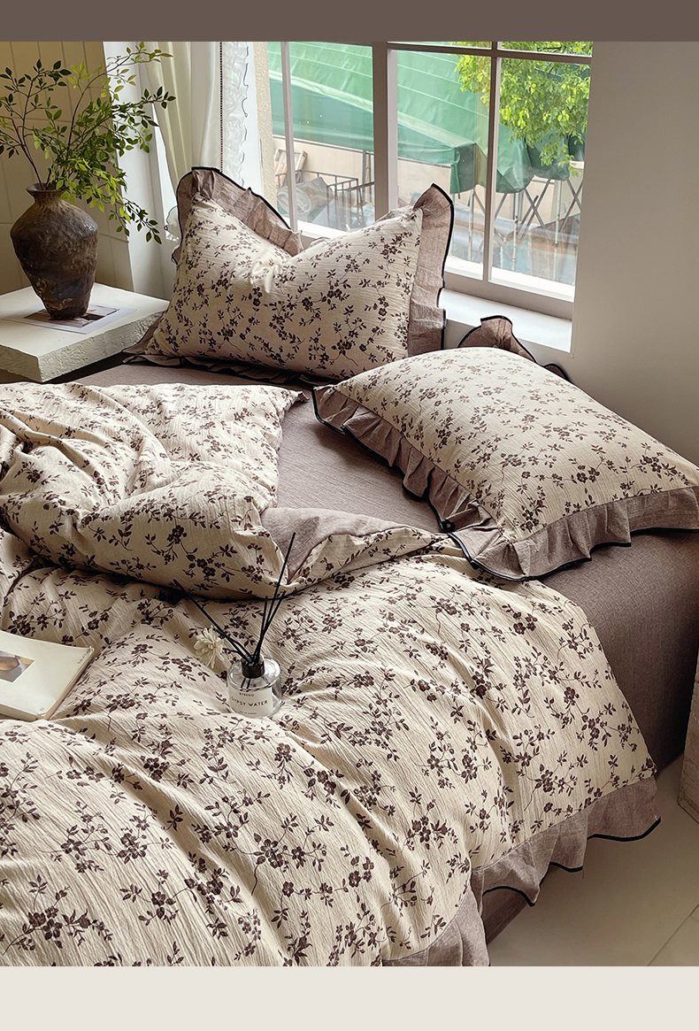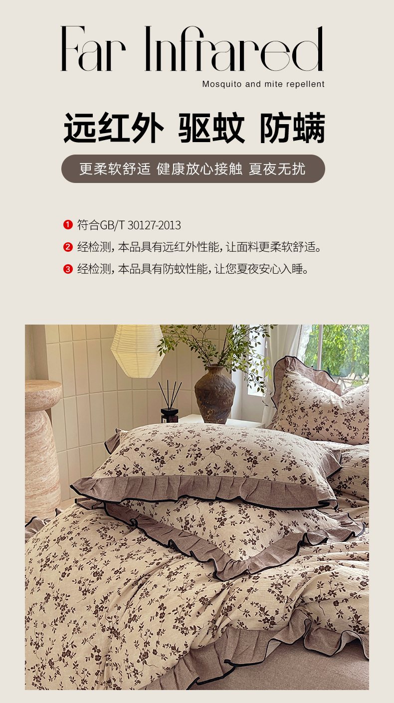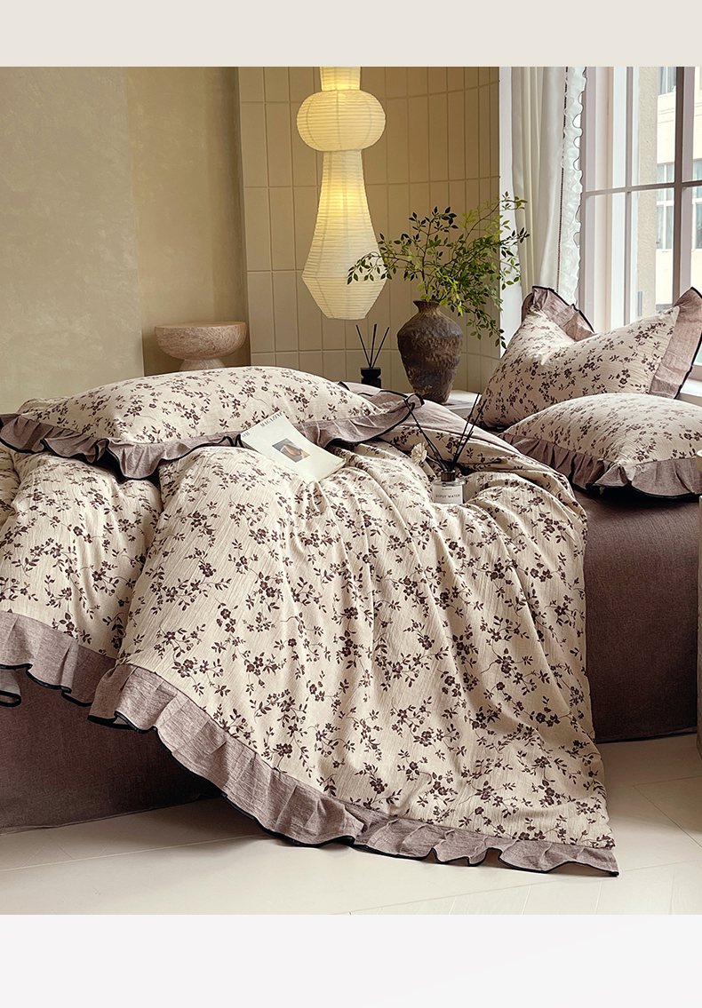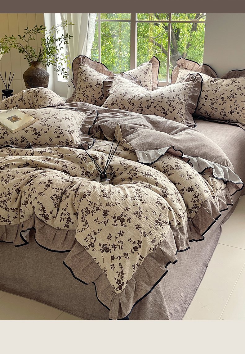 梵克保罗 2025秋冬新品10A抗菌原麻荷叶边床单款三件套四件套 花枝漫天