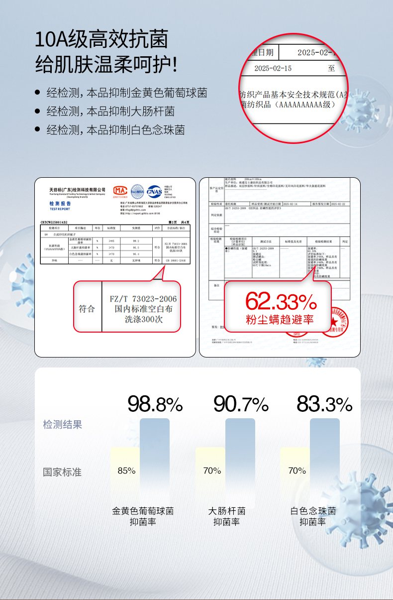 2、通州区市场监督局提醒各电商,近期涉及抗菌防螨、防静电的投诉高发,为了不影响商品正常销售,请对无检验报告支持的页面广告进行整改,谢谢!