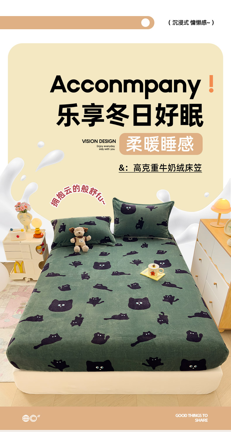 (总)久云居 2025新款高克重牛奶绒床笠,绵阳牧场,波点黑猫,大象乐园,卡多啦,萌犬派对,墨绿喵星,小熊星梦,雅致田园