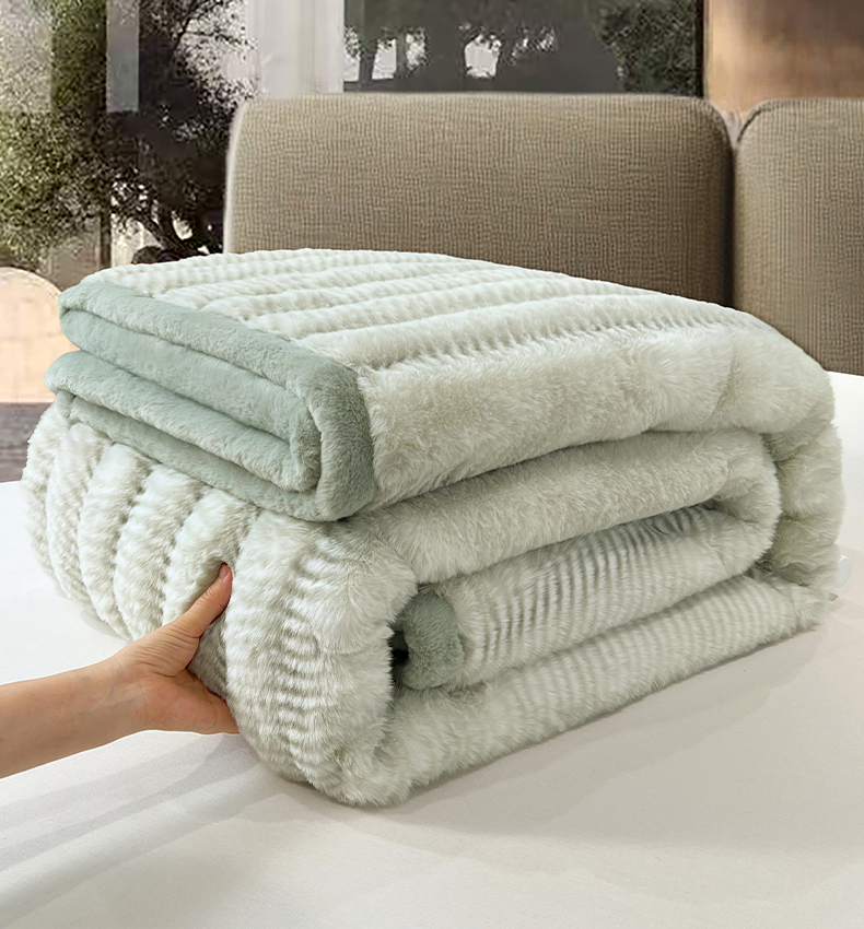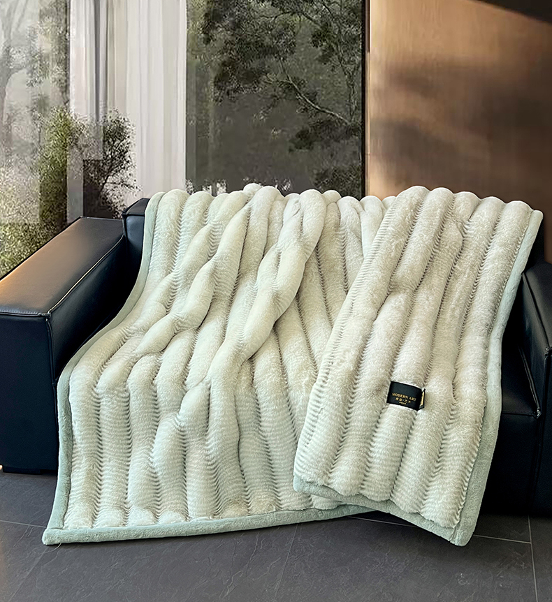 商品名称:凯轩毛毯网销专供 2025新款婚庆仿皮草彩波纹艺术毯毛毯毯子-彩波纹 彩波纹-浅绿