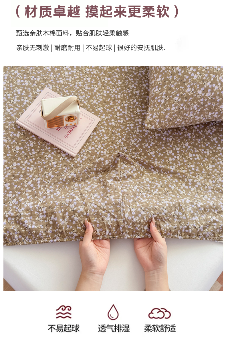 • 91家纺网 家纺一手货源 找家纺 爱彼家纺 2025新款水洗水洗棉印花床笠单品床笠床笠三件套风格一 花底碎星