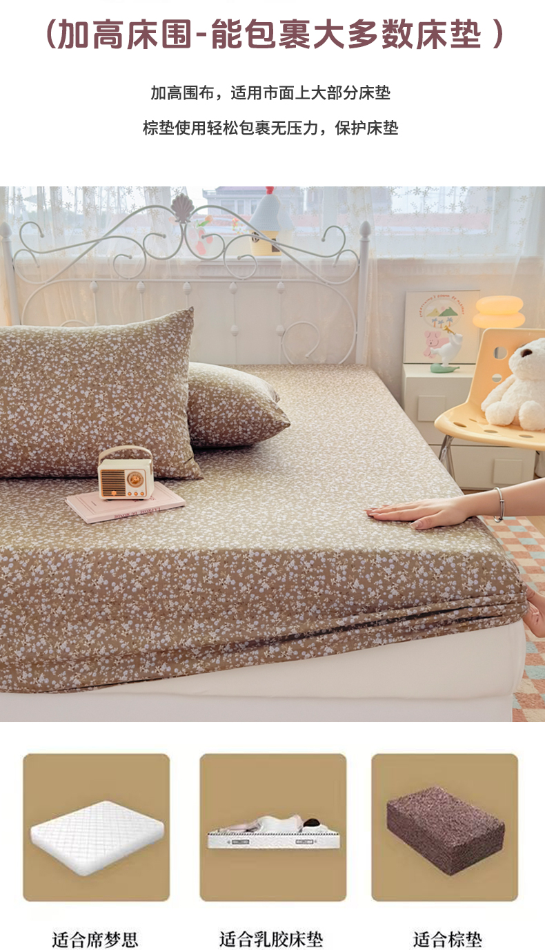 当前位置: 91家纺网 > 商品网购 > 床上用品 > 床笠 > 爱彼家纺 2025新款水洗水洗棉印花床笠单品床笠床笠三件套风格一 花底碎星