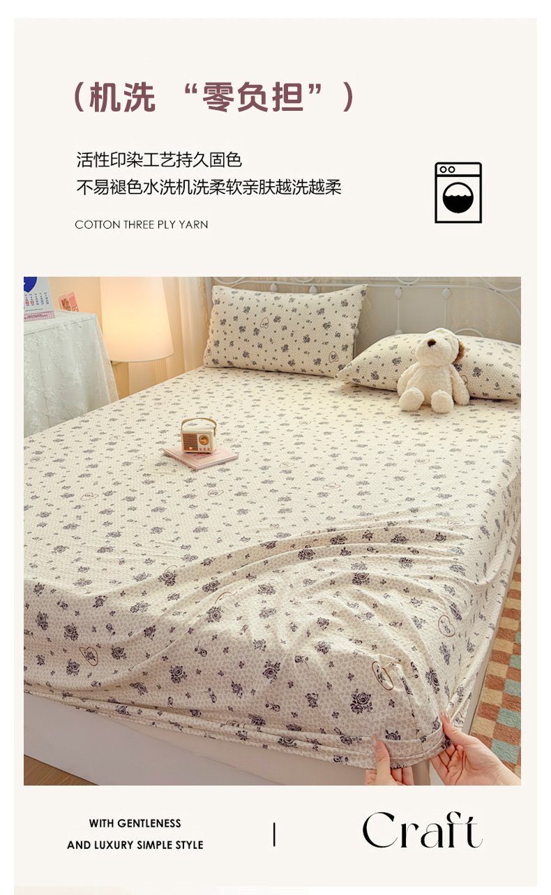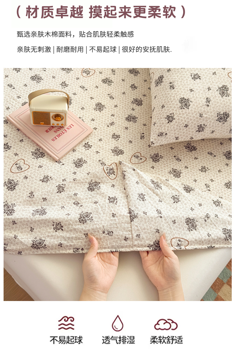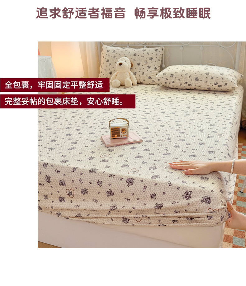 爱彼家纺 2025新款水洗水洗棉印花床笠单品床笠床笠三件套风格二 玫瑰絮