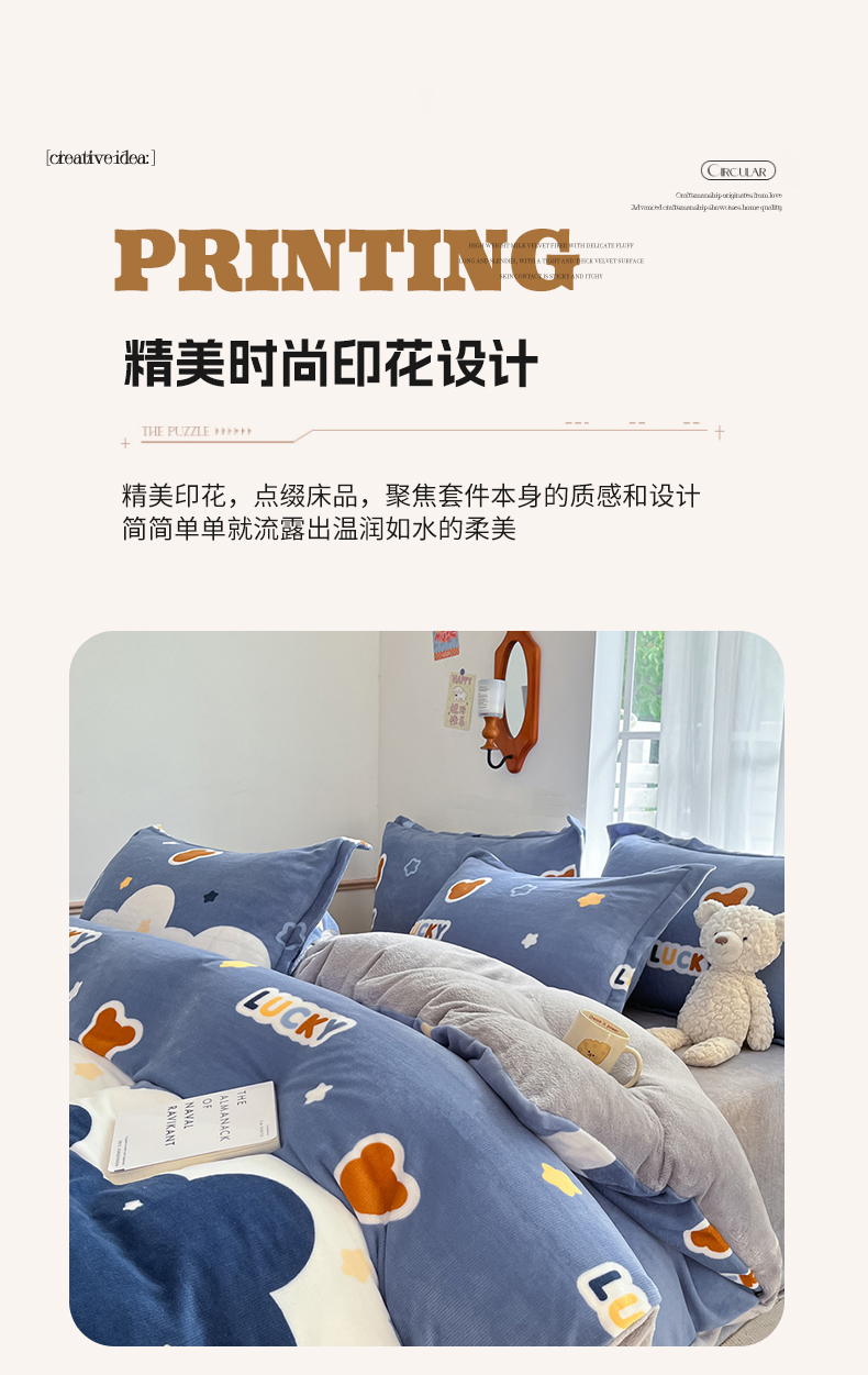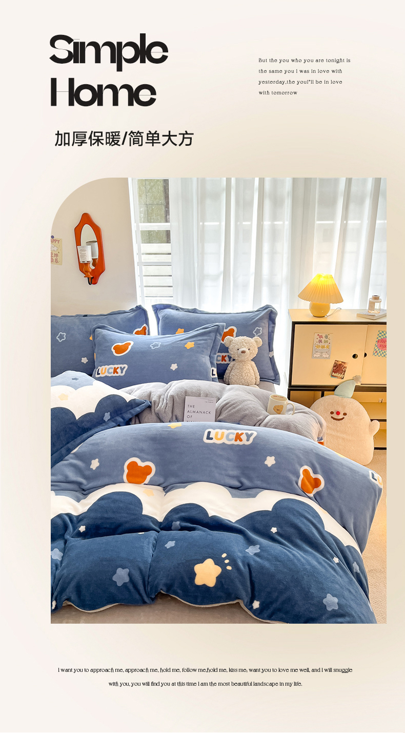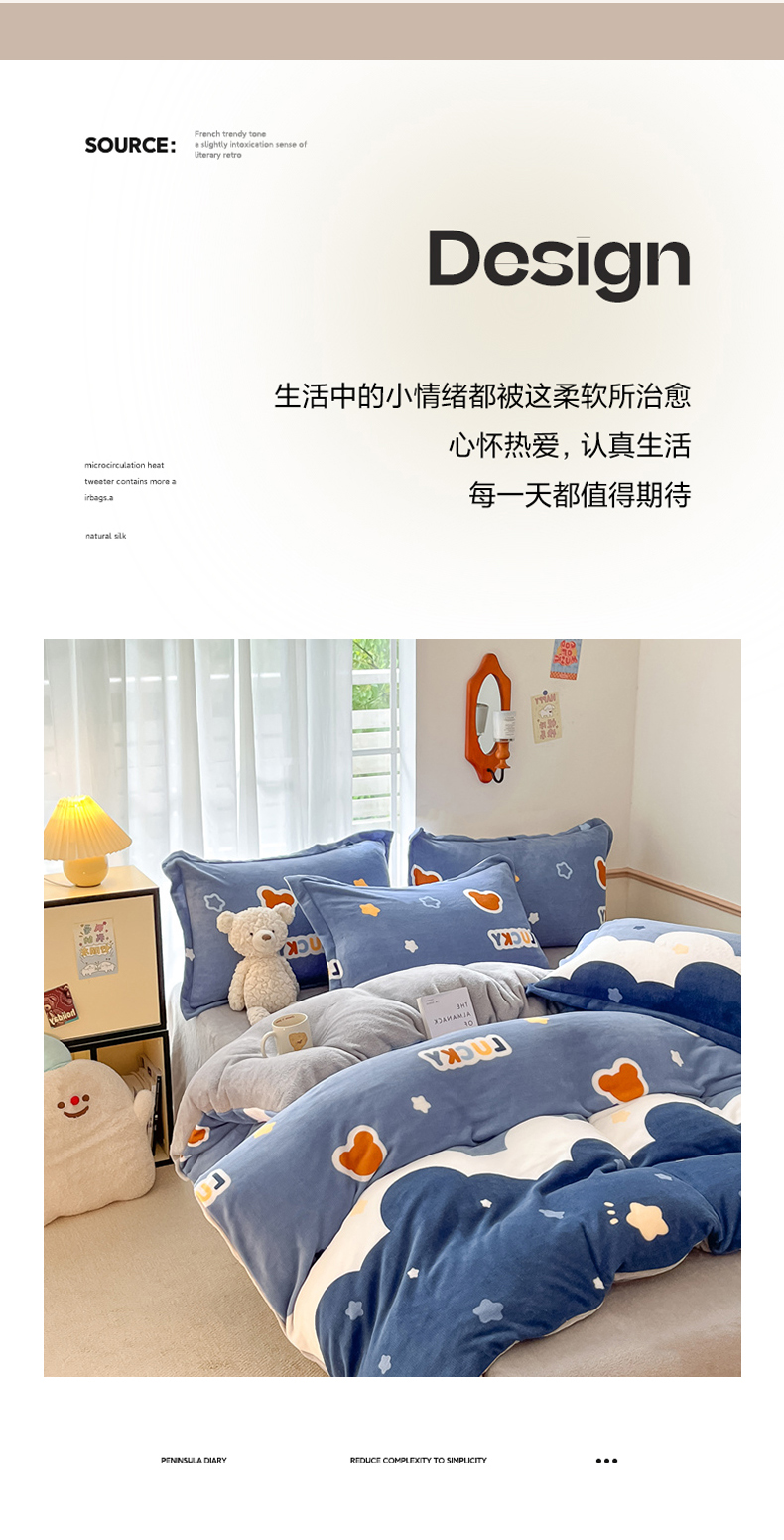 当前位置: 91家纺网 > 商品网购 > 床品套件 > 四件套 > 牛奶绒四件套 > 寻米 2025新款高克重加厚保暖牛奶绒四件套-第二批 小熊梦境