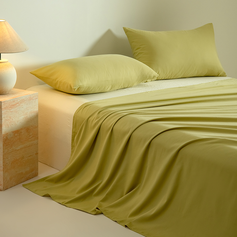 商品名称:Mr.pig猪先生水洗棉 2025新款A类50支双股全棉纯棉贡缎磨毛单床单 莫兰绿