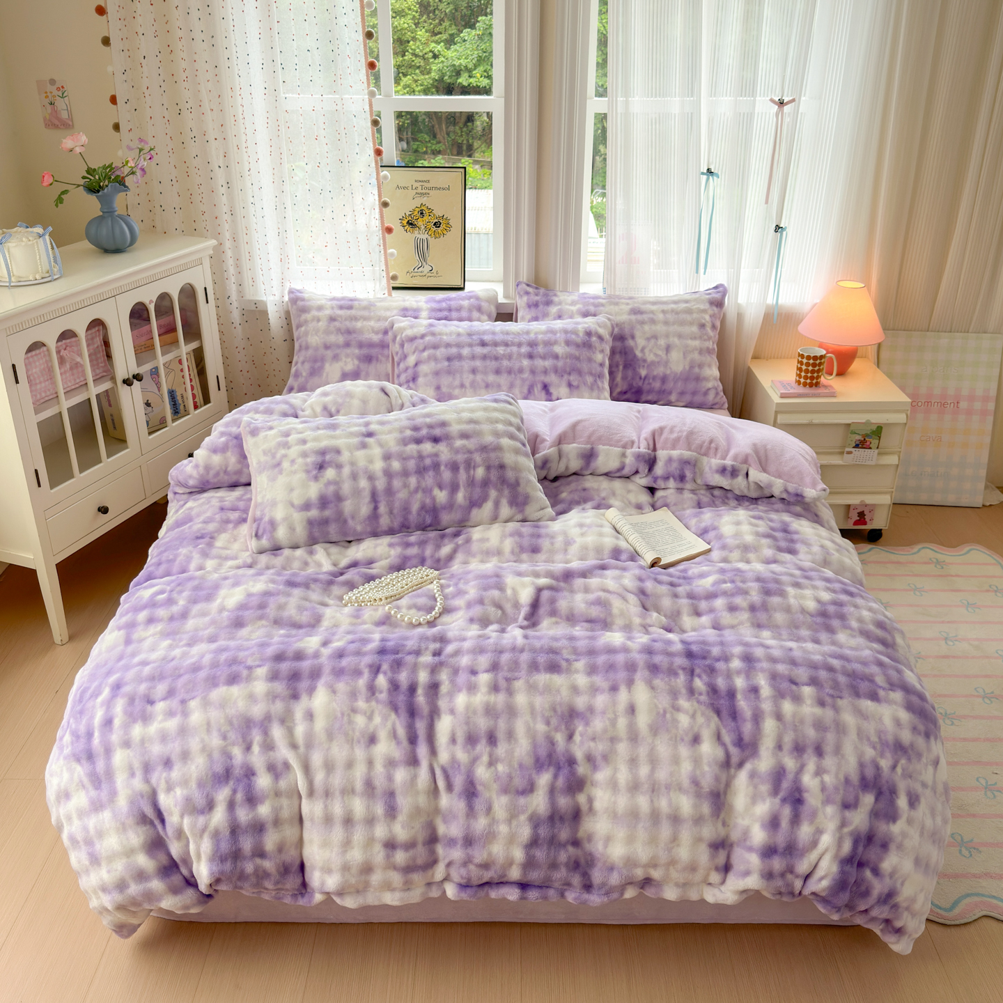 商品名称:德比尔斯 2025新款泡泡牛奶绒四件套 炫彩泡泡紫