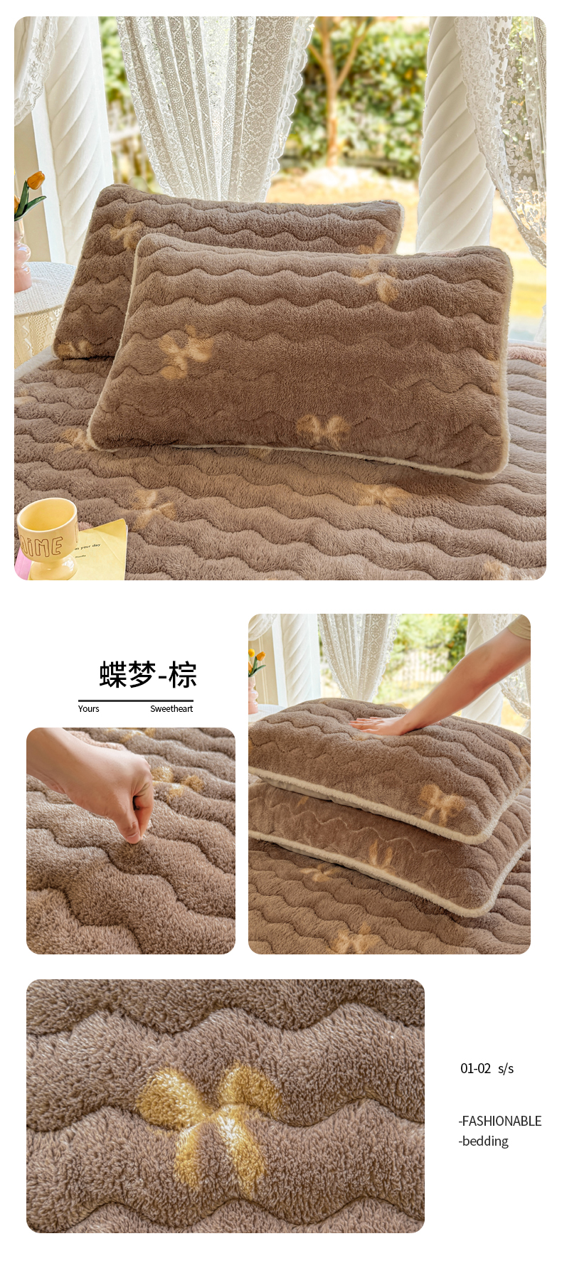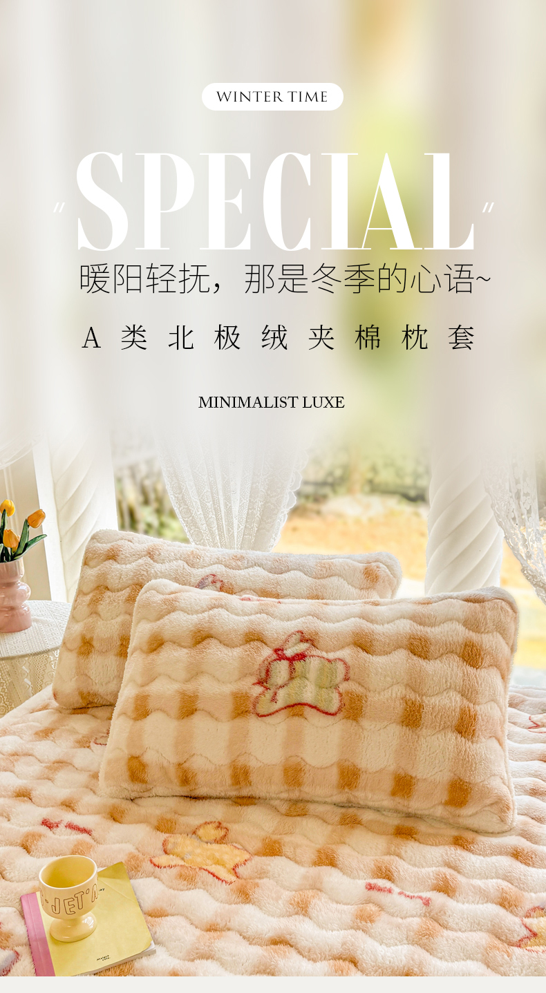 商品名称:LIFE.丽芙 2025秋冬新款A类北极绒保暖加厚夹棉枕套 意趣-咖
