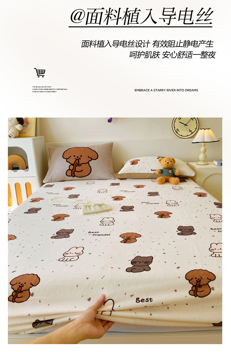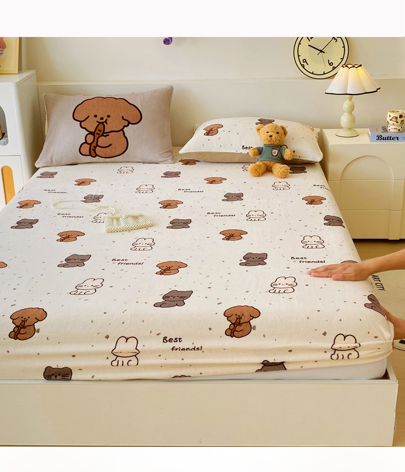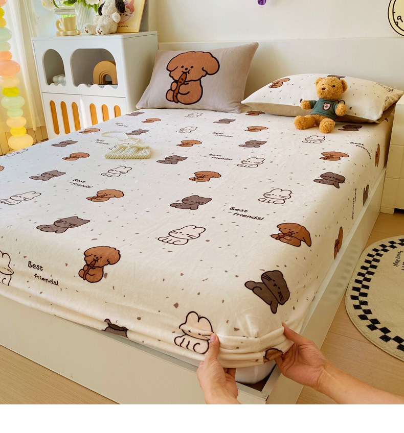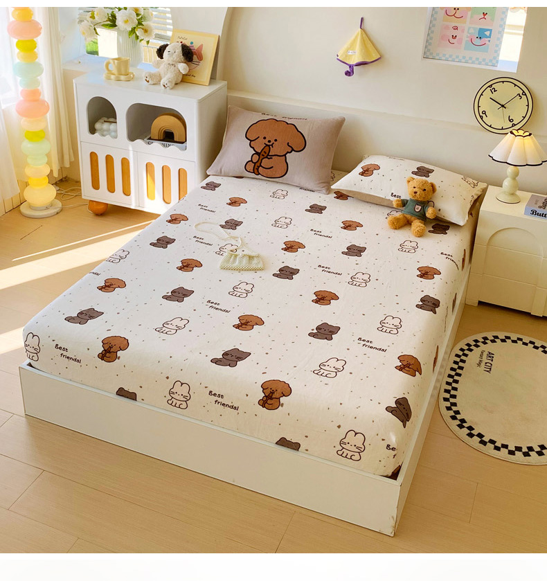 (总)葡萄家 2025年新款牛奶绒印花单床笠萌系卡通床笠款,豹纹猫,比熊,布丁猫,冬日狗,动物乐园,滑板熊猫,卡通乐园,拉蒙,腊肠狗,蓝格猫咪,猫千金红,莫妮卡,泡芙狗,俏皮狗,软萌猫蓝