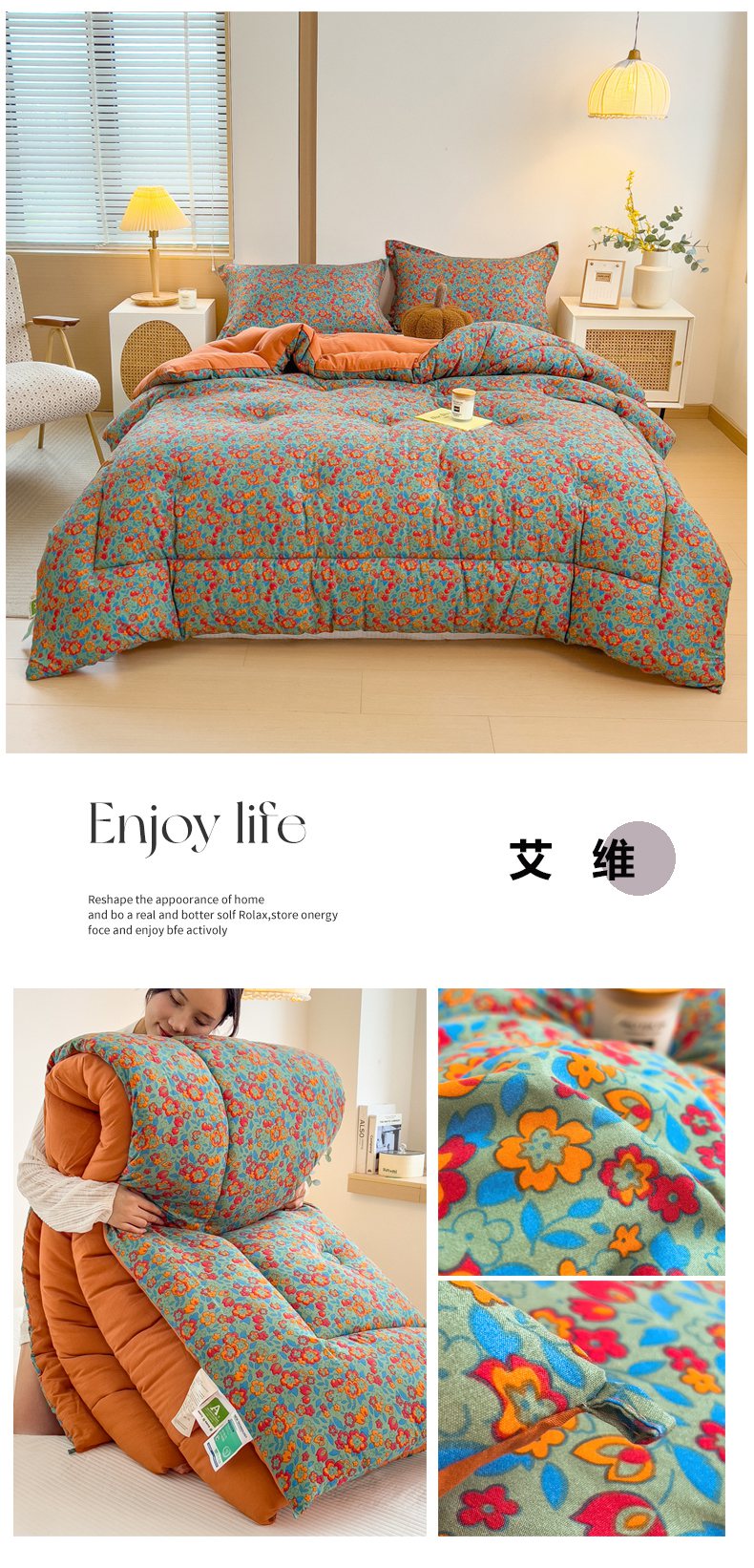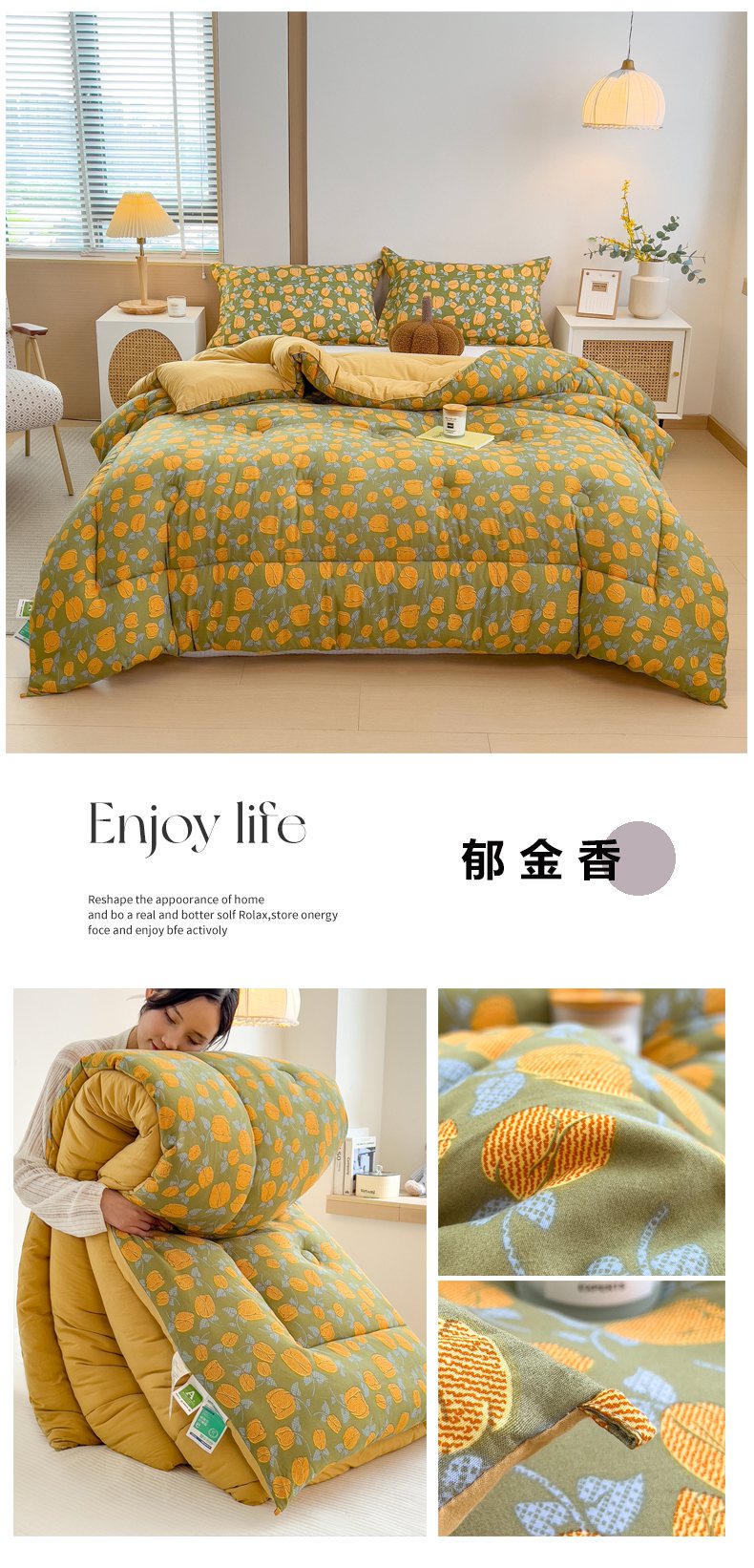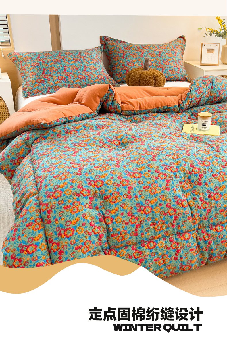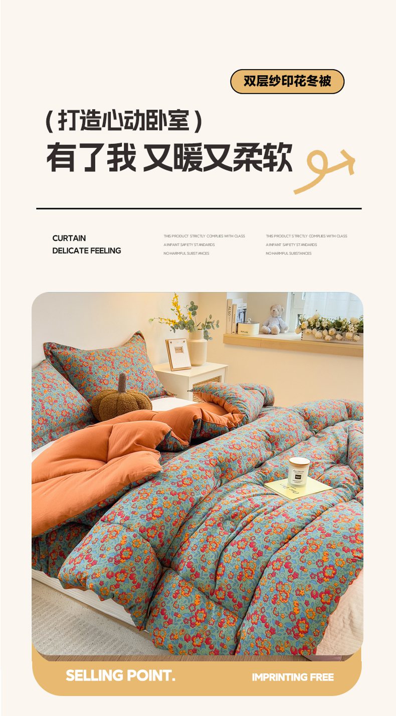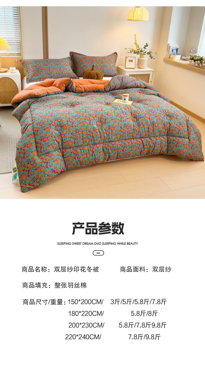 • 91家纺网 家纺一手货源 找家纺 梵克保罗 2025秋冬新品10A抗菌双层纱冬被被子被芯 花韵