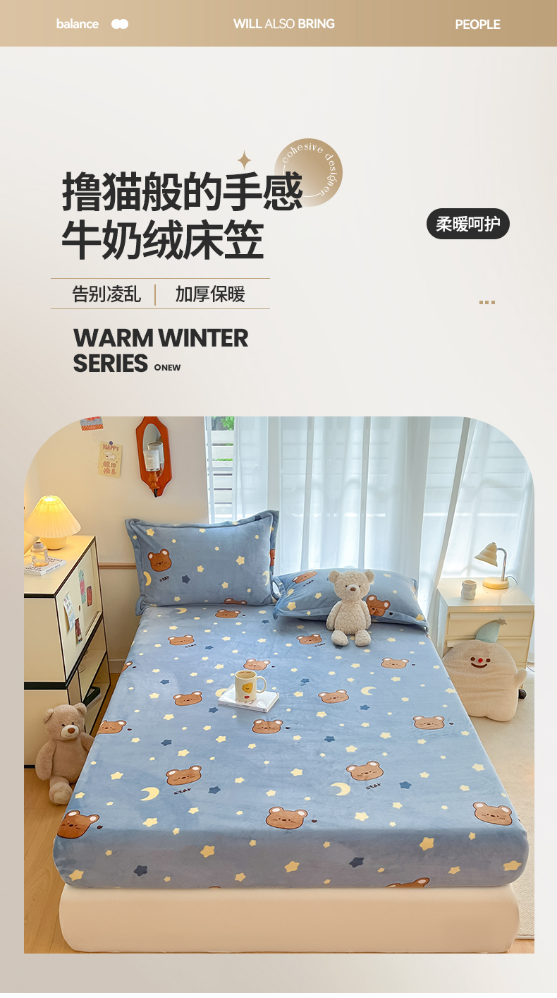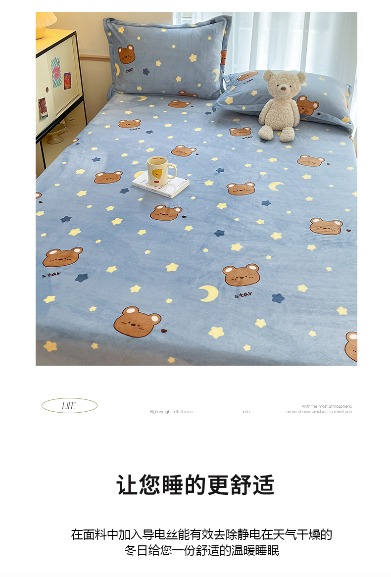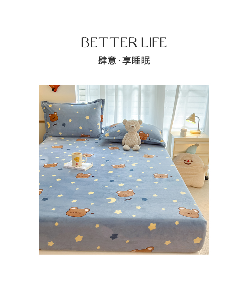 寻米 2025新款高克重加厚保暖牛奶绒床笠-大床图 晚安小熊
